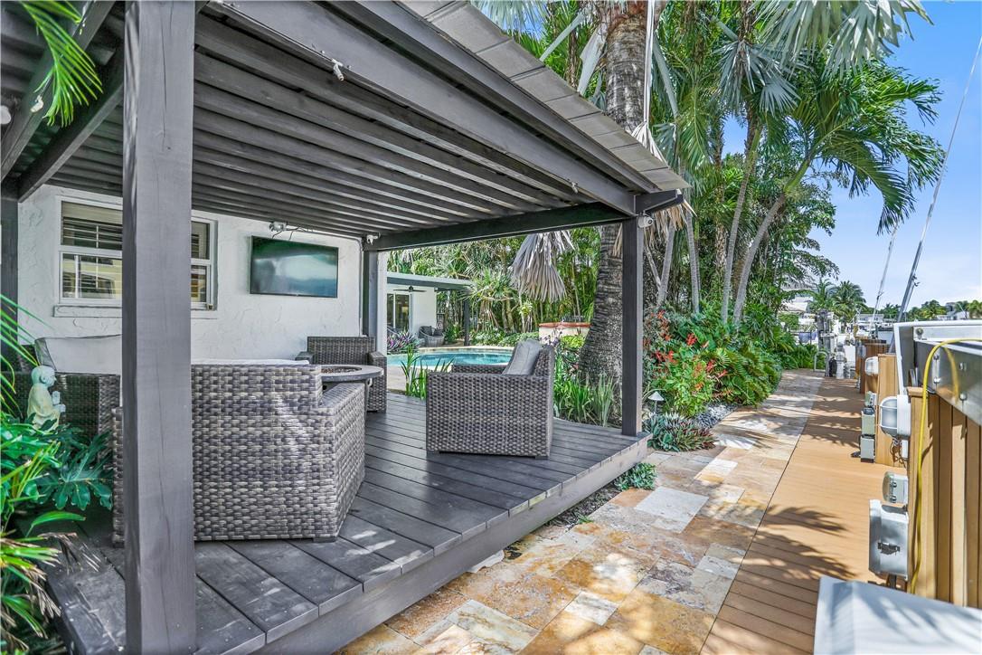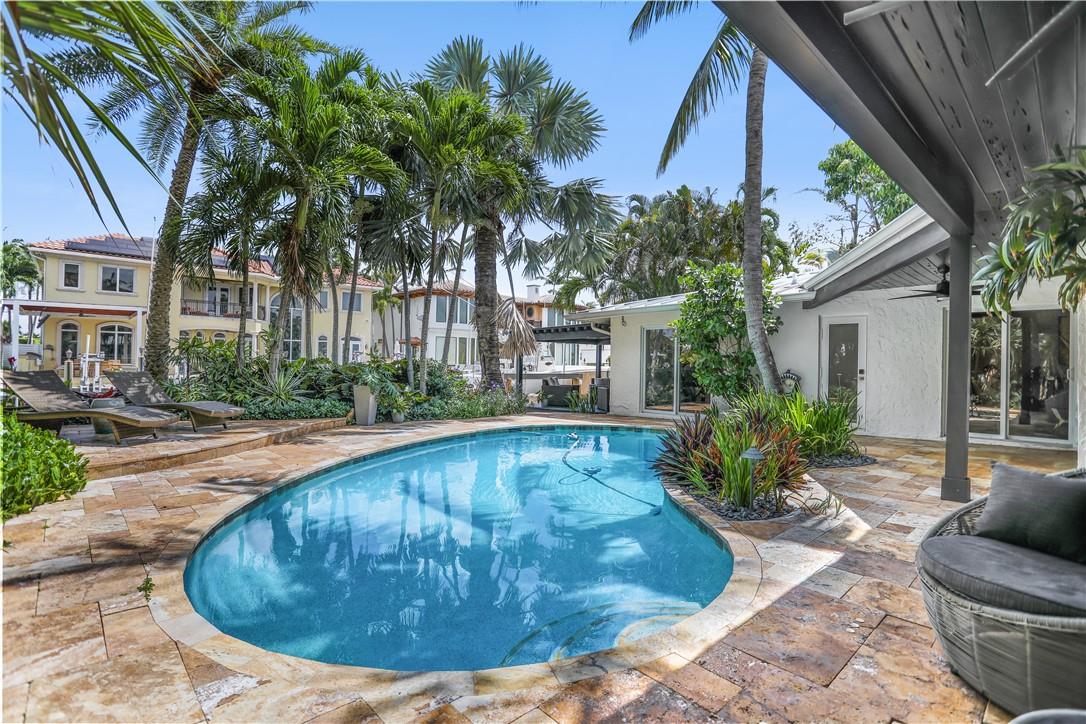 Welcome to Paradise! Completely remodeled and furnished stunning home ready to entertain! This home sits on a 90-foot-wide canal only 5 homes away from the intracoastal. This home offers a chef's gourmet kitchen with natural gas range, Bosch dishwasher, custom built refrigerator, custom cabinets, and a large quartz countertop, not to mention a natural gas generator for the entire home. This house consist of hurricane impact windows with a new metal roof installed in 2018. The Tropical oasis surrounding the pool and spa overlooks the canal with custom outdoor lighting, stone marble deck, and a mosquito control system. Park your boat on the new 85ft Boat Dock, with 16,000 lb cradle boat lift, and covered sitting area overlooking entire backyard.