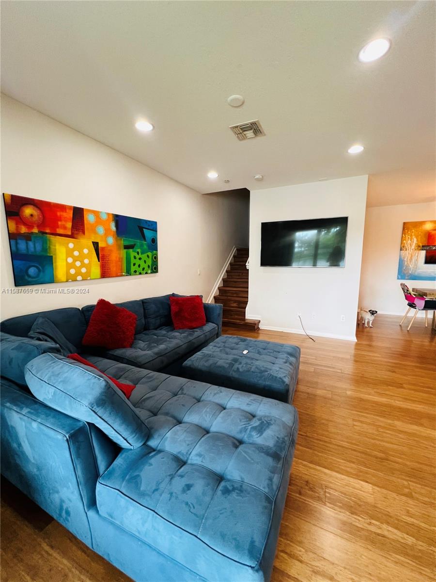 Discover refined living in this 1450 sqft townhouse, beautifully renovated with an open-concept kitchen, laminate flooring throughout, and impact windows. Features include integrated CCTV, infrared AC system, three bedrooms upstairs with a spacious master suite, balcony with lake views, and upper-floor laundry. Includes two parking spaces. Enjoy community amenities like a timed pool, clubhouse, gym, large pool, splash park, tennis, and basketball courts. Excellently maintained with paths connecting to Monterra.