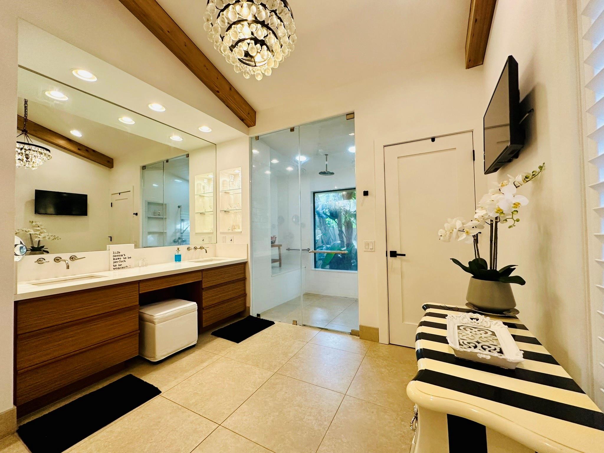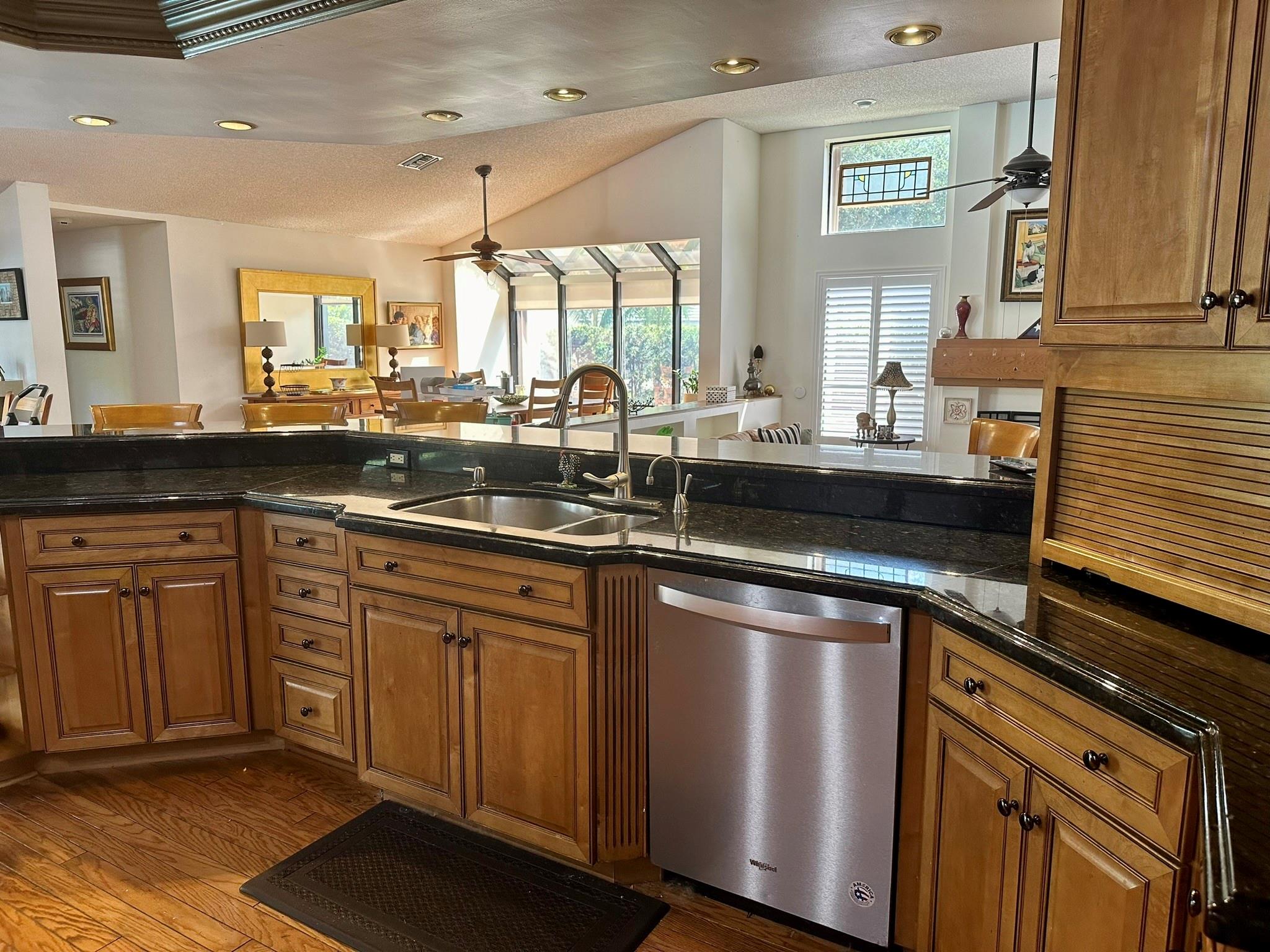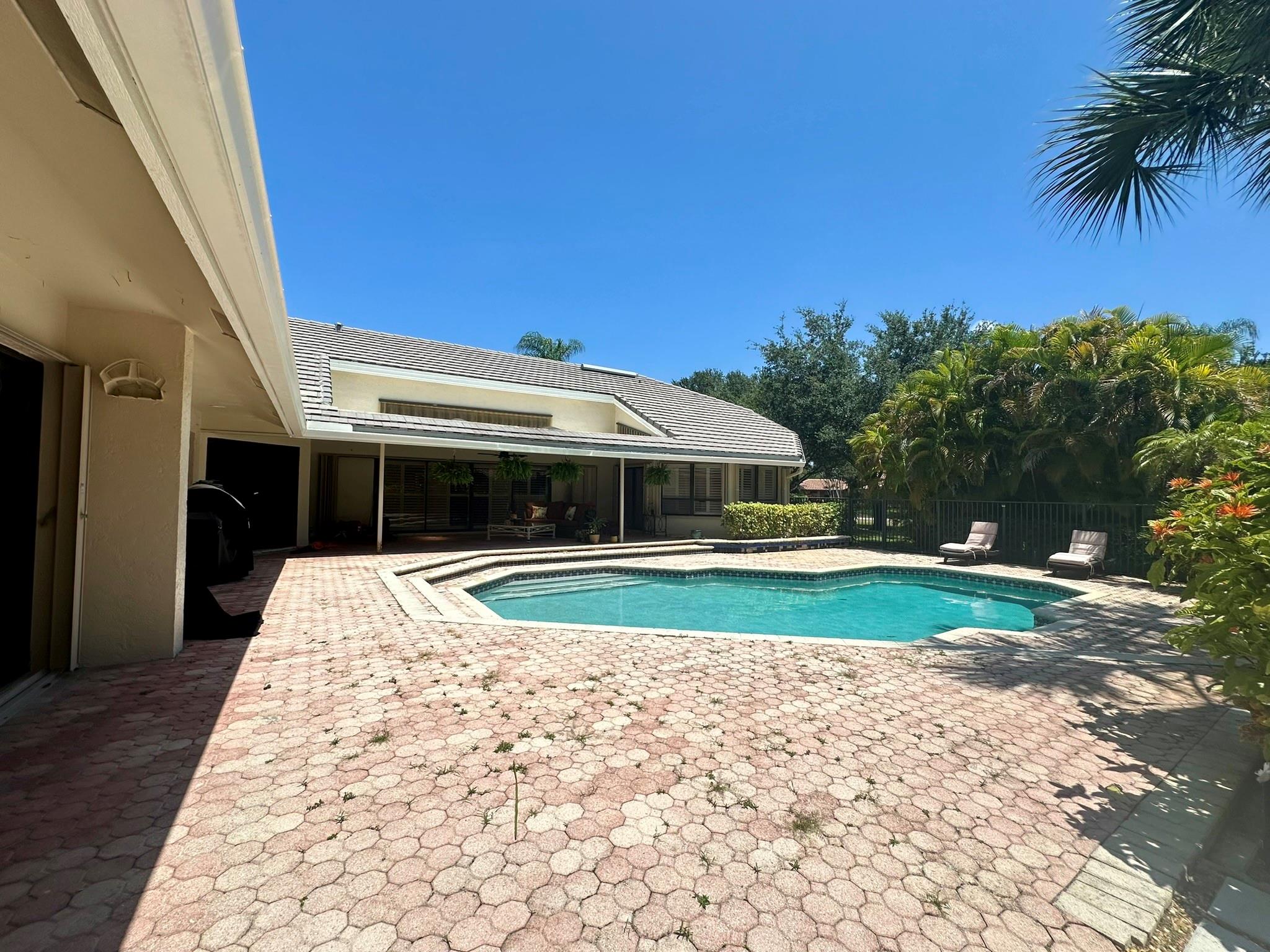 Situated on the corner of a cul-de-sac, this .8 acre estate boasts an expanded version of the desirable Kingston model--1700+ SF addition incl. bedroom, full bath, large FR/kitchenette and separate entrance, as well as access to original home--perfect for parents, au pair, or older children! Home features split plan w/office adjacent to MBR & 3 BR/2BA in children's wing. Outstanding features incl: expanded, upgraded kitchen w/granite counters & stainless steel appliances; full wet bar; greenhouse window; area designed for pool table; wood-burning fireplace; spacious master suite w/gorgeous, updated MBA; plantation shutters for entire home; impact glass & accordion shutters; full house generator; 4 CAR GARAGE; large lanai, beautiful pool and expansive patio!