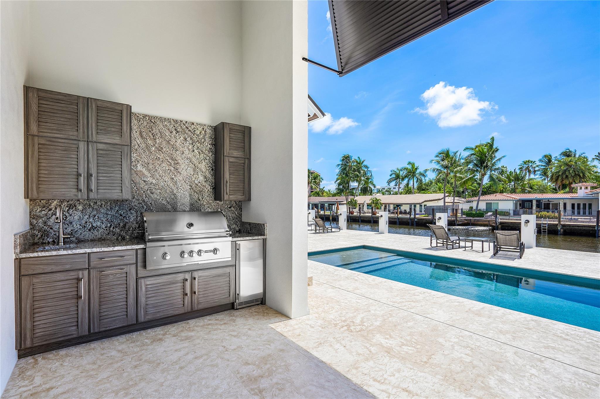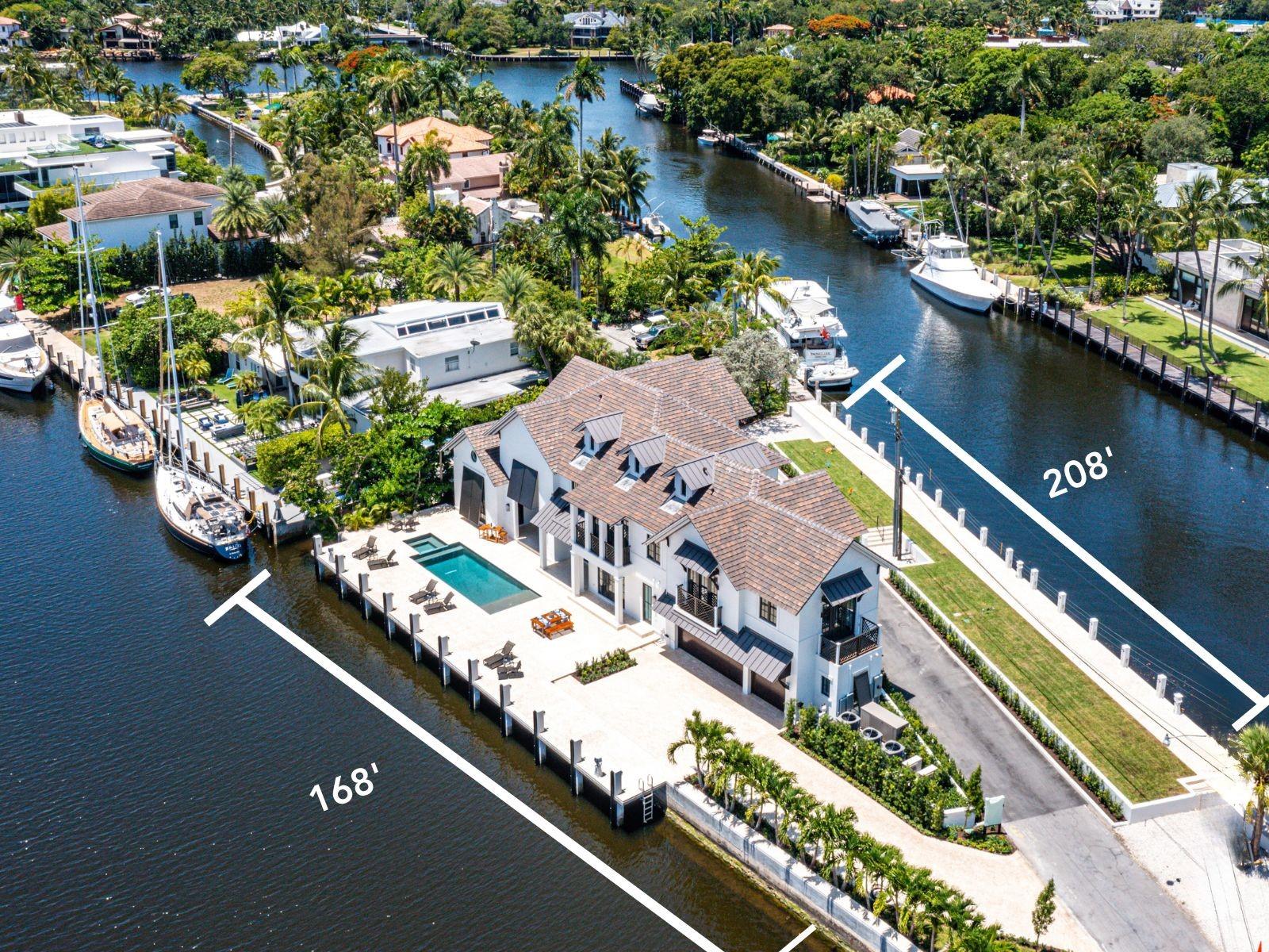 Discover waterfront luxury in Las Olas Isles, Fort Lauderdale. This architectural masterpiece, designed by Art Bengochea, boasts 6 beds, 6.5 baths, and spans 6,759 sq ft. Enjoy 376 ft of waterfront with two docks catering to boating enthusiasts. The chic great room offers soaring ceilings and expansive glass windows, seamlessly blending indoor-outdoor living. The gourmet kitchen features custom cabinetry, marble counters, and high-end appliances. The primary suite opens to tranquil waterfront views, boasting dual walk-in closets and a spa-inspired bathroom. Upstairs, a secondary primary bedroom and two guest suites ensure ample accommodation.