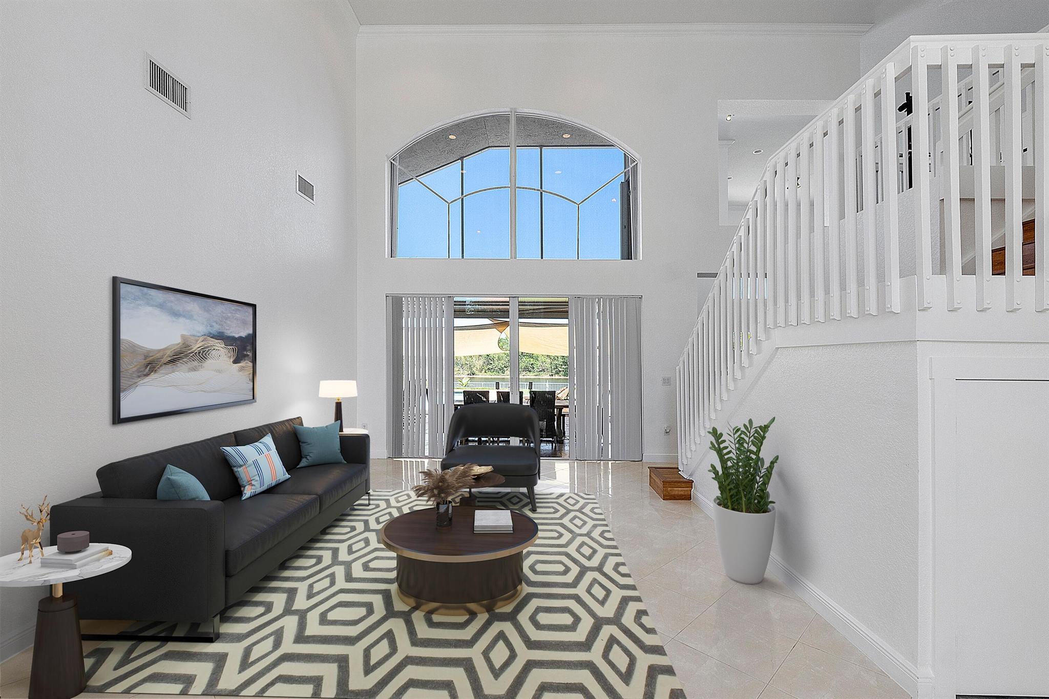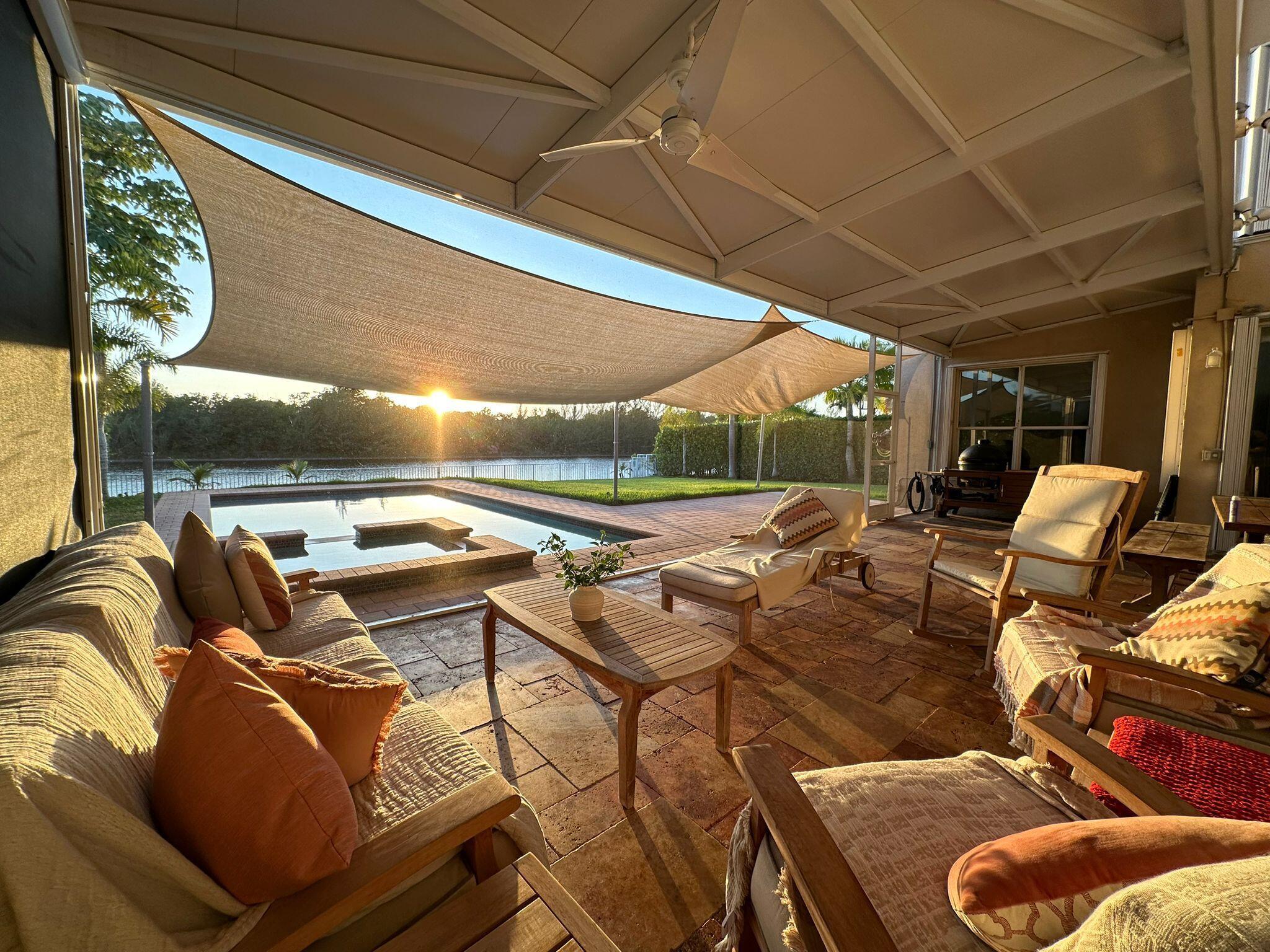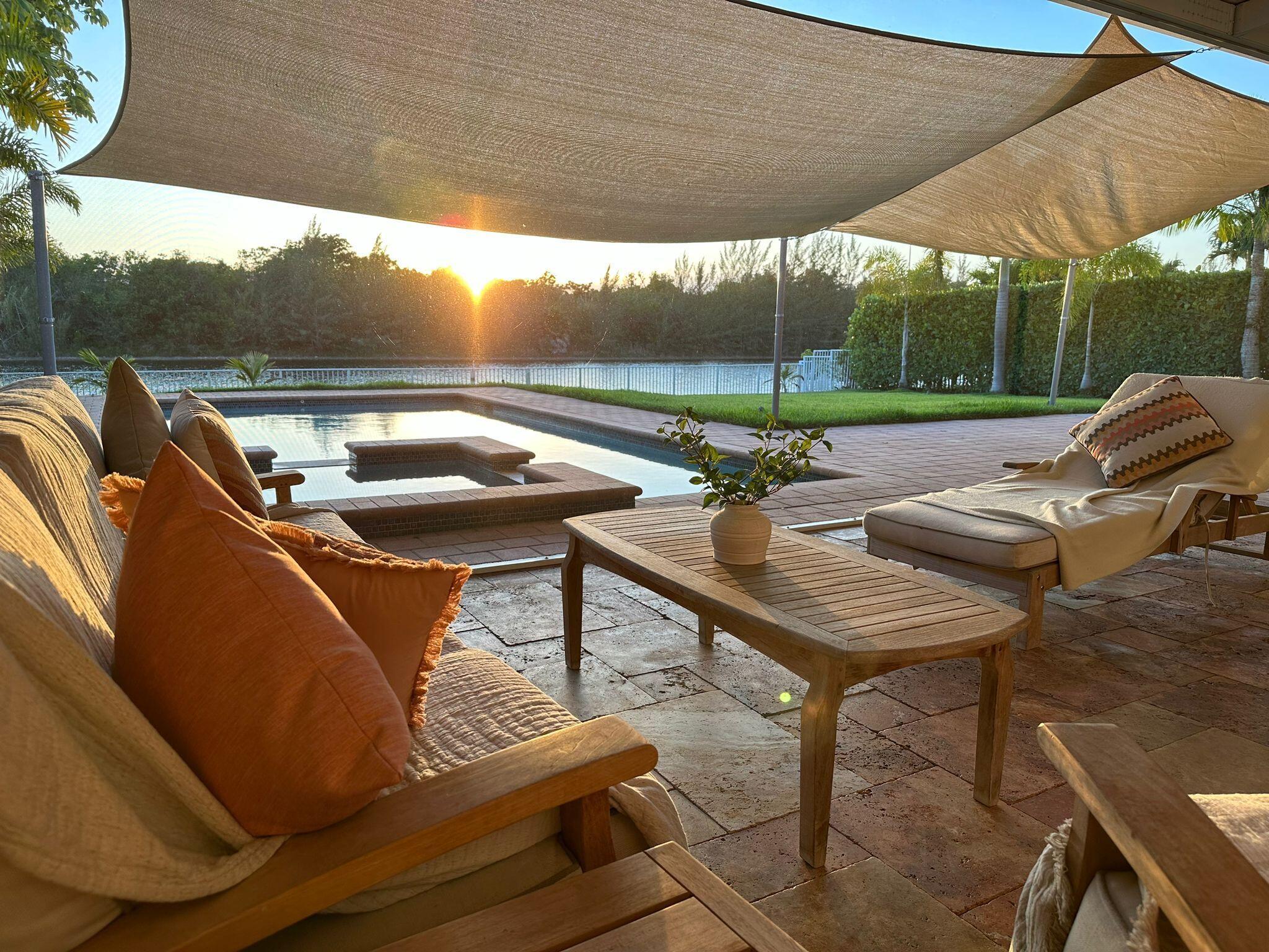 What a sunset! Breathtaking private water views from your extra large backyard. Huge screen porch for entertaining. Heated saltwater pool with spa. This beautiful 5 bedrooms 5 baths home is waiting for you and your guests. First floor large primary suite, freshly inside painted, large loft area, could be converted to a 6th bedroom, three-car garage, security cameras and doorbell, accordion shutters, smart technology irrigation system and much more! This is the one you have been waiting for! Get in on the action before you miss out!
