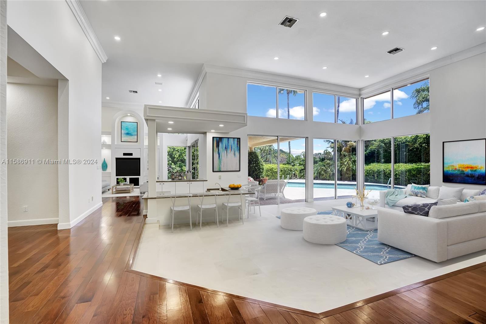 Dream 4 Bed 5.5 Bath home features 4400+ square feet of luxury in prestigious Bocaire Country Club. Double door entry to grand foyer with ultra-high ceilings and bright, open floorplan. Floor-to-ceiling windows overlook private pool on oasis of outdoor living. Fresh paint, hardwood and marble floors throughout. Open-concept kitchen two bars, two dining areas and view to second living room. 1 expansive primary suite with walk-in closets/built-ins, double vanities, jetted tub, spa shower and water closet. 3 additional bedrooms all with en suite bath and convenient laundry room, plus Golf Cart Garage! Gated Bocaire’s prestigious Country Club features all-new renovations complete June 2024! World-class amenities, state-of-the-art golf, aquatics, fine dining, fitness, tennis, pickleball & more!