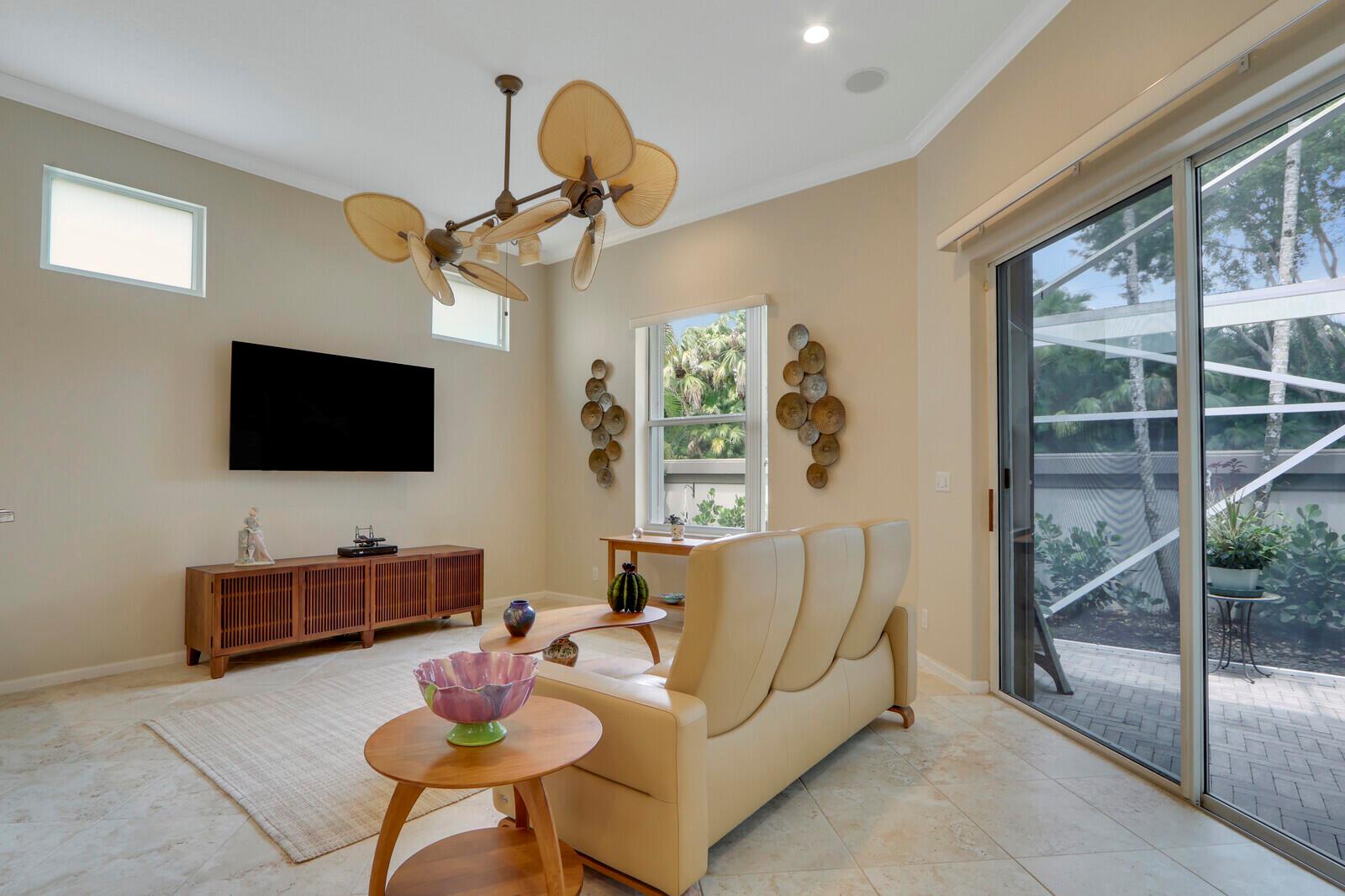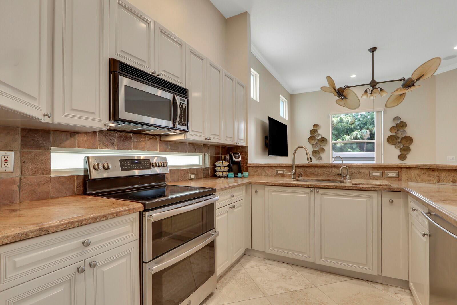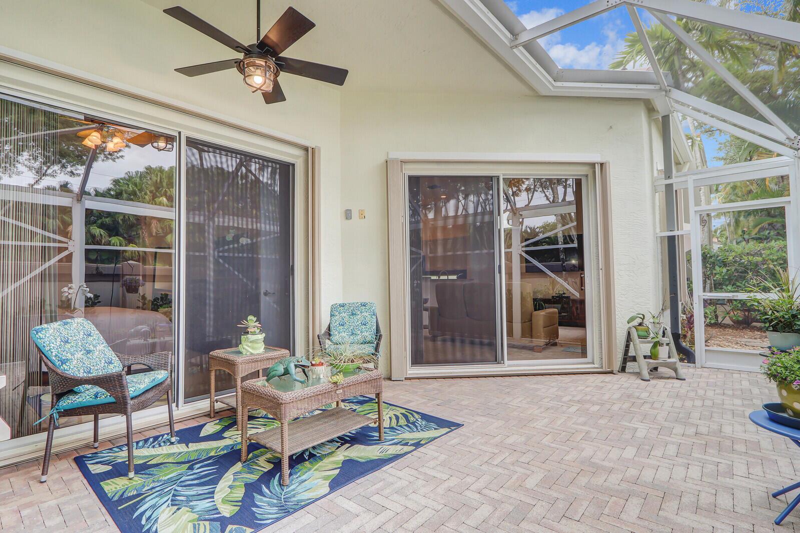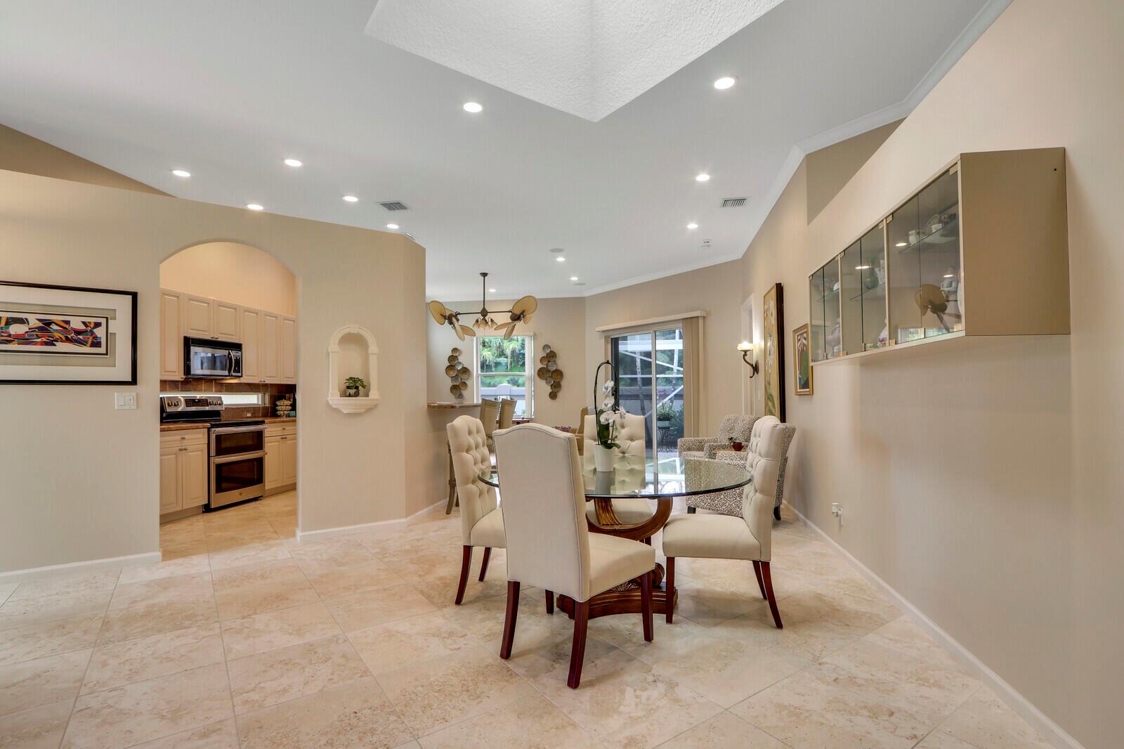 Move in ready, single family, one story 3 bedroom, 2 bath newly renovated with new roof, downspouts, gutter, freshly painted, new impact glass front door, some impact glass windows, 5 addt'l recessed lights in the Great room, renovated bathrooms, custom closet in Master, 18'' tile throughout all common areas, Kitchen cabinets upgraded 2023, A/C 10/2020, WH 2019. Great open floor plan for entertaining. 11 foot ceilings. Come and visit this move in ready home, beautifully landscaped. See Detailed list for additional upgrades.The community of Larkspur Landing is close to the Clubhouse and is only one of four communities with a beautiful heated private pool and spa for residents only. The Club at Ibis is an award winning private equity club / 3 Jack Nicklaus family golf courses, 5 restaurants