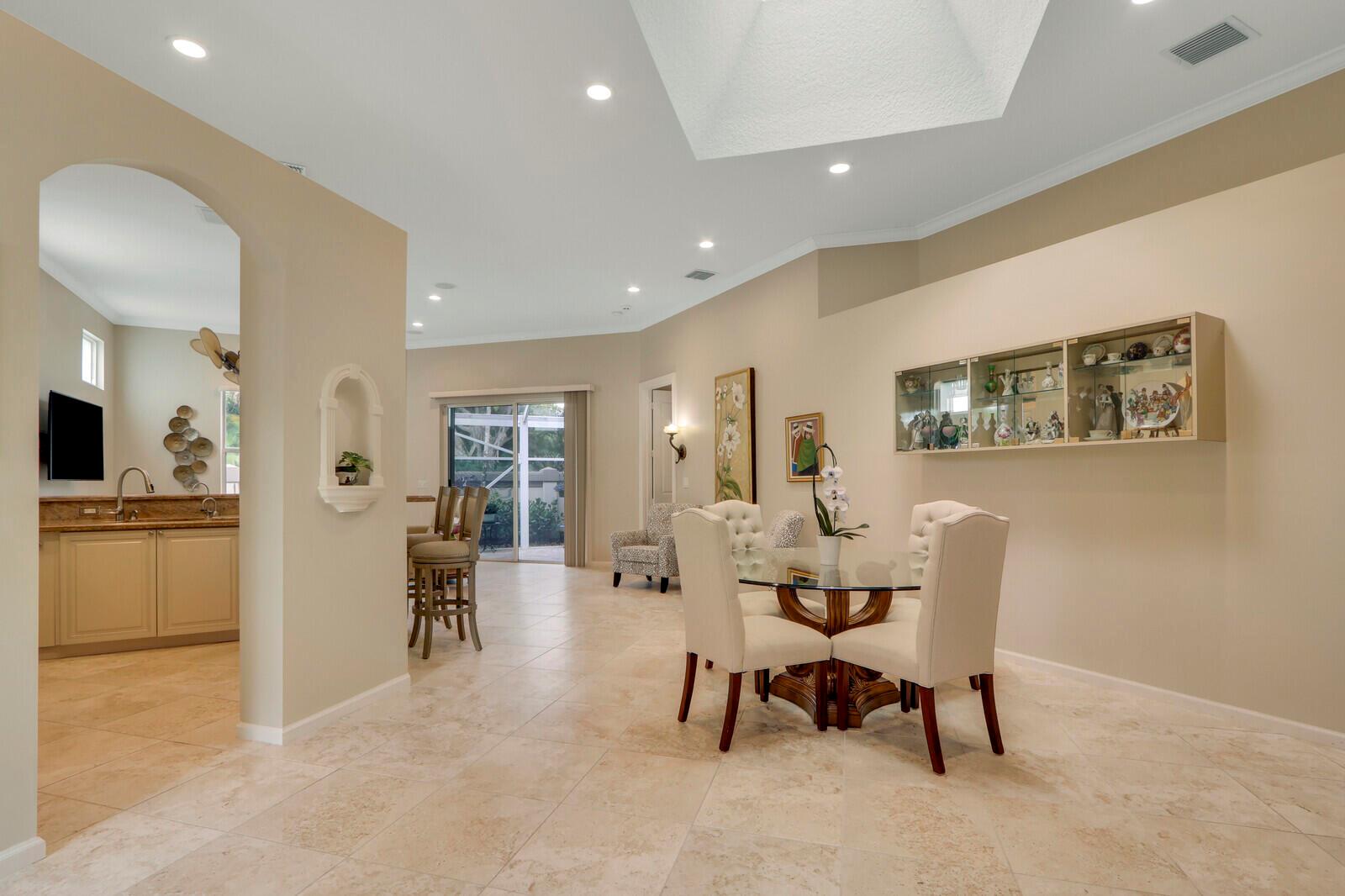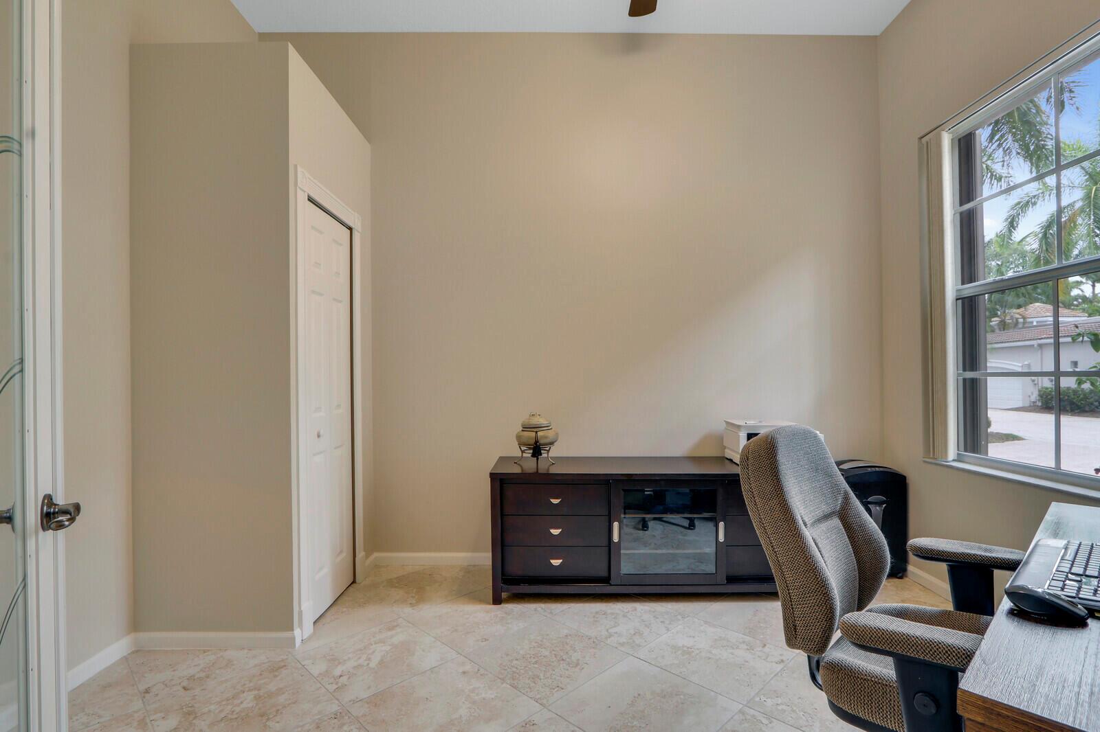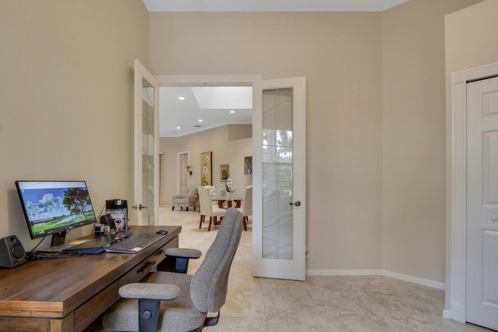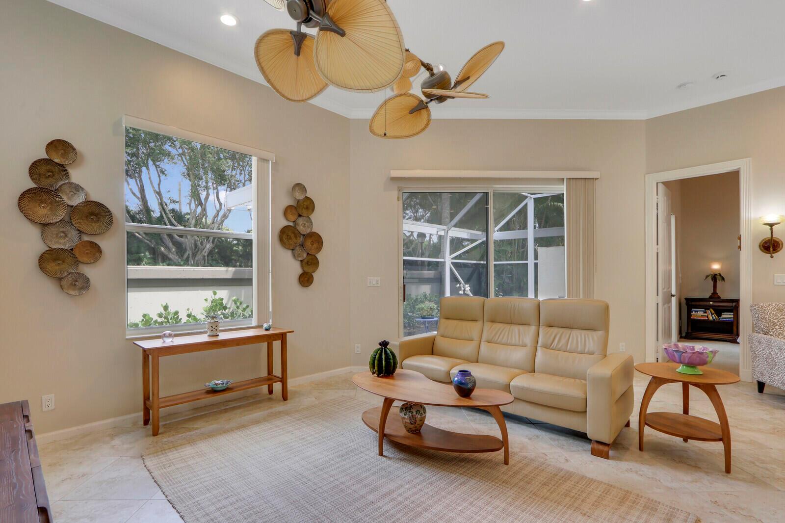 Move in ready, single family, one story 3 bedroom, 2 bath newly renovated with new roof, downspouts, gutter, freshly painted, new impact glass front door, some impact glass windows, 5 addt'l recessed lights in the Great room, renovated bathrooms, custom closet in Master, 18'' tile throughout all common areas, Kitchen cabinets upgraded 2023, A/C 10/2020, WH 2019. Great open floor plan for entertaining. 11 foot ceilings. Come and visit this move in ready home, beautifully landscaped. See Detailed list for additional upgrades.The community of Larkspur Landing is close to the Clubhouse and is only one of four communities with a beautiful heated private pool and spa for residents only. The Club at Ibis is an award winning private equity club / 3 Jack Nicklaus family golf courses, 5 restaurants