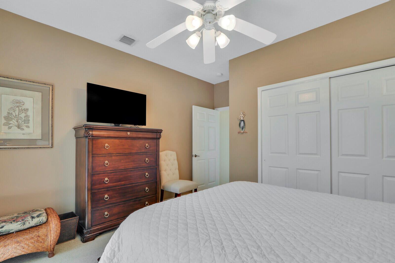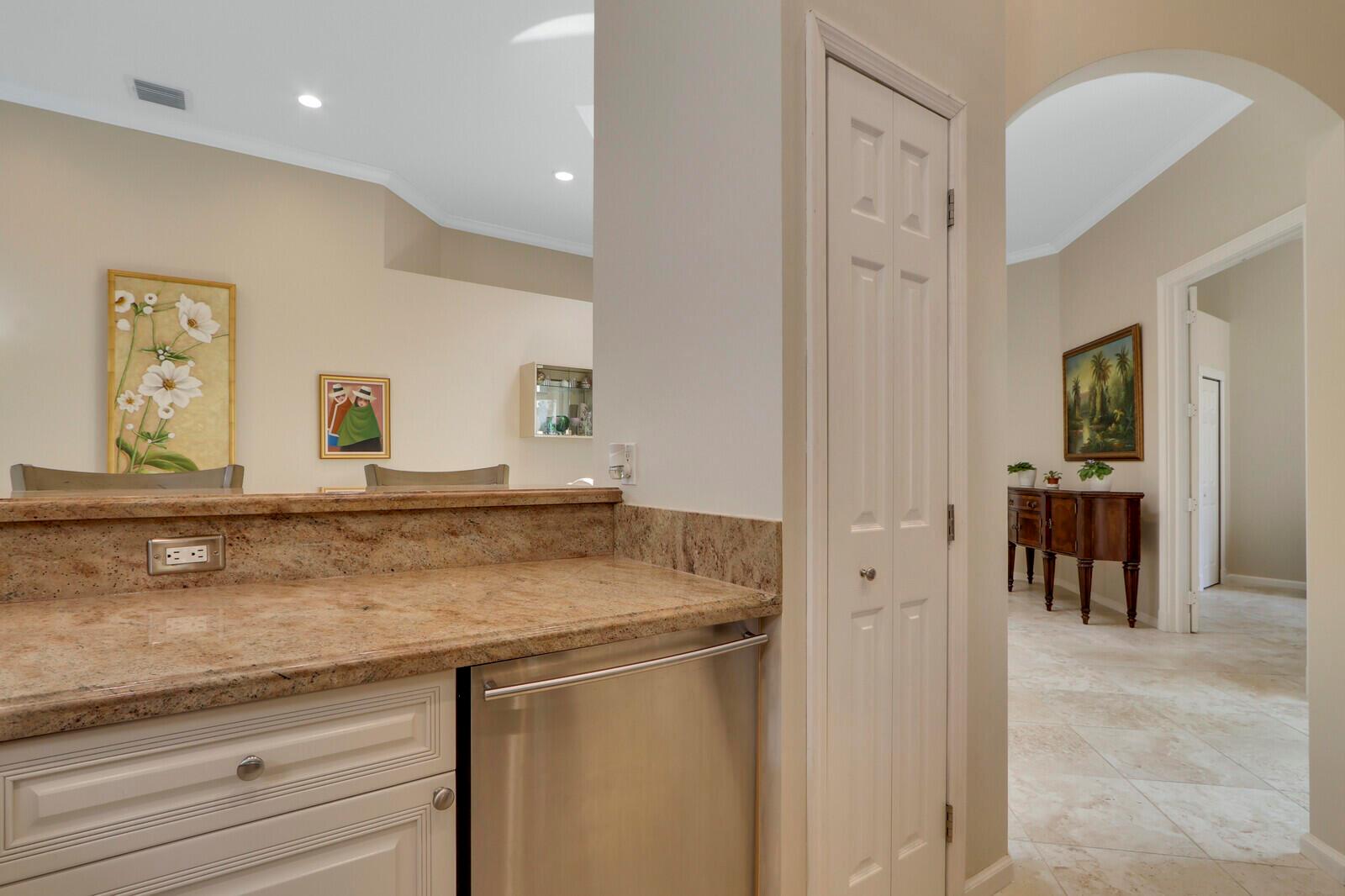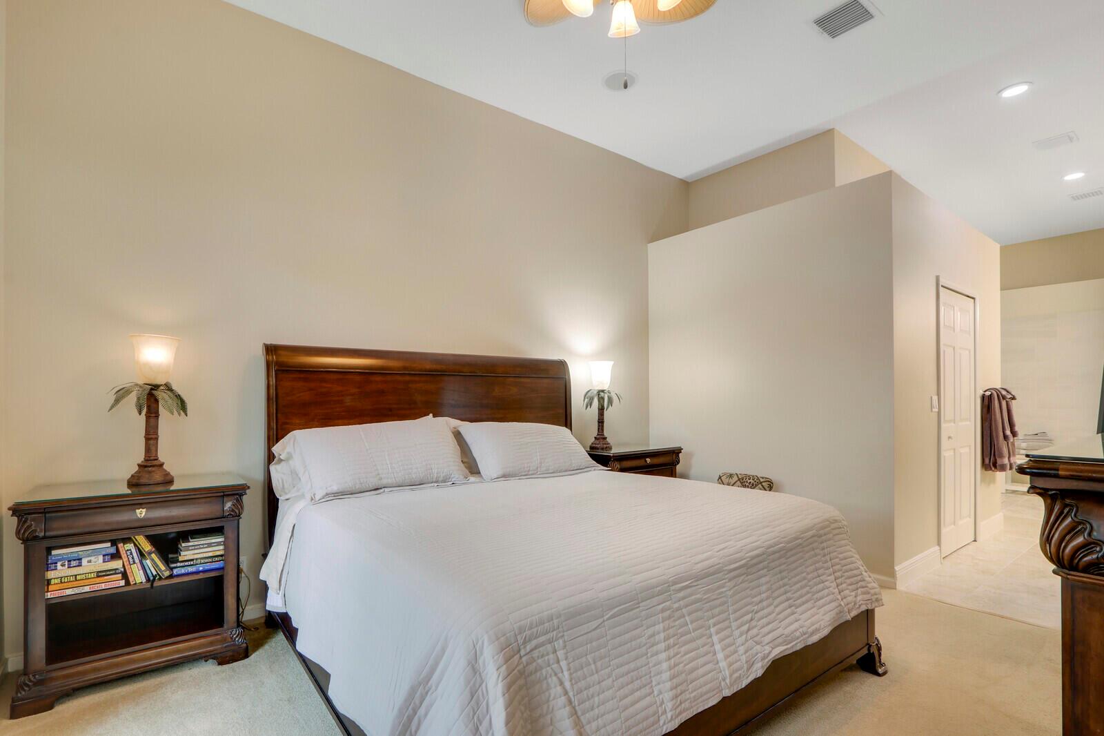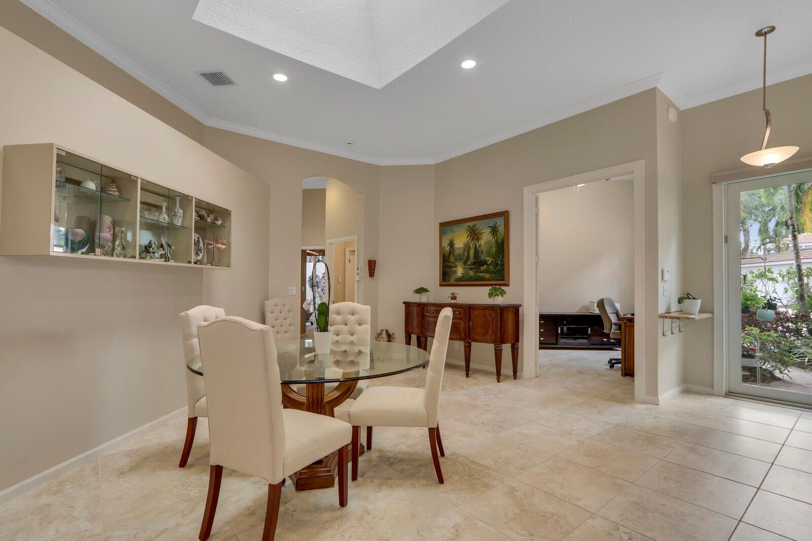 Move in ready, single family, one story 3 bedroom, 2 bath newly renovated with new roof, downspouts, gutter, freshly painted, new impact glass front door, some impact glass windows, 5 addt'l recessed lights in the Great room, renovated bathrooms, custom closet in Master, 18'' tile throughout all common areas, Kitchen cabinets upgraded 2023, A/C 10/2020, WH 2019. Great open floor plan for entertaining. 11 foot ceilings. Come and visit this move in ready home, beautifully landscaped. See Detailed list for additional upgrades.The community of Larkspur Landing is close to the Clubhouse and is only one of four communities with a beautiful heated private pool and spa for residents only. The Club at Ibis is an award winning private equity club / 3 Jack Nicklaus family golf courses, 5 restaurants