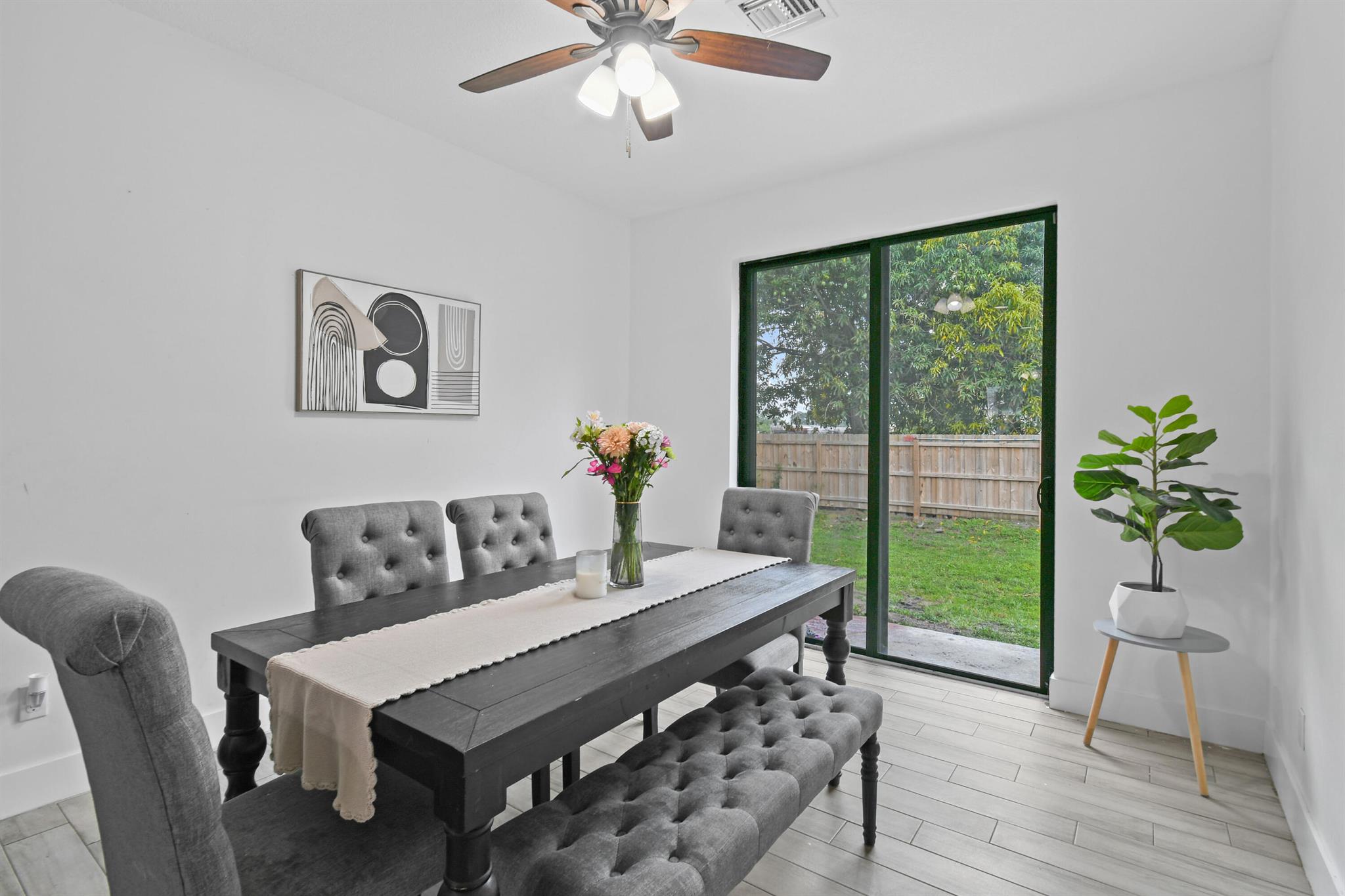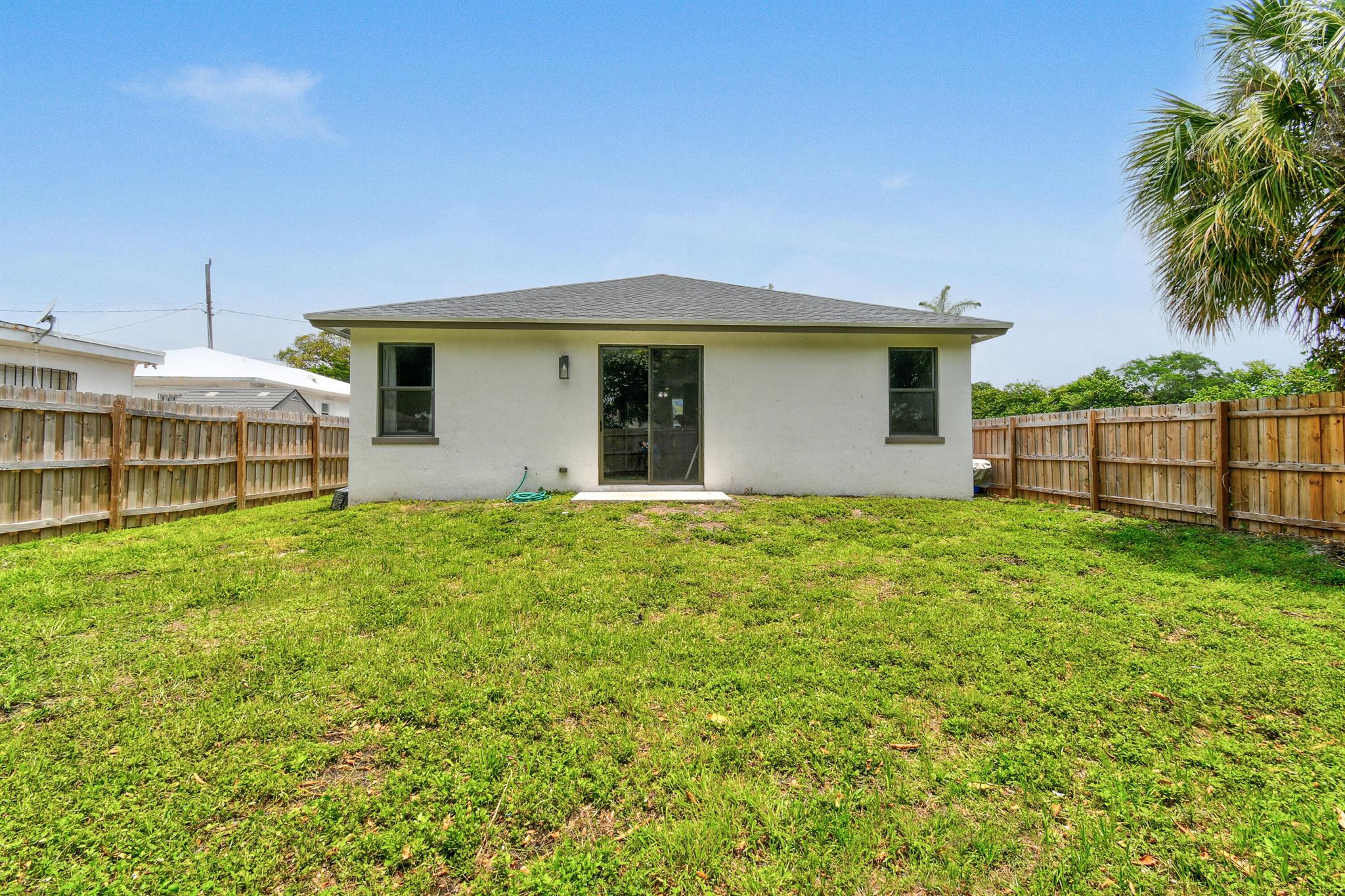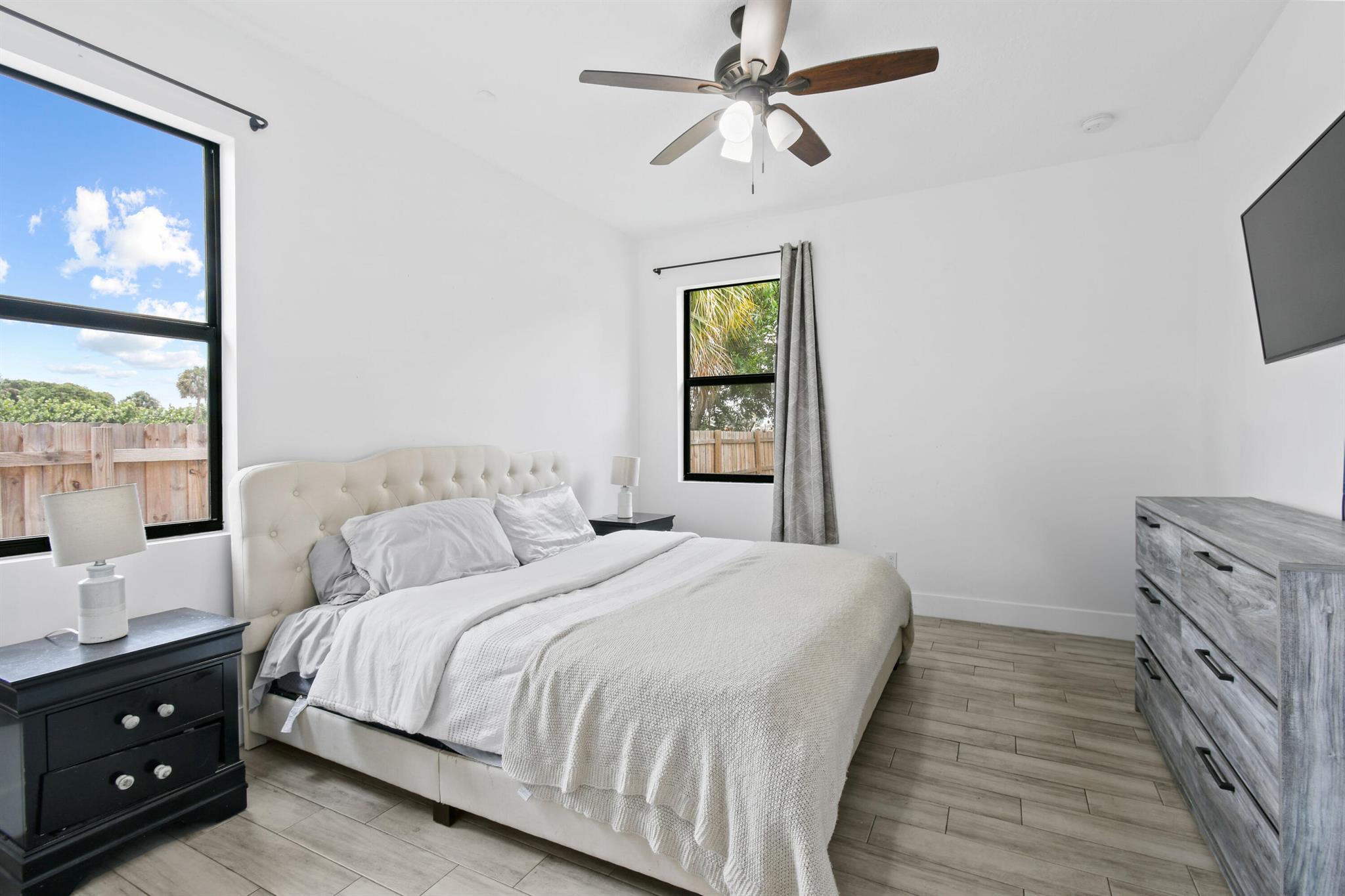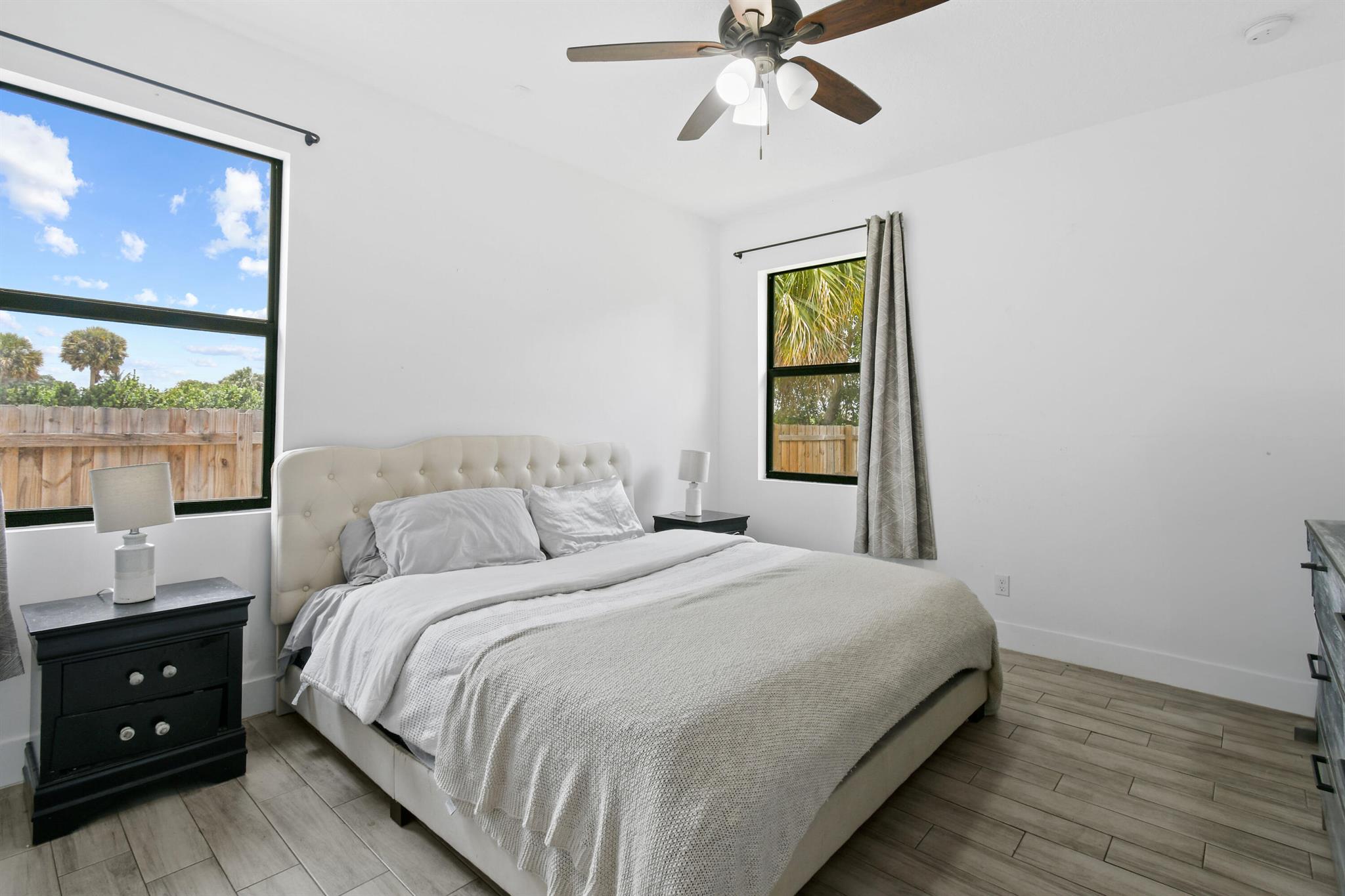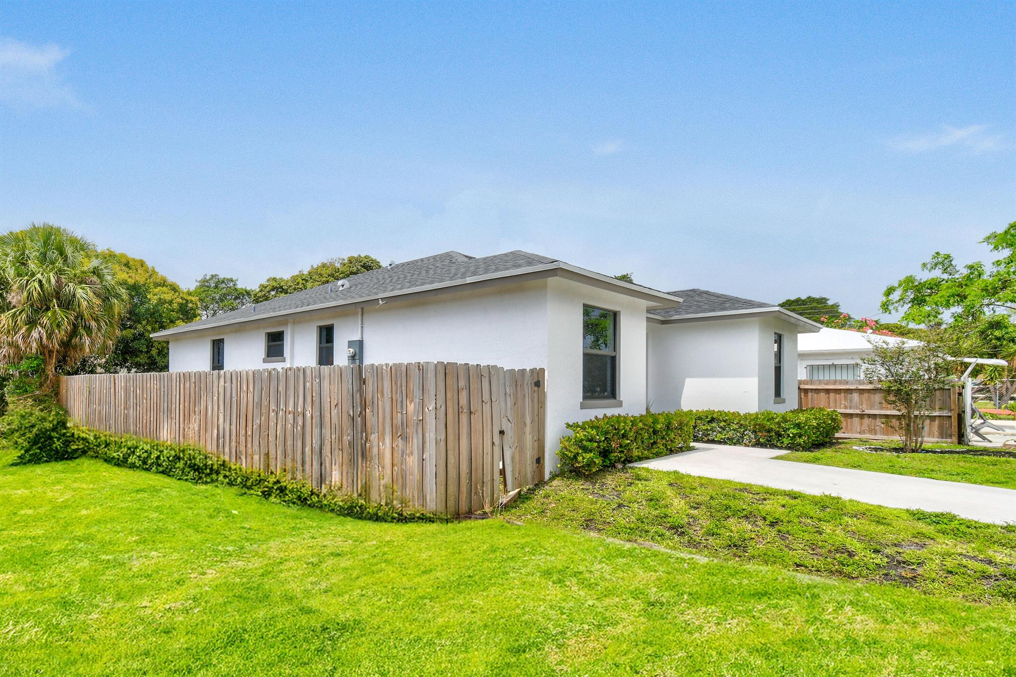 A RARE GEM built in 2022, this spacious house boasts 5 bedrooms and 2 baths. The modern kitchen in grey and white is a standout feature with quartz countertops and stainless-steel appliances. Open floor plan with living and dining area. Split floor plan ensuring privacy for all. Massive primary suite with lovely bathroom featuring dual sinks and shower. Beautiful wood tile flooring throughout. Dual sinks and tub in 2nd bathrooms. Large completely fenced in backyard. IMPACT WINDOWS , NO HOA. Conveniently located near, shops, restaurants, beaches, downtown West Palm Beach and I95. Don't miss out on this excellent opportunity whether you're looking for an investment property or long-term family residence this house has the potential to meet all your need.
