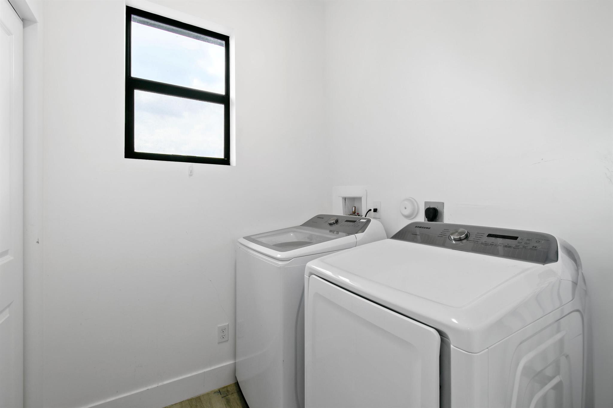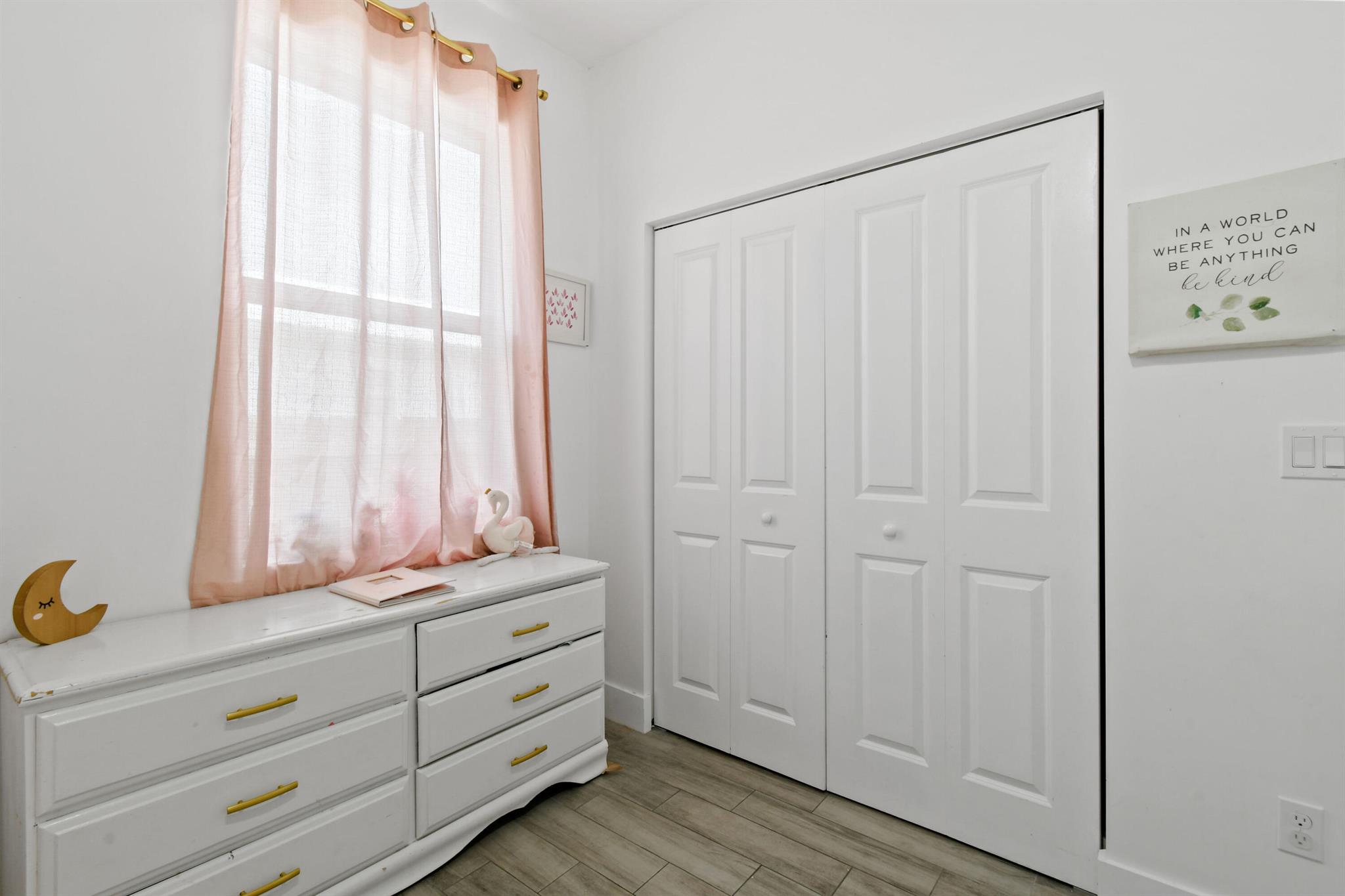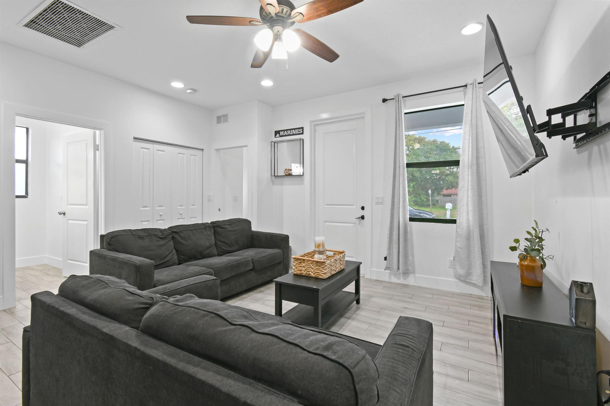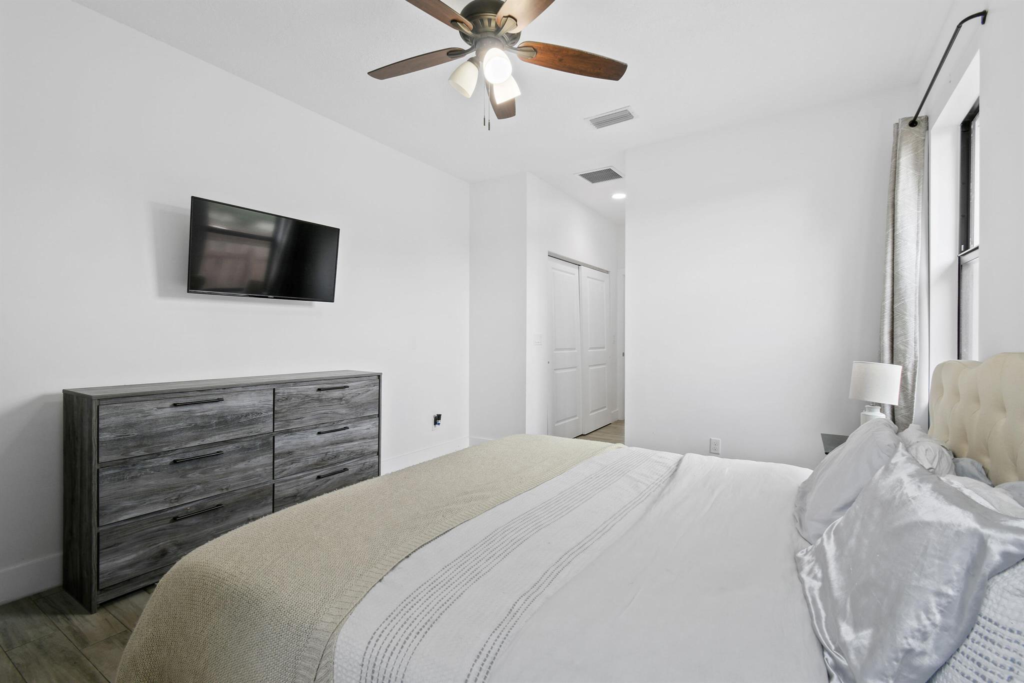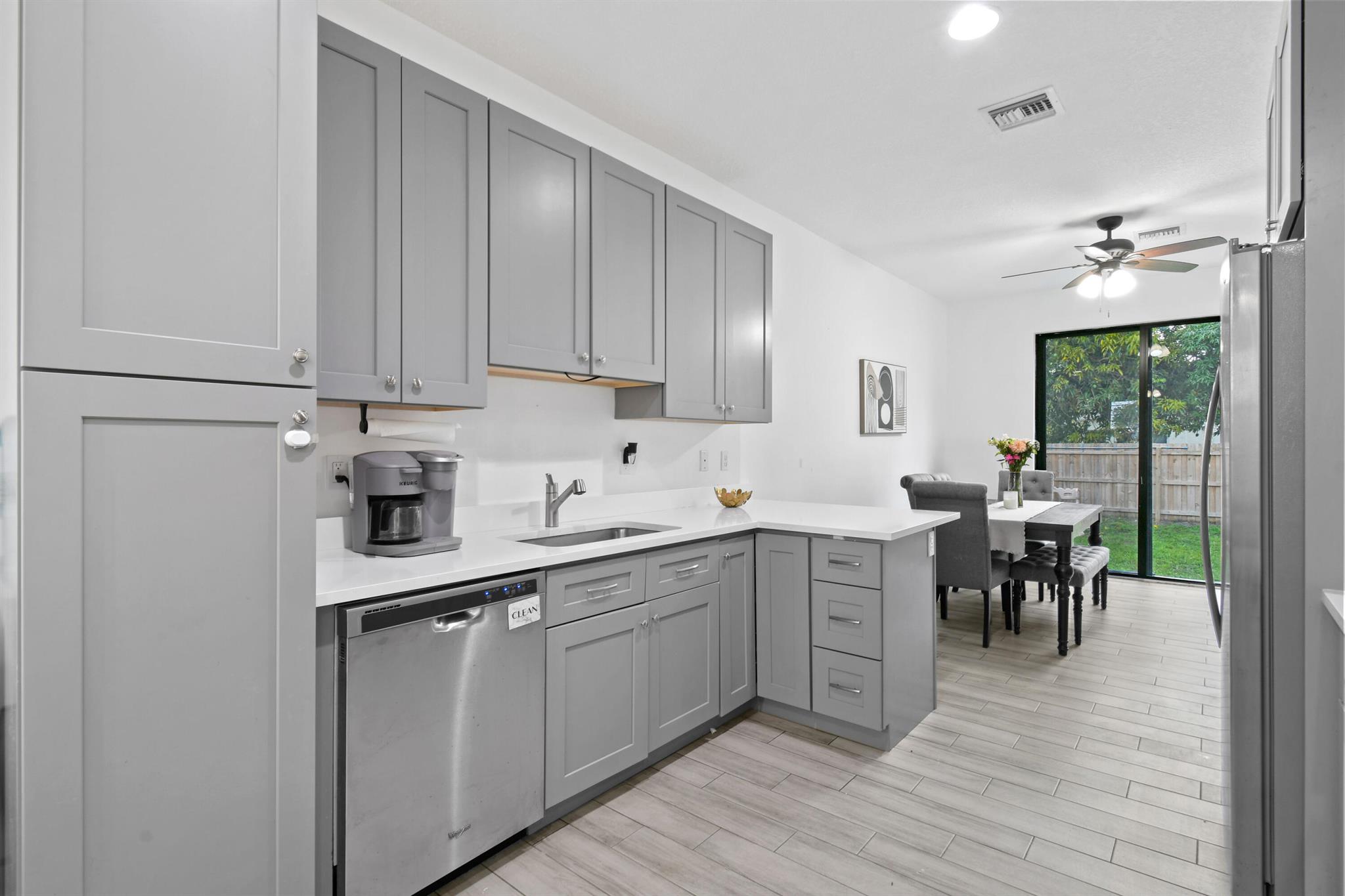 A RARE GEM built in 2022, this spacious house boasts 5 bedrooms and 2 baths. The modern kitchen in grey and white is a standout feature with quartz countertops and stainless-steel appliances. Open floor plan with living and dining area. Split floor plan ensuring privacy for all. Massive primary suite with lovely bathroom featuring dual sinks and shower. Beautiful wood tile flooring throughout. Dual sinks and tub in 2nd bathrooms. Large completely fenced in backyard. IMPACT WINDOWS , NO HOA. Conveniently located near, shops, restaurants, beaches, downtown West Palm Beach and I95. Don't miss out on this excellent opportunity whether you're looking for an investment property or long-term family residence this house has the potential to meet all your need.