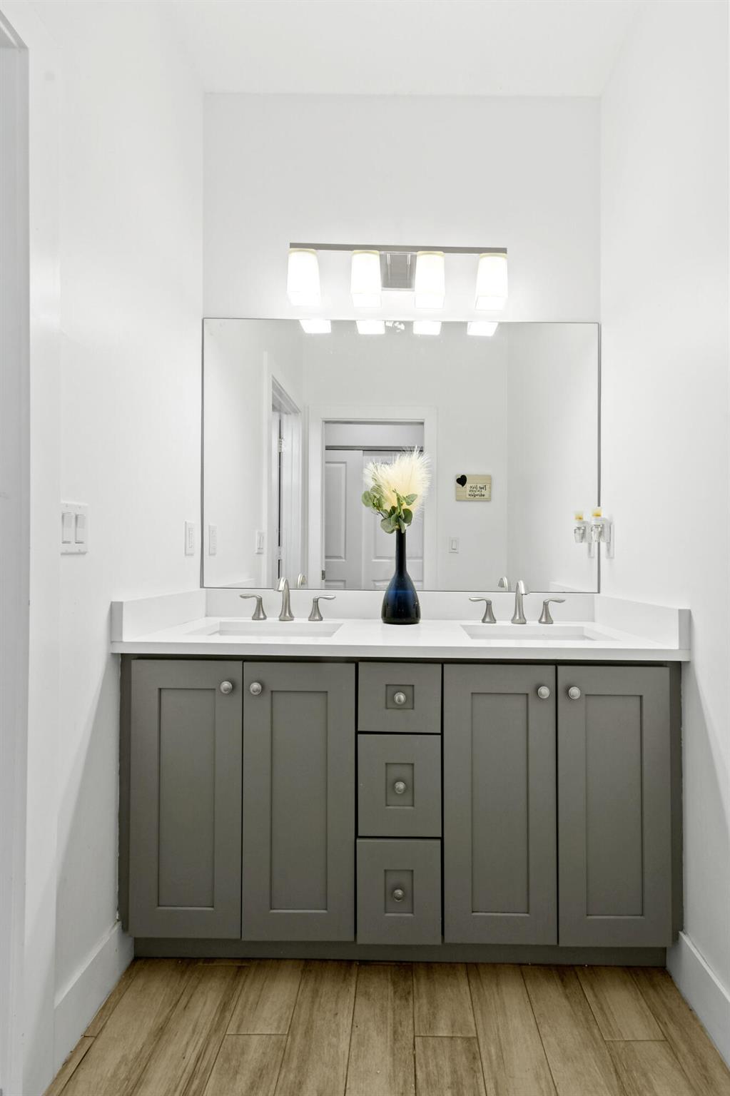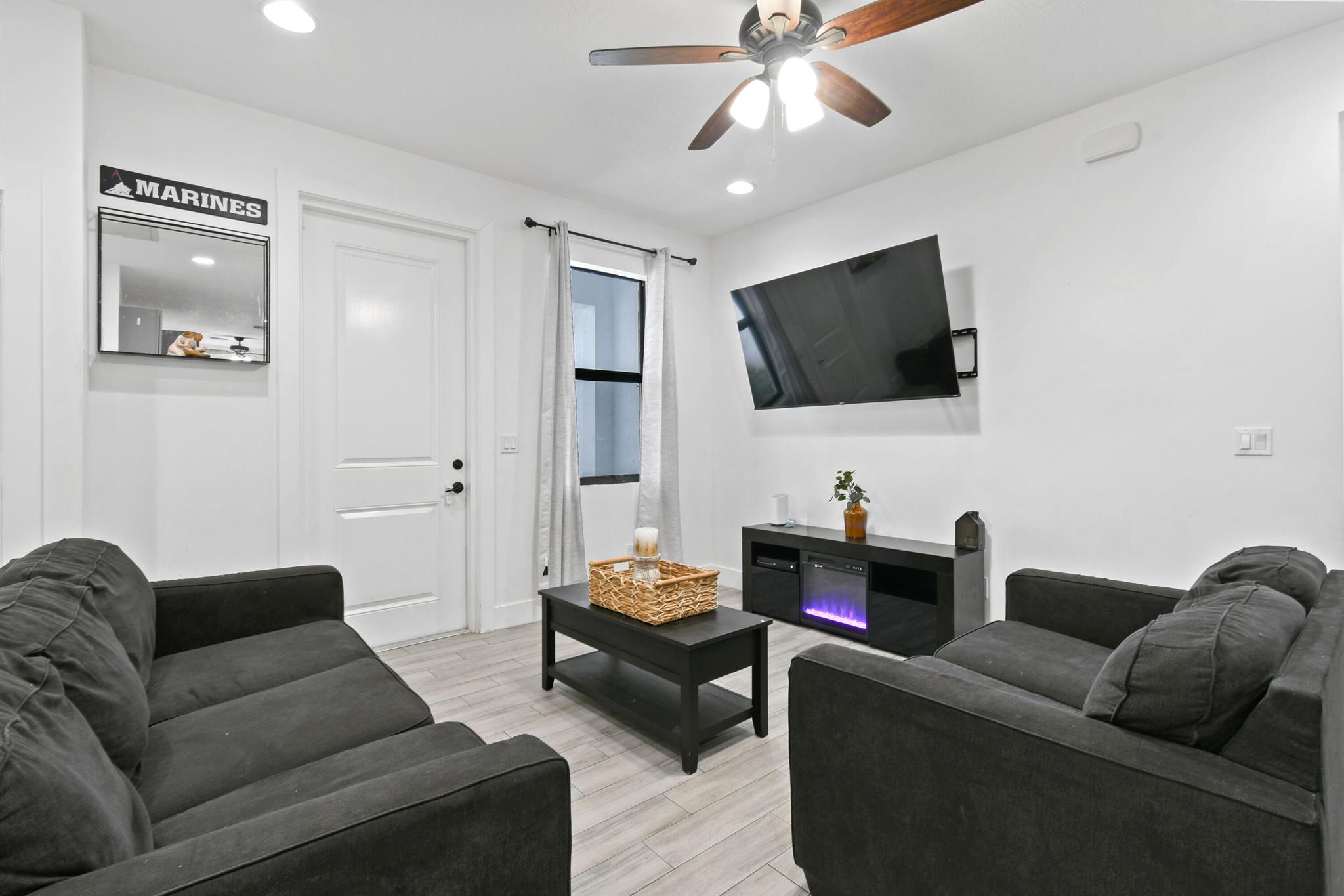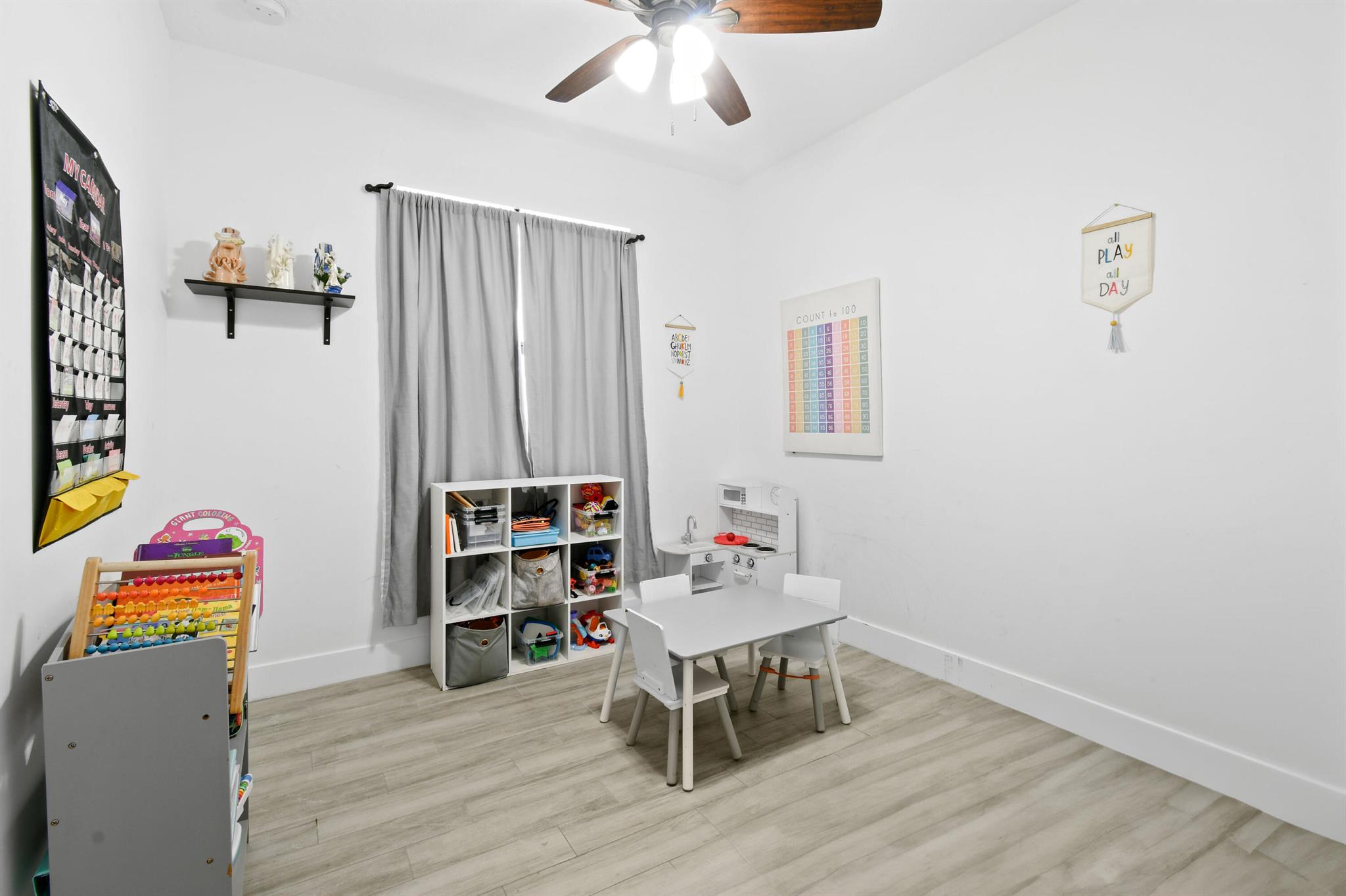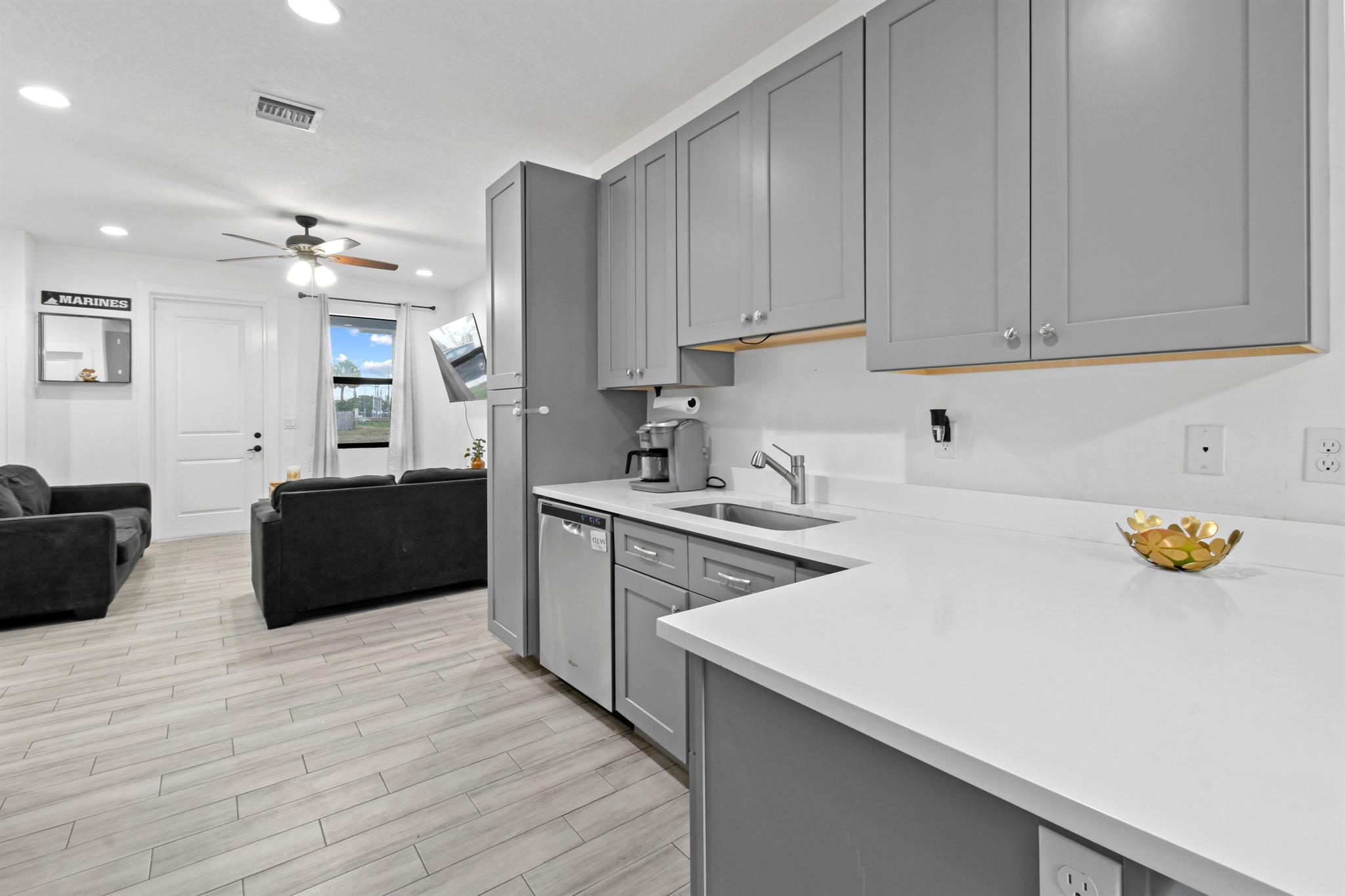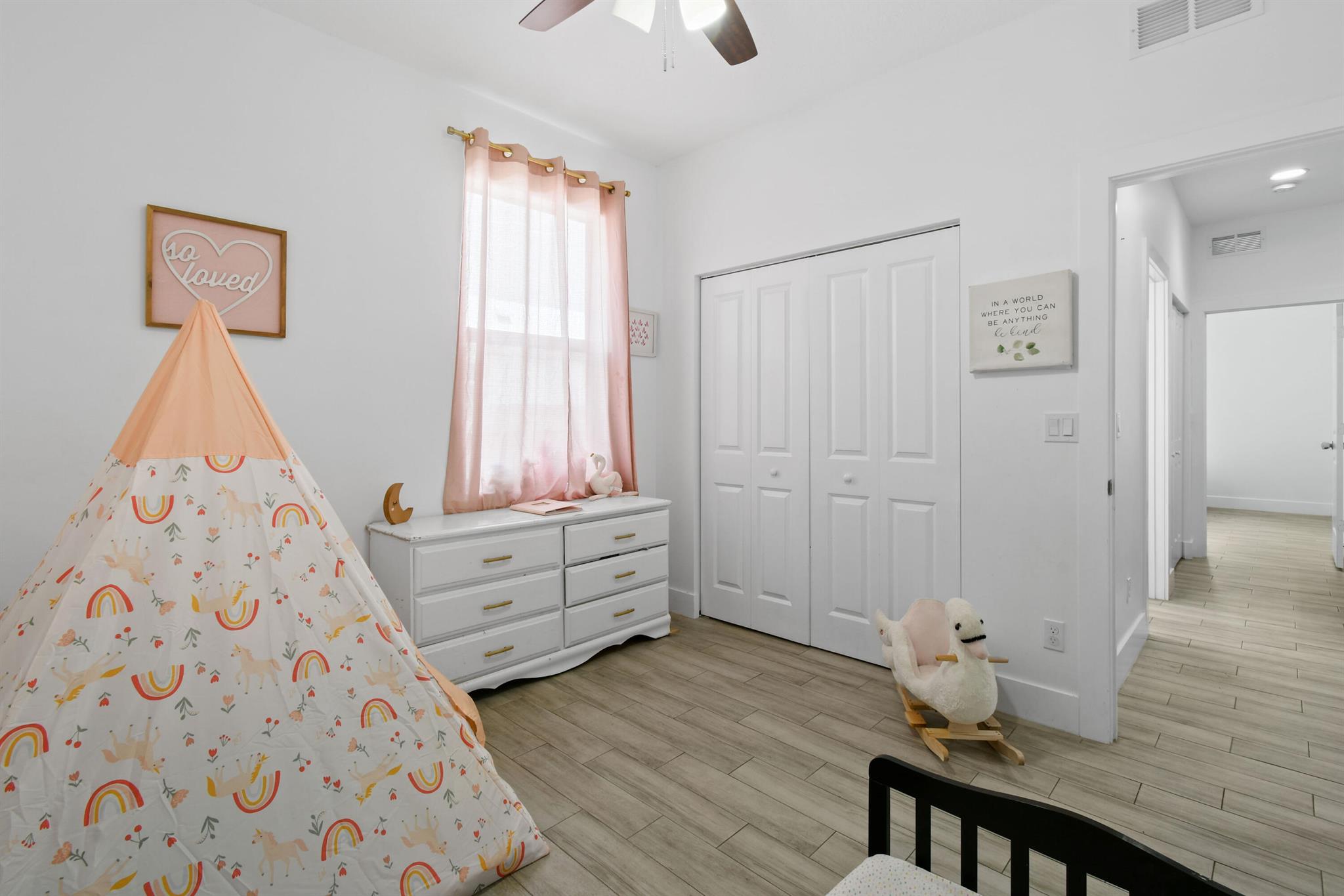A RARE GEM built in 2022, this spacious house boasts 5 bedrooms and 2 baths. The modern kitchen in grey and white is a standout feature with quartz countertops and stainless-steel appliances. Open floor plan with living and dining area. Split floor plan ensuring privacy for all. Massive primary suite with lovely bathroom featuring dual sinks and shower. Beautiful wood tile flooring throughout. Dual sinks and tub in 2nd bathrooms. Large completely fenced in backyard. IMPACT WINDOWS , NO HOA. Conveniently located near, shops, restaurants, beaches, downtown West Palm Beach and I95. Don't miss out on this excellent opportunity whether you're looking for an investment property or long-term family residence this house has the potential to meet all your need.