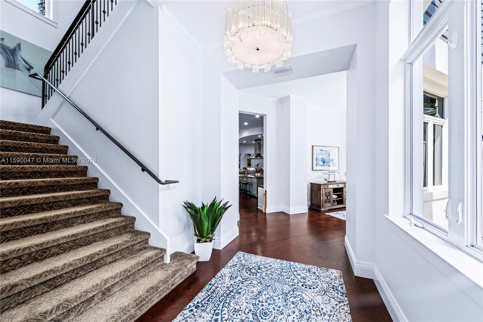 Enter through a private gate to find luxury at every turn. The grand living room boasts 28-foot ceilings and elegant pine floors throughout, and the gourmet kitchen impresses with a 12-foot island, 6-burner gas stove, Sub-Zero refrigerator, dual Wolf ovens, and a walk-in pantry. Set on a meticulously landscaped 1.3-acre lot, the 9,000+ square foot estate features 6 beds, 6 baths, an office, and a 4-car garage; cypress ceilings, a Dominican coral deck, and a 30-foot outdoor gas fireplace create a magical ambiance. There are multiple terraces, 2 outdoor kitchens, 5 A/C units, 2 tankless water heaters, a metal roof, impact glass, a guest house, and maid quarters. A brilliant combination of impeccable craftsmanship, timeless architecture & incredible finishes.