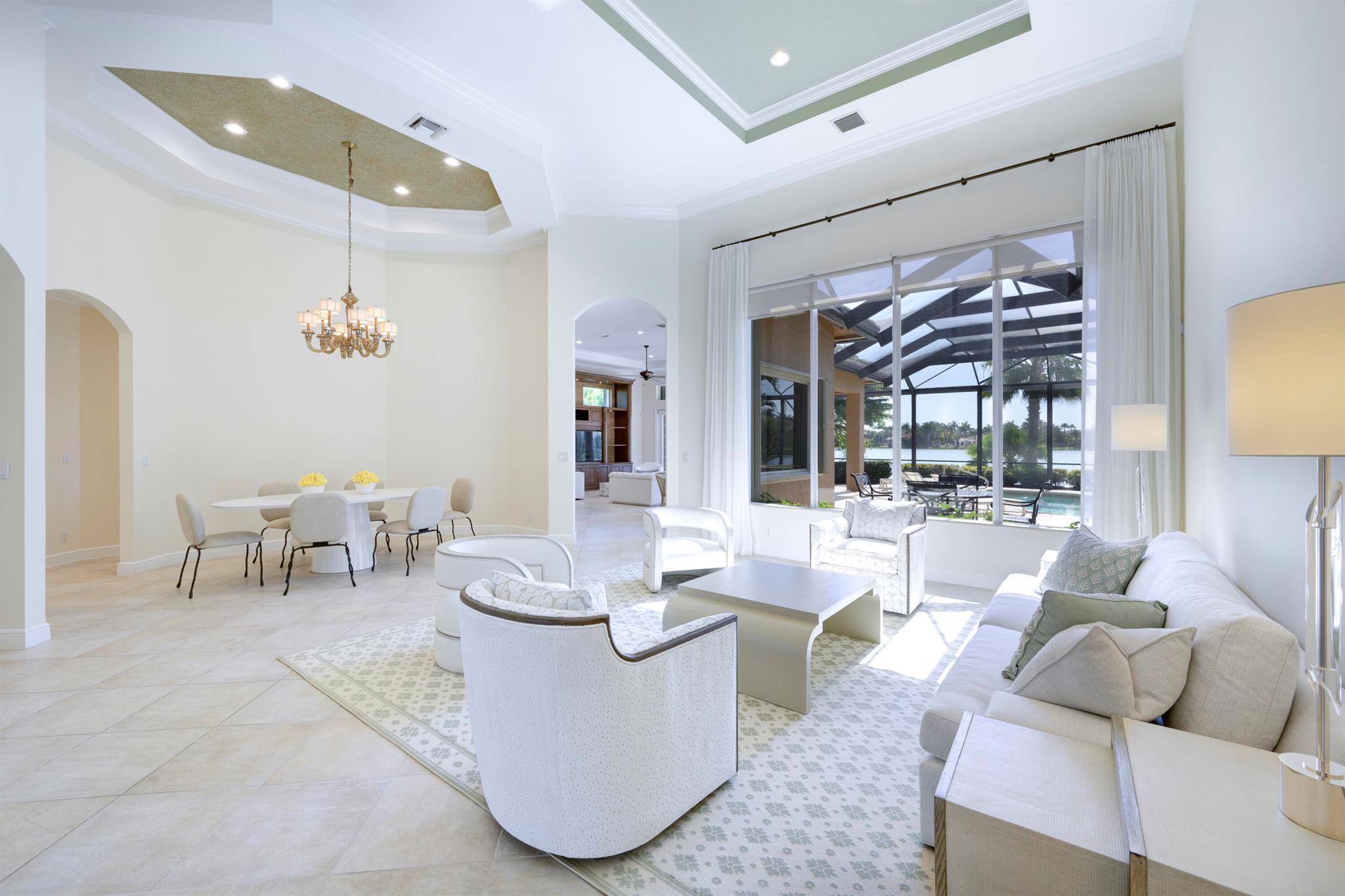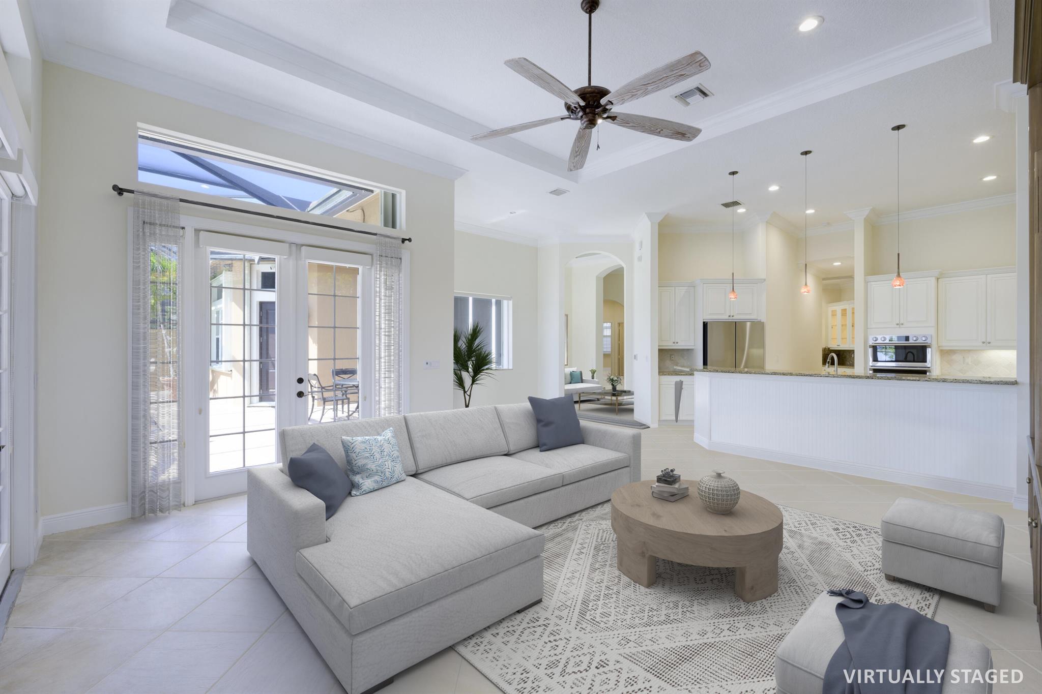 PREMIER GOLF MEMBERSHIP AVAILABLE! Spectacular estate home offering many upgrades with an unbelievably serene long lake view. This home offers 5br plus den and 4.5 baths. Spacious kitchen has been upgraded with ALL NEW S/S appliances (2023) to include range hood and gas stove. Large walk-in pantry with custom shelving. Open dining room with separate butler's pantry for easy prep and additional storage. Expansive living room area greets you upon entering displaying phenomenal water views. Elegant first floor primary bath has been redesigned to include NEW (2023) cabinets and countertops, his/her sinks and closet for extra storage. 2 a/c's 2023, 3rd AC unit 2021. Pool heater and filter 2023. Newly screened lanai . New interior paint (2023) and exterior paint (2025).