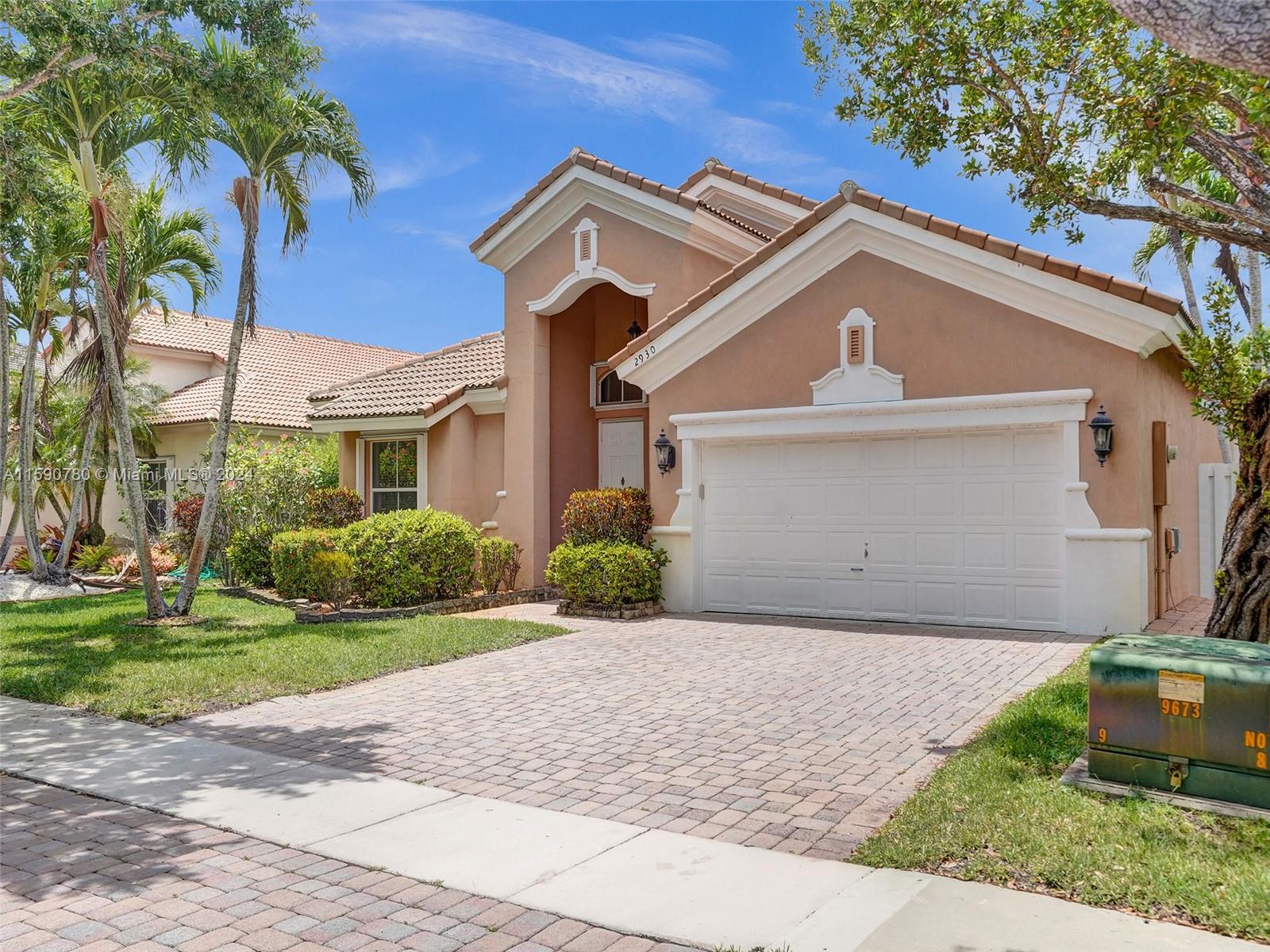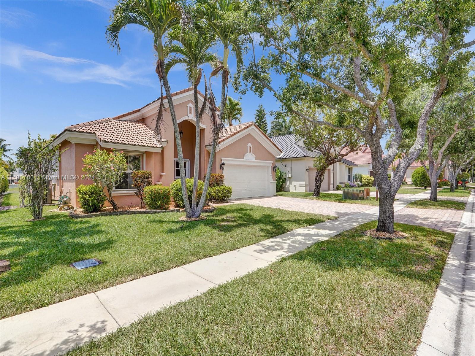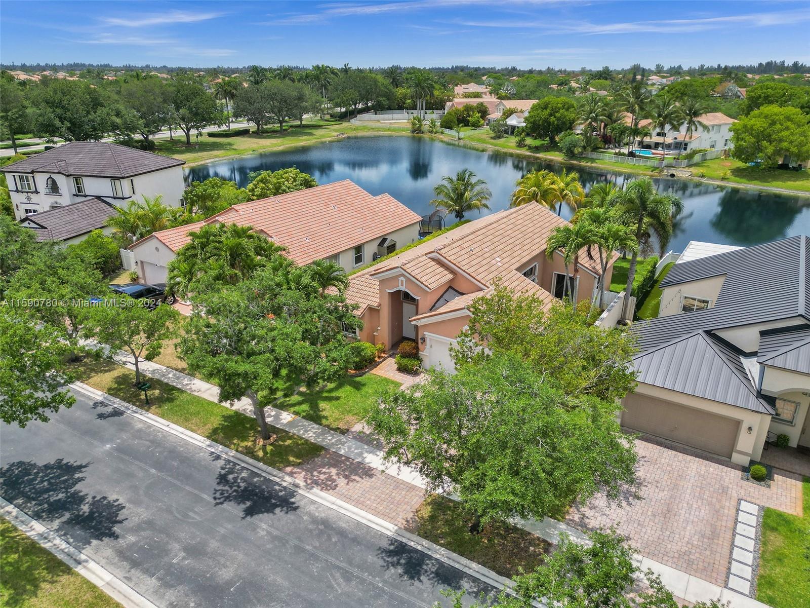 Experience lakeside luxury in Sunset Lakes at Monaco. This 2,111 sq ft home features 3 bedrooms, 2.5 baths, and a versatile den. Enjoy an open floor plan connecting the kitchen with the informal living area, perfect for family gatherings. The master suite provides lake views, a deep soaking tub, double sinks, and a spacious walk-in closet. Additional amenities include a laundry room, private garden, newer AC (2015), and a two-car garage. A recently inspected barrel tile roof, lush tropical landscaping with a lake-fed sprinkler system add to the charm. Residents enjoy access to a clubhouse, resort-style pools, a fitness center, and sports courts, all just steps from Publix and shopping conveniences. Discover this lakeside gem in Sunset Lakes at Monaco and make it your new home.