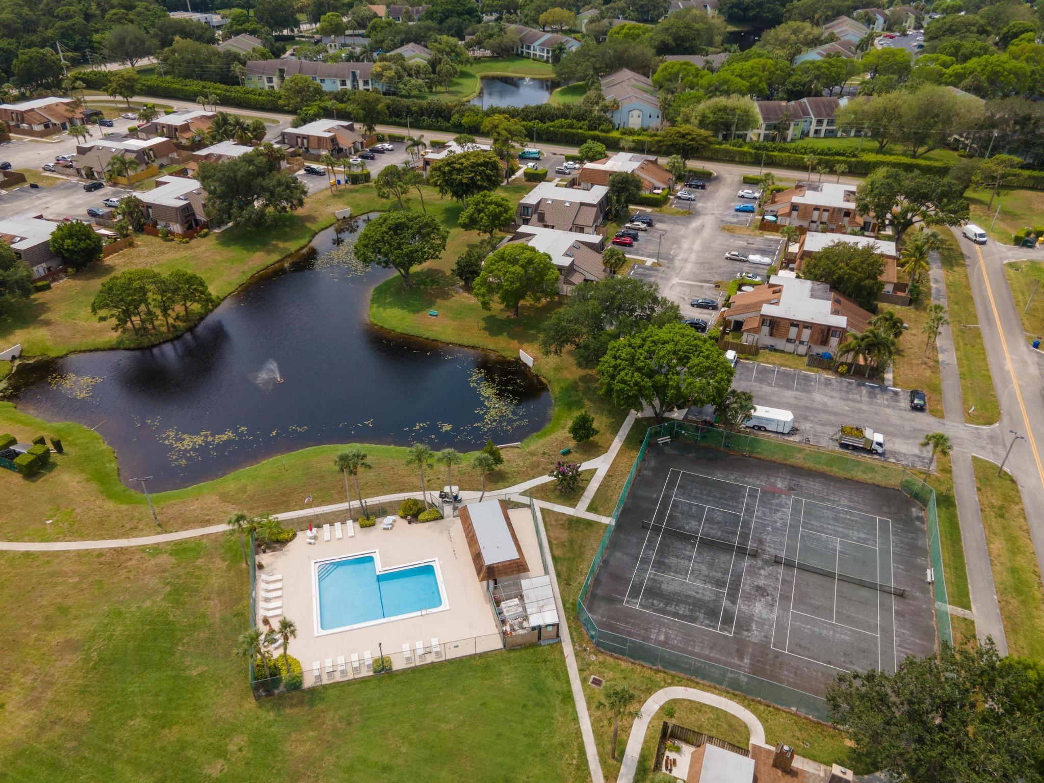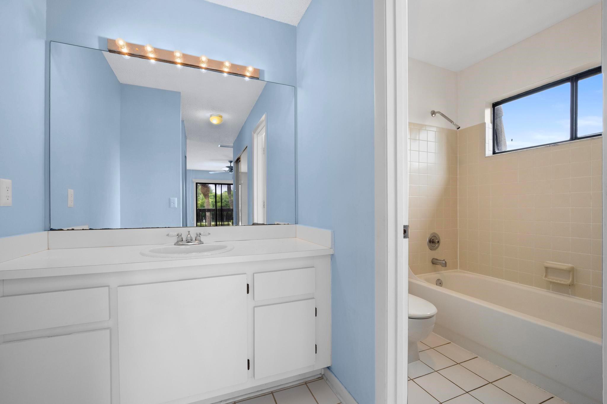 Welcome to 4012 Palm Bay Circle, a charming 2-bed, 2-bath townhouse in West Palm Beach. This inviting home features a cozy fireplace, vaulted ceiling, and a bright, open living area. The kitchen offers plenty of storage and counter space. The first floor bedroom features a walk-in closet, has access to the main bathroom, and sliders to the patio. Upstairs the loft adds plenty of natural light. The master bedroom includes an en-suite bath, walk-in closet, and a balcony. Enjoy the private patio perfect for outdoor living. With a new roof and new water heater (2023) and community pool and tennis courts, this home offers comfort and great amenities. Conveniently located near shopping, dining, the airport, and beaches. Don't wait schedule your viewing today.