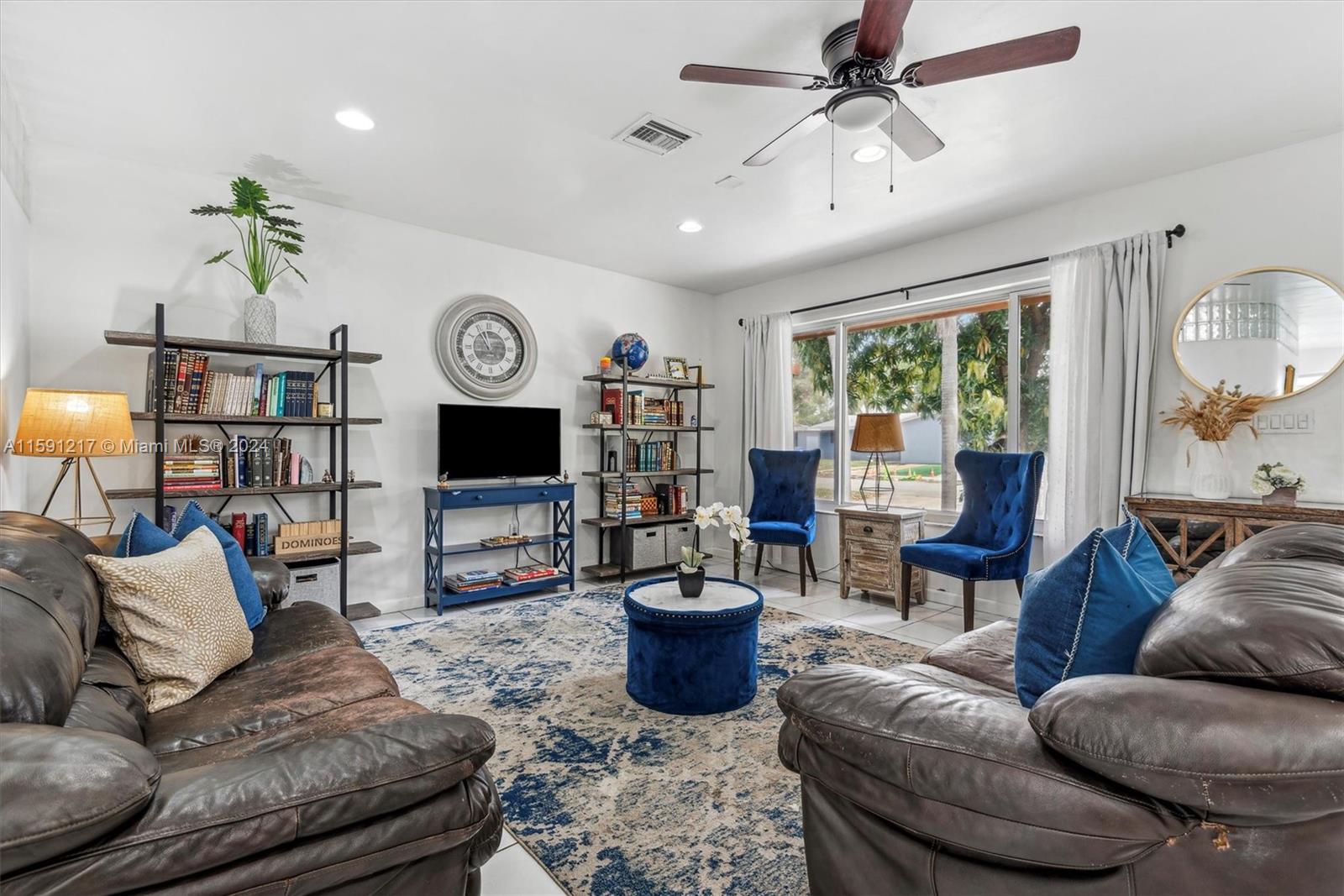 Large home for sale on a family friendly block! Impact windows throughout fill this home with natural light! Open floor plan, updated kitchen and children’s bath… high ceilings with LED recessed lighting. With an approximate 2500sf interior footprint, the house has 3Br/2Ba with an additional 1Br/1Ba in-law quarters, accessible through the main house or via separate entrance. The back yard is home to a newly resurfaced 15X25 foot pool, where the family can eat, lounge, or play! For more information or to schedule a showing, please call listing agent.