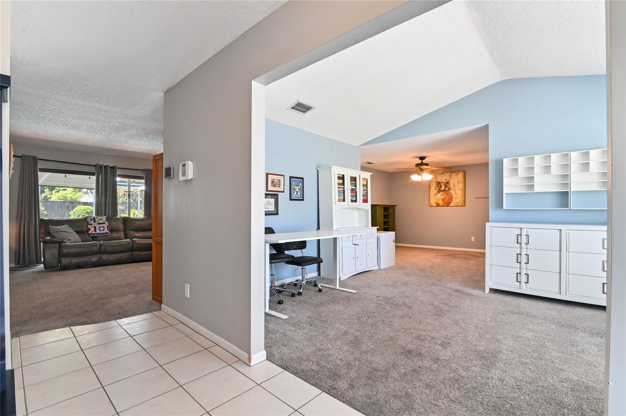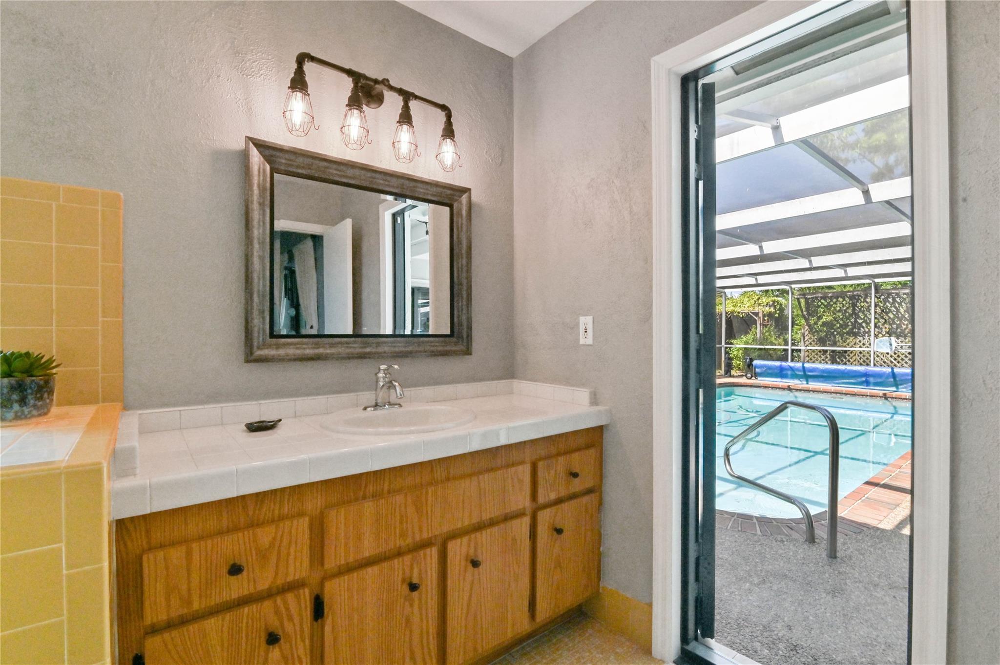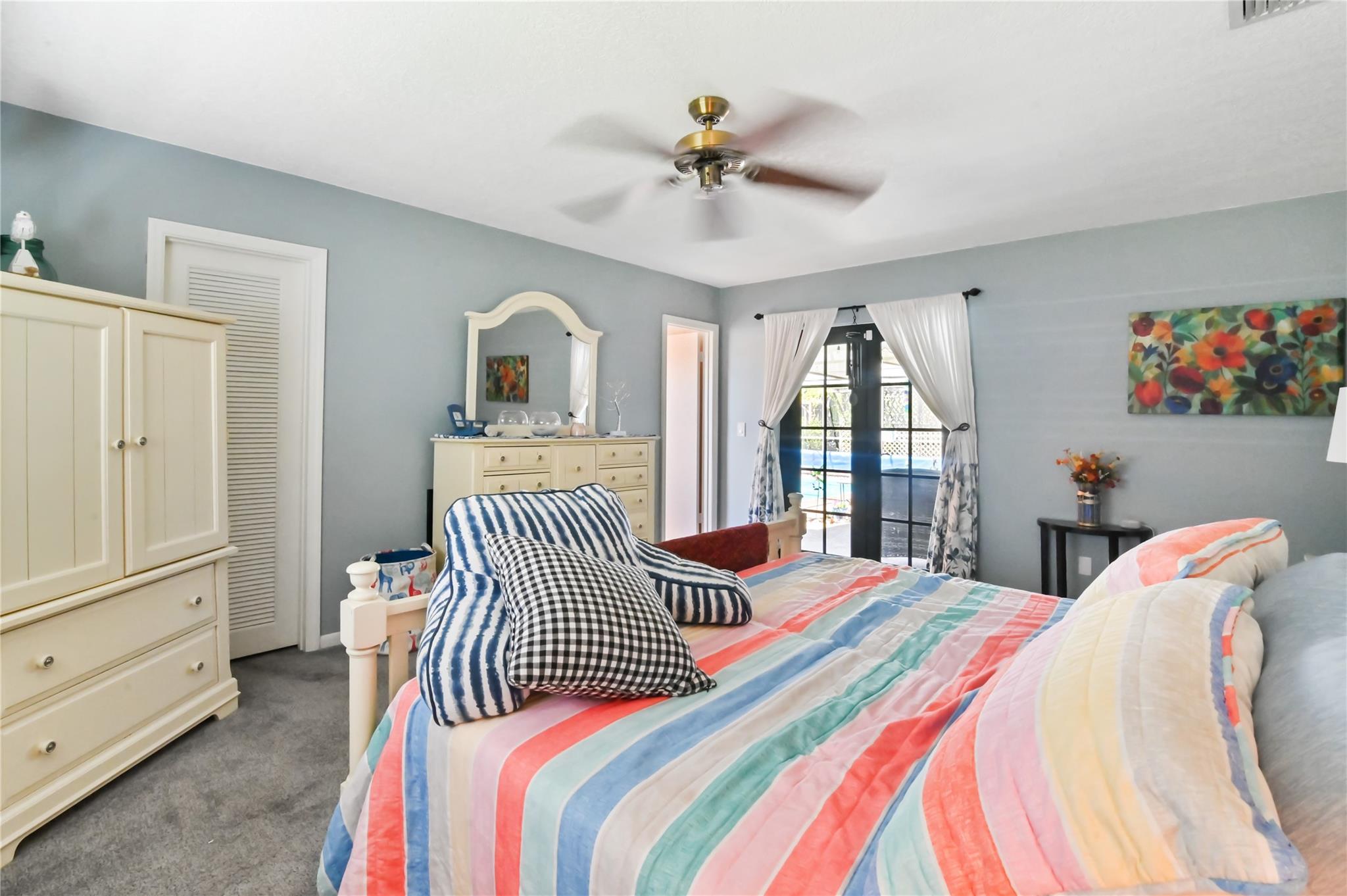 Brand new roof being installed on this beautiful 3 bdrm 2 bath sparkling pool and patio oasis fully screened with 2 car garage! This move-in ready gem offers wood kitchen cabinets,quartz counters,s/s appliances, smooth top range, built in micro,High Hat lighting,indoor utility rm w/pantry. Family room flows out to pool/patio with impact sliding glass doors. Fenced in dog run area off pool. Large primary suite w/walk-in closet impact sliding glass door. Primary cabana bath has shower only and impact door & window. Two generous secondary bedrooms with good size closets. Knockdown ceilings thru-out. Impact entry door and hurricane shutters thru-out. Located on over a quarter acre lot. Freshly painted exterior. Don't miss your chance to make this dream home yours! No HOA!