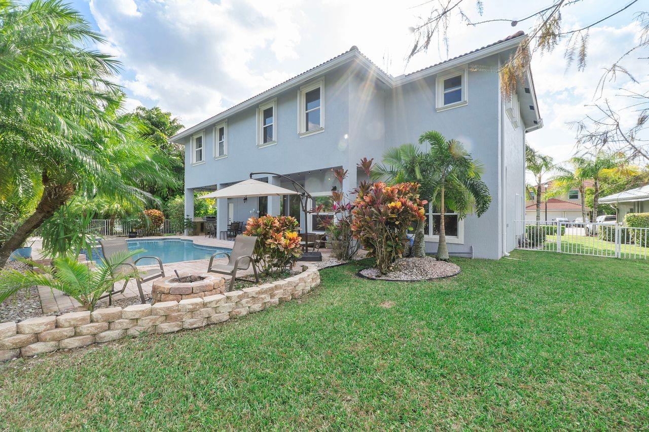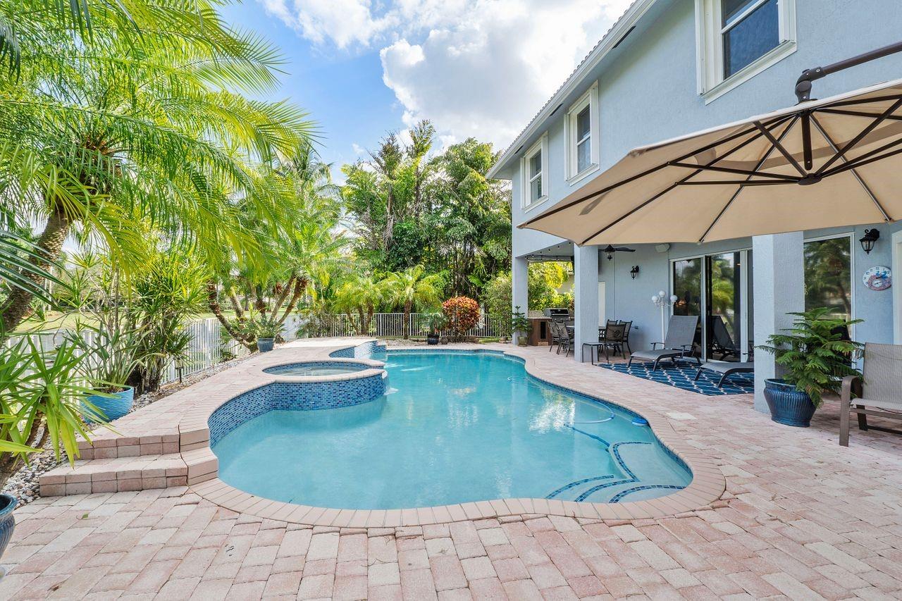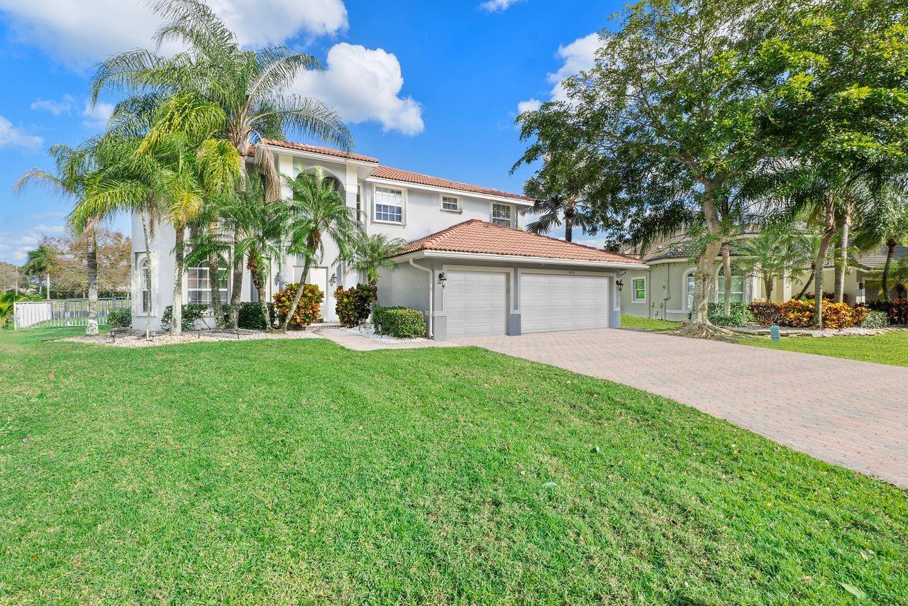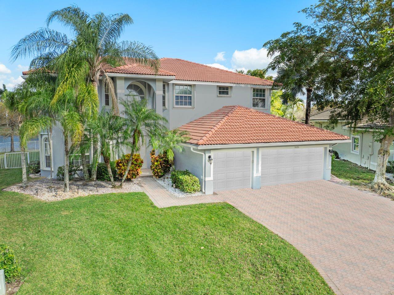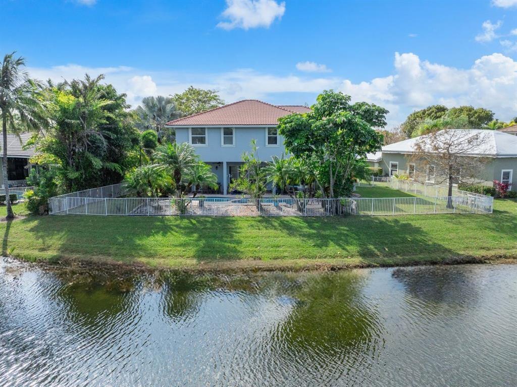 Pelican Isles in Wyndham Lakes - 2 story waterfront estate featuring gated entry, 5 beds + HUGH loft, 3 baths, 3 car garage, heated pool/spa on an exquisite water lot. Grand foyer entry, elegant staircase, volume ceilings, porcelain tile & upgrades throughout. Gourmet eat-in kitchen, 48' wood cabinets, SS appliances & granite. 3 beds up + enormous loft. Primary suite upstairs w/ tile, sitting area, walk-in closets, spa bath w/ seamless glass shower & free standing soaking tub. Stunning water views, salt water heated pool & spa, outdoor BBQ, fire pit & fully fenced yard. Accordion shutters, custom built-ins, large loft w/ porcelain tile, laundry room w/sink, finished attic space for storage, A/C garage & LOW HOA of $150 mo. includes gate, lawn and irrigation. Ok to lease.