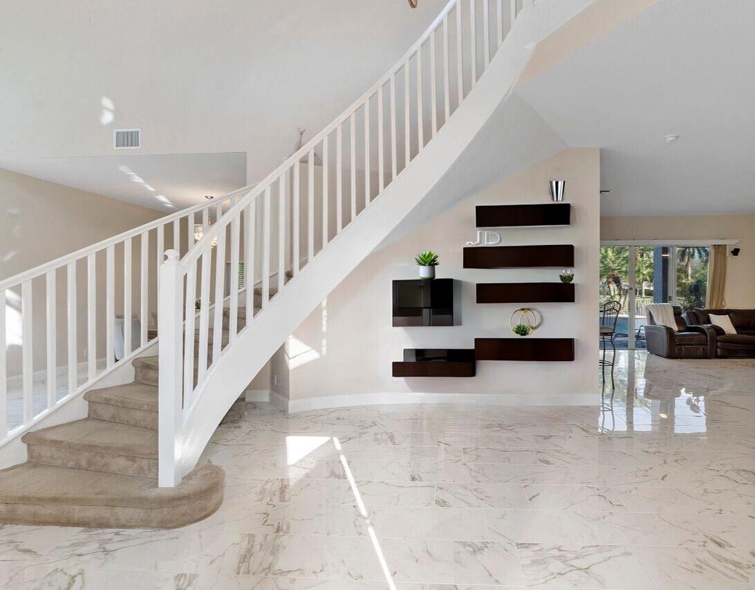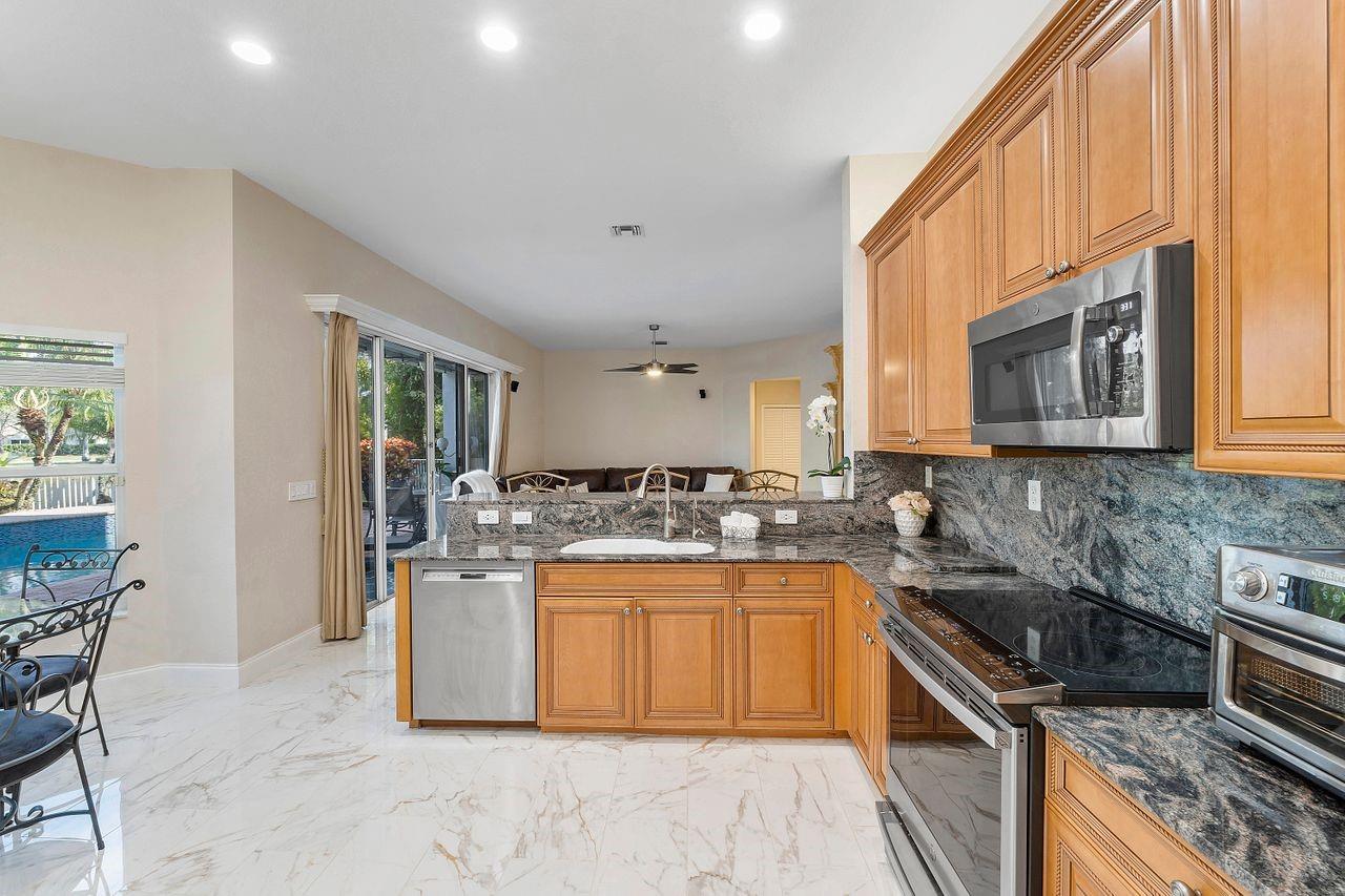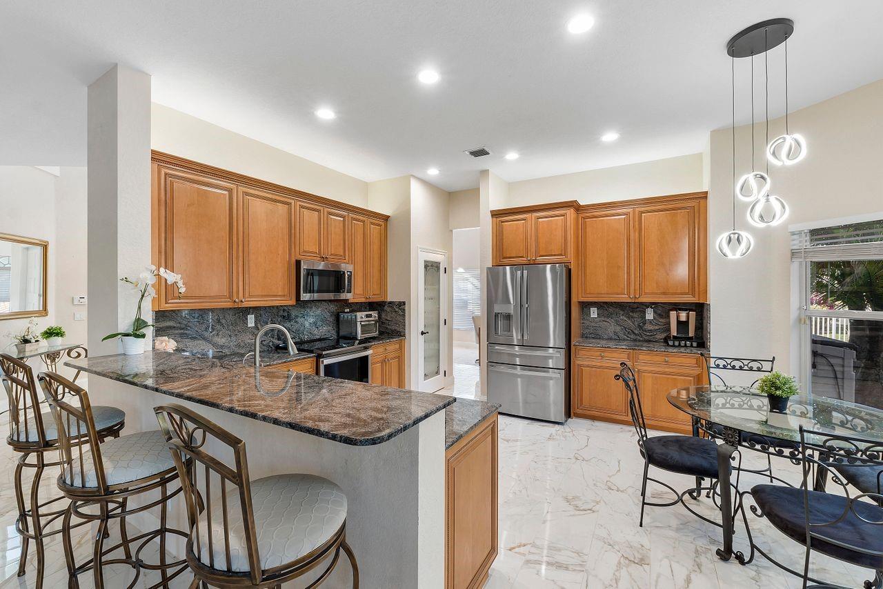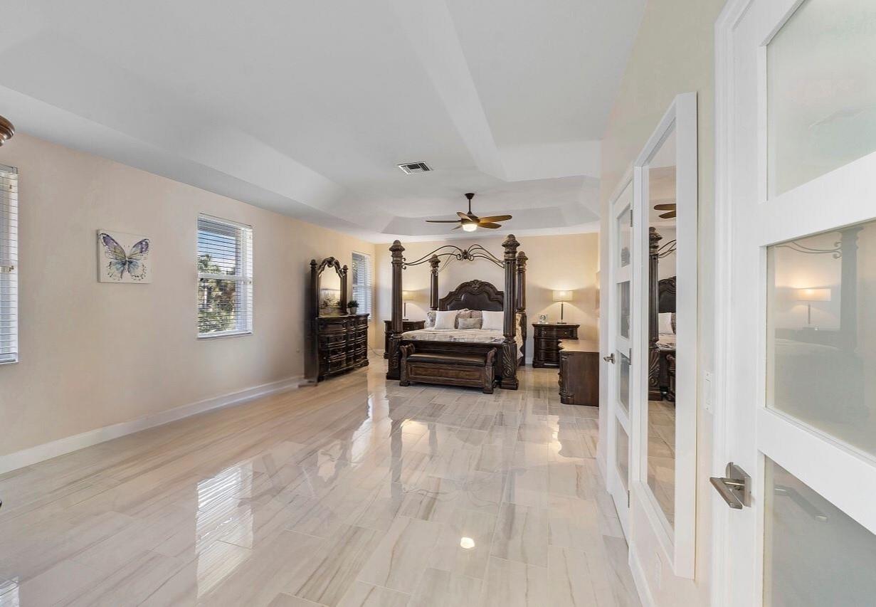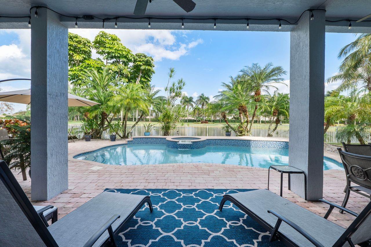 Pelican Isles in Wyndham Lakes - 2 story waterfront estate featuring gated entry, 5 beds + HUGH loft, 3 baths, 3 car garage, heated pool/spa on an exquisite water lot. Grand foyer entry, elegant staircase, volume ceilings, porcelain tile & upgrades throughout. Gourmet eat-in kitchen, 48' wood cabinets, SS appliances & granite. 3 beds up + enormous loft. Primary suite upstairs w/ tile, sitting area, walk-in closets, spa bath w/ seamless glass shower & free standing soaking tub. Stunning water views, salt water heated pool & spa, outdoor BBQ, fire pit & fully fenced yard. Accordion shutters, custom built-ins, large loft w/ porcelain tile, laundry room w/sink, finished attic space for storage, A/C garage & LOW HOA of $150 mo. includes gate, lawn and irrigation. Ok to lease.