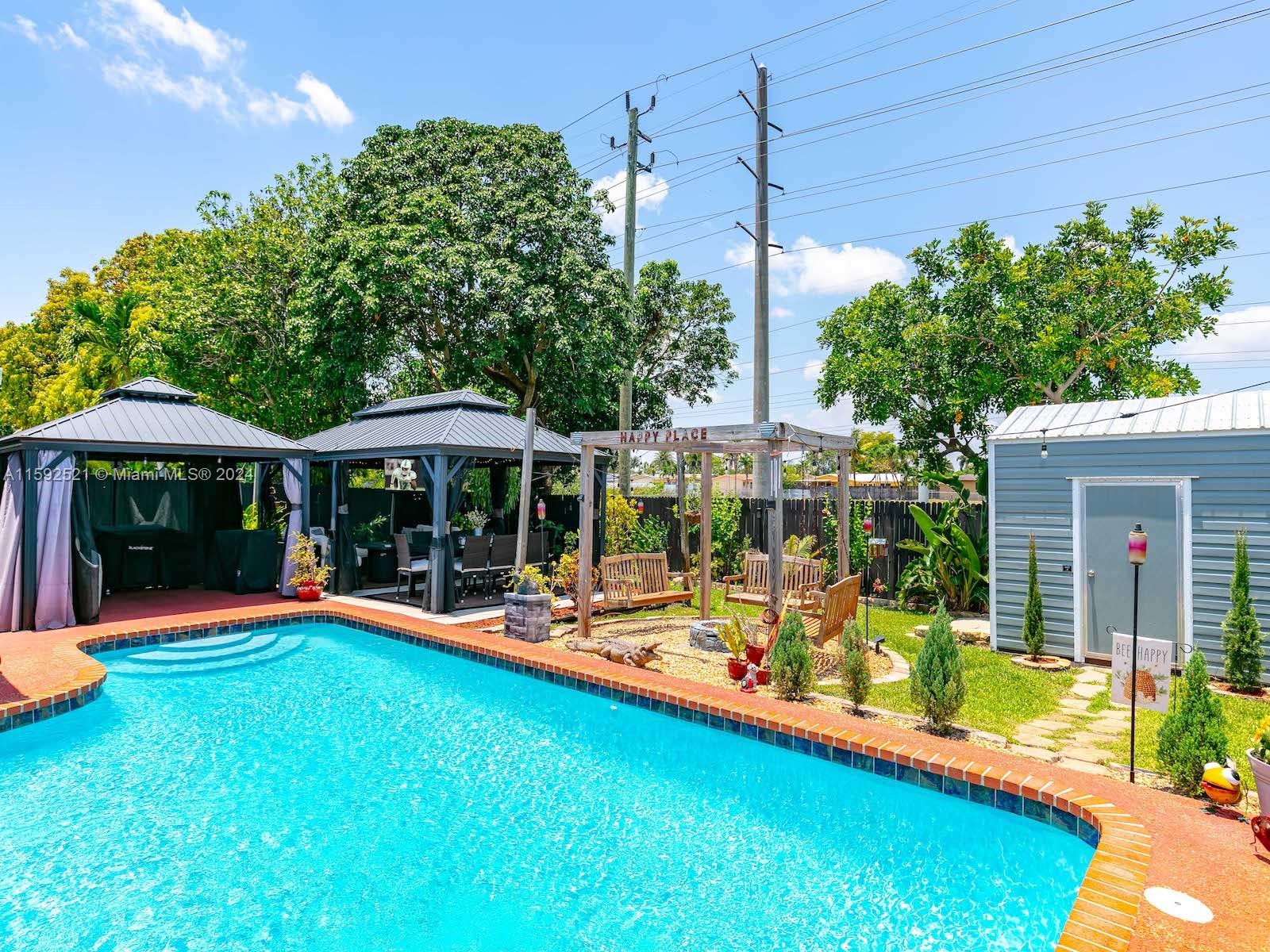 No HOA! Gorgeous completely remodeled smart home with a heated pool! This house was made for entertaining. Seller spared no expense in the remodel. Hurricane Impact Windows, New house A/C, Custom Secure Mailbox, Pool Heater. Brand new beautiful waterproof laminate flooring runs throughout this large home, gourmet kitchen with island and all the modern conveniences including touchless faucet, new appliances & pull out drawers, garage with AC, newer roof with thick insulation, second bathroom is handicap accessible, salt water pool with new filter, outdoor gazebo with power for TV & fan, new shed, ring alarm door system, solar power cameras and home backs to a huge easement.to Close to I-75. A+ schools! Do not miss this opportunity to live in the amazing city of Pembroke Pines.