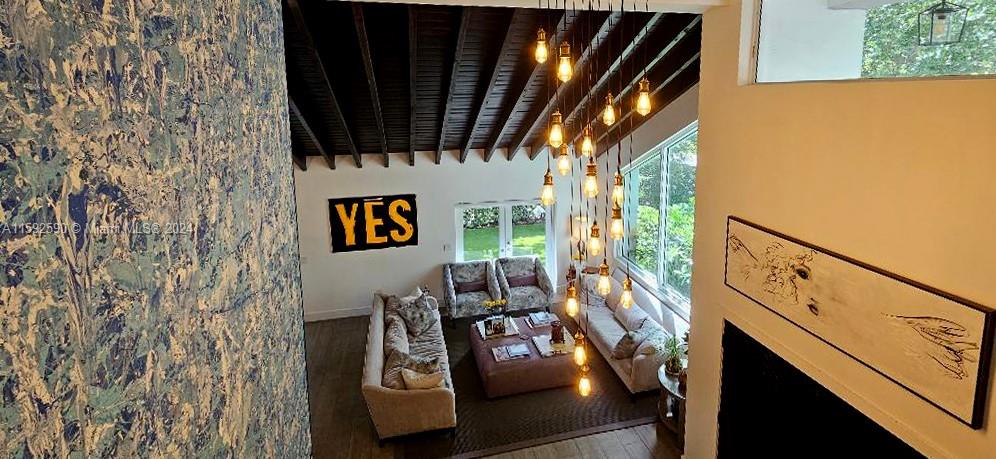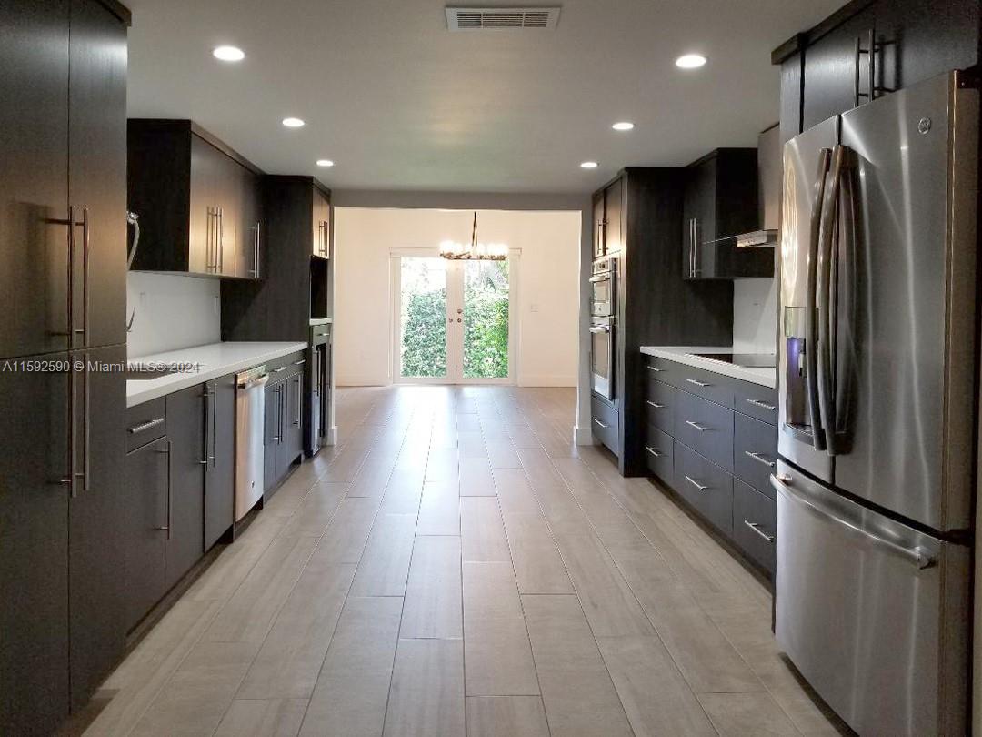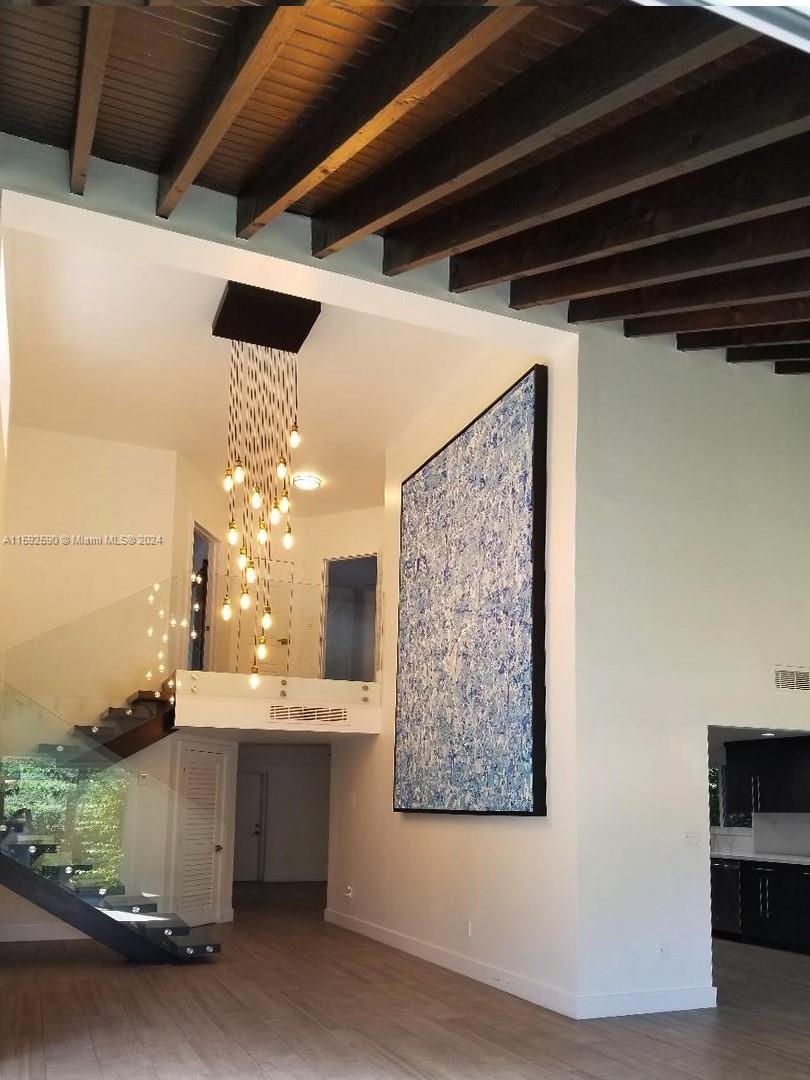 Contemporary modern style 2 story home in Coral Gables. Completely remodeled 3Beds/3full baths. Extremely high ceilings with wood beams greet you. House offers formal living and dining areas plus an open concept modern kitchen. Custom electric high-end blinds and plantation shutters. House has impact windows and doors and a one-car garage. One-bedroom plus full bathroom is on the first level. Floating contemporary stairs with glass railing lead you to the second floor where the other 2 bedrooms/2 bathrooms are located. House has lots of custom closets plus custom wall built-in extra drawers and shelves. House is located on a corner lot. 2019 Roof with a transferable warranty. Minutes from Miracle Mile, shopping, restaurants, and great schools.