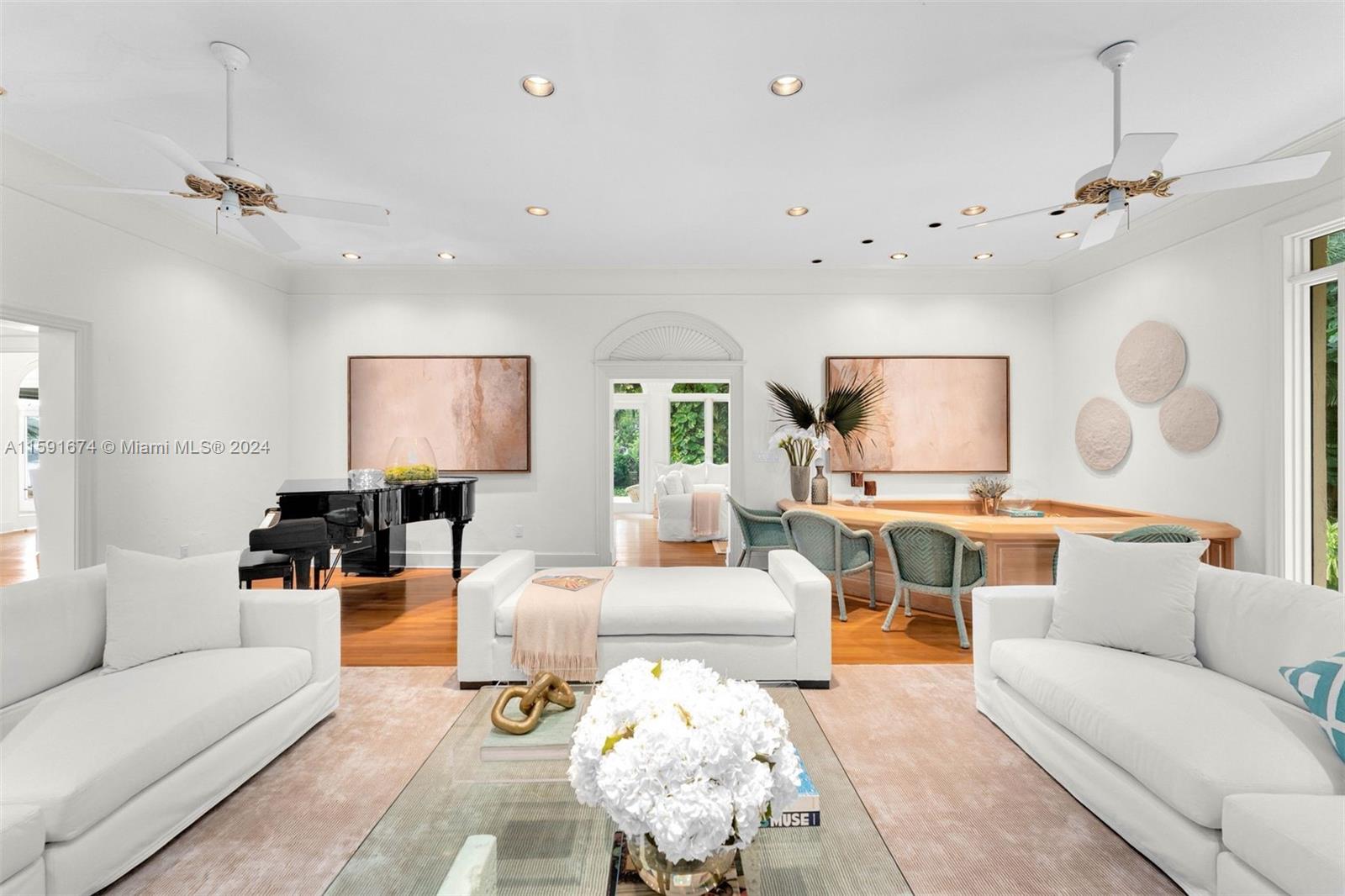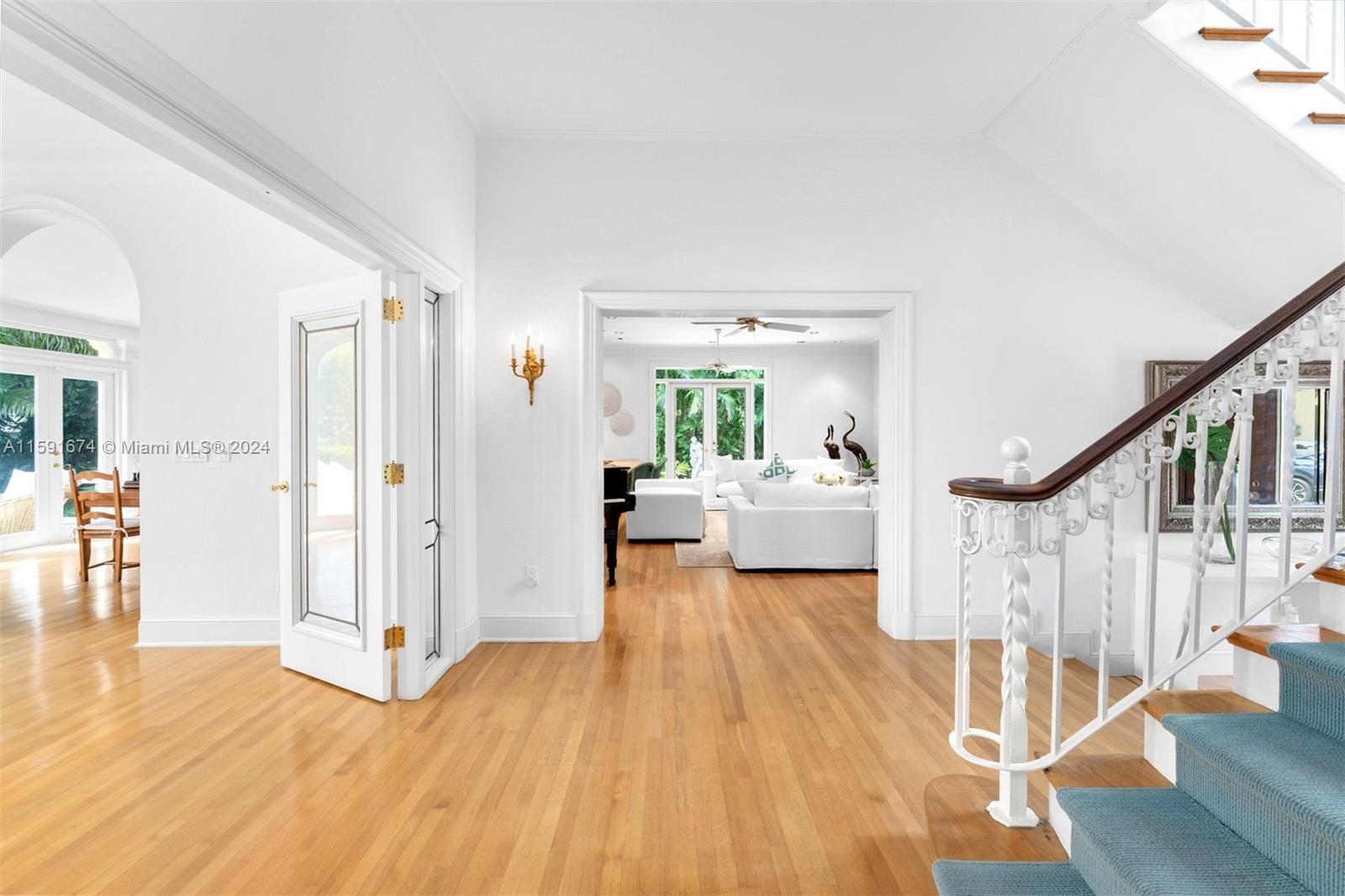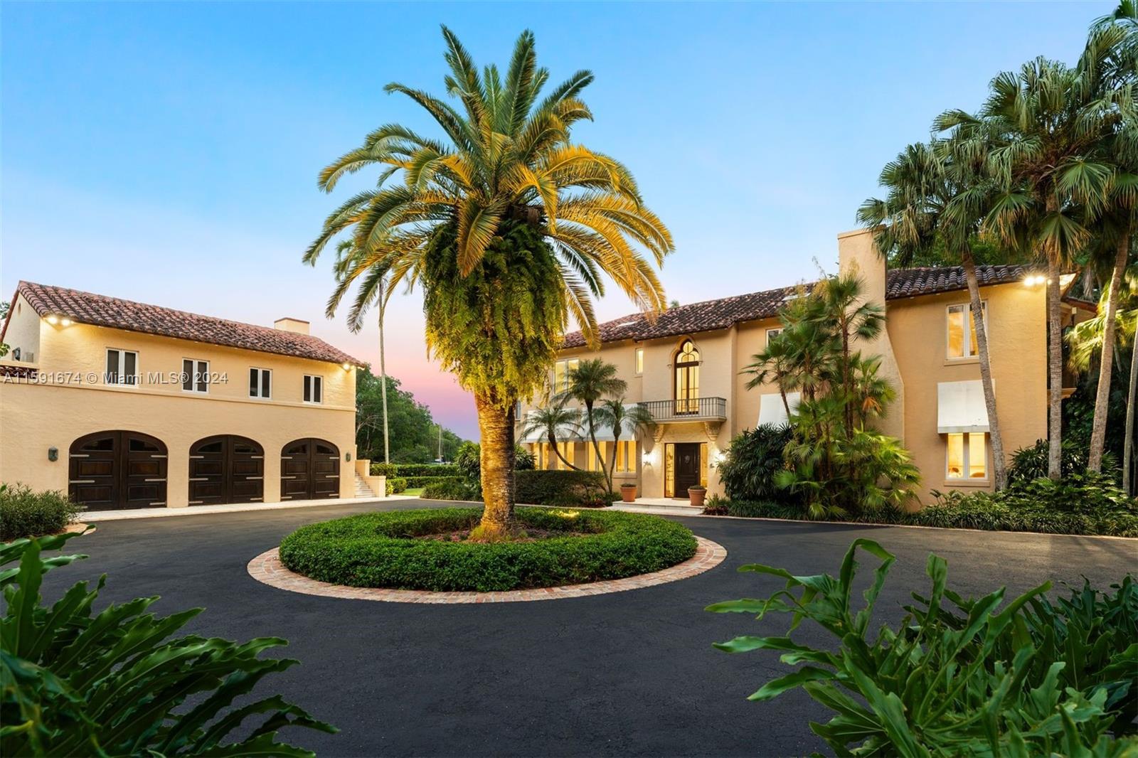 Rare & extraordinary waterfront estate in the highly sought-after gated community of Cocoplum Phase 1, situated on a sprawling 37,500 SF point lot where 3 waterways converge. Offers approximately 378 ft of water frontage & 200 ft of dock on the Lago Monaco waterway, with long water views & direct bridge-free access to the Bay. This elegant 6,618 SF Mediterranean-style home features double-height ceilings, expansive spaces & stunning sunrise views from the interior. The property’s superior docking & exceptional fishing make it ideal for boating enthusiasts. Additional features include a primary suite with an expansive terrace overlooking the waterway, a guest house with versatile entertainment area, and kitchen. Underwent complete award-winning renovation and expansion in 1992.