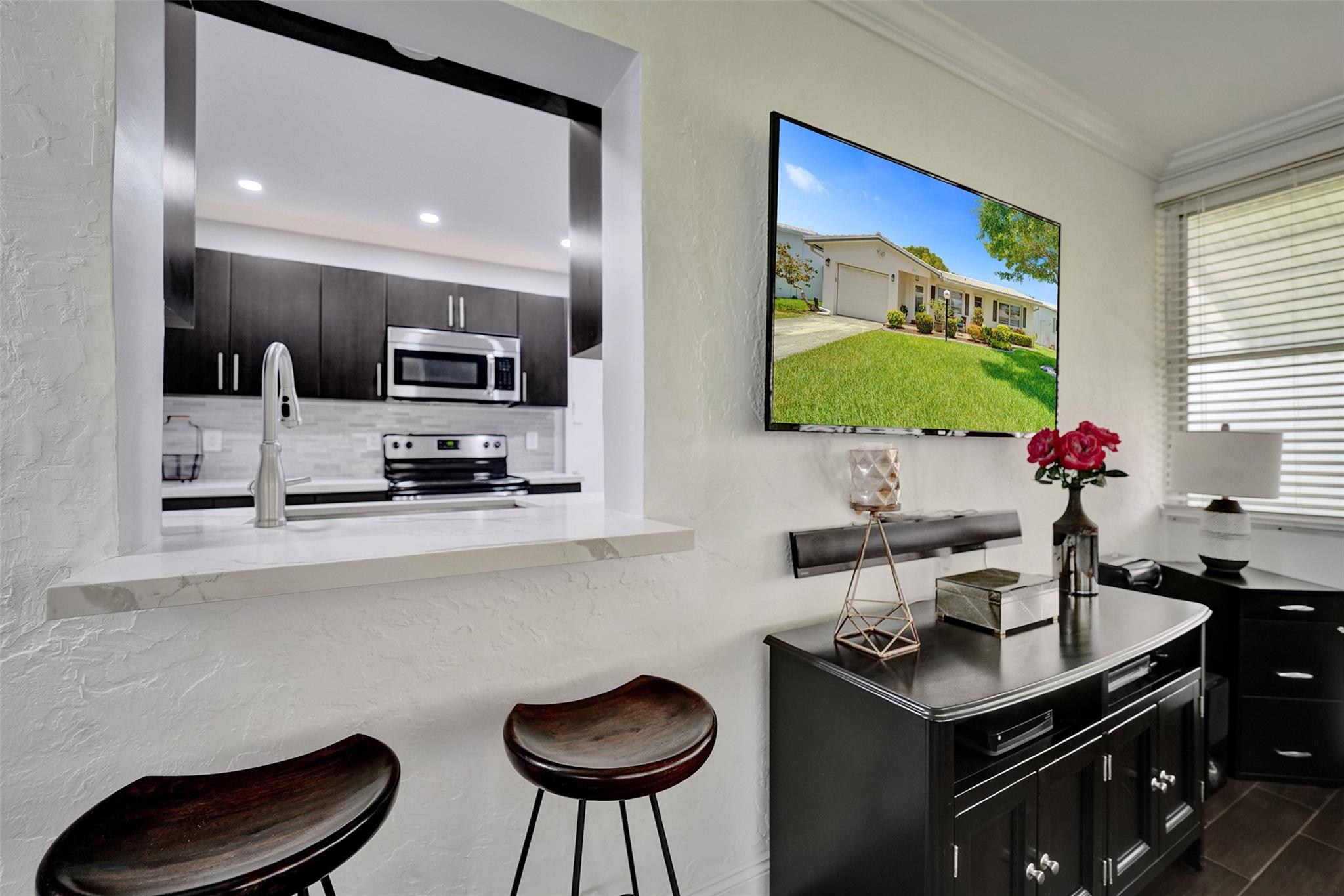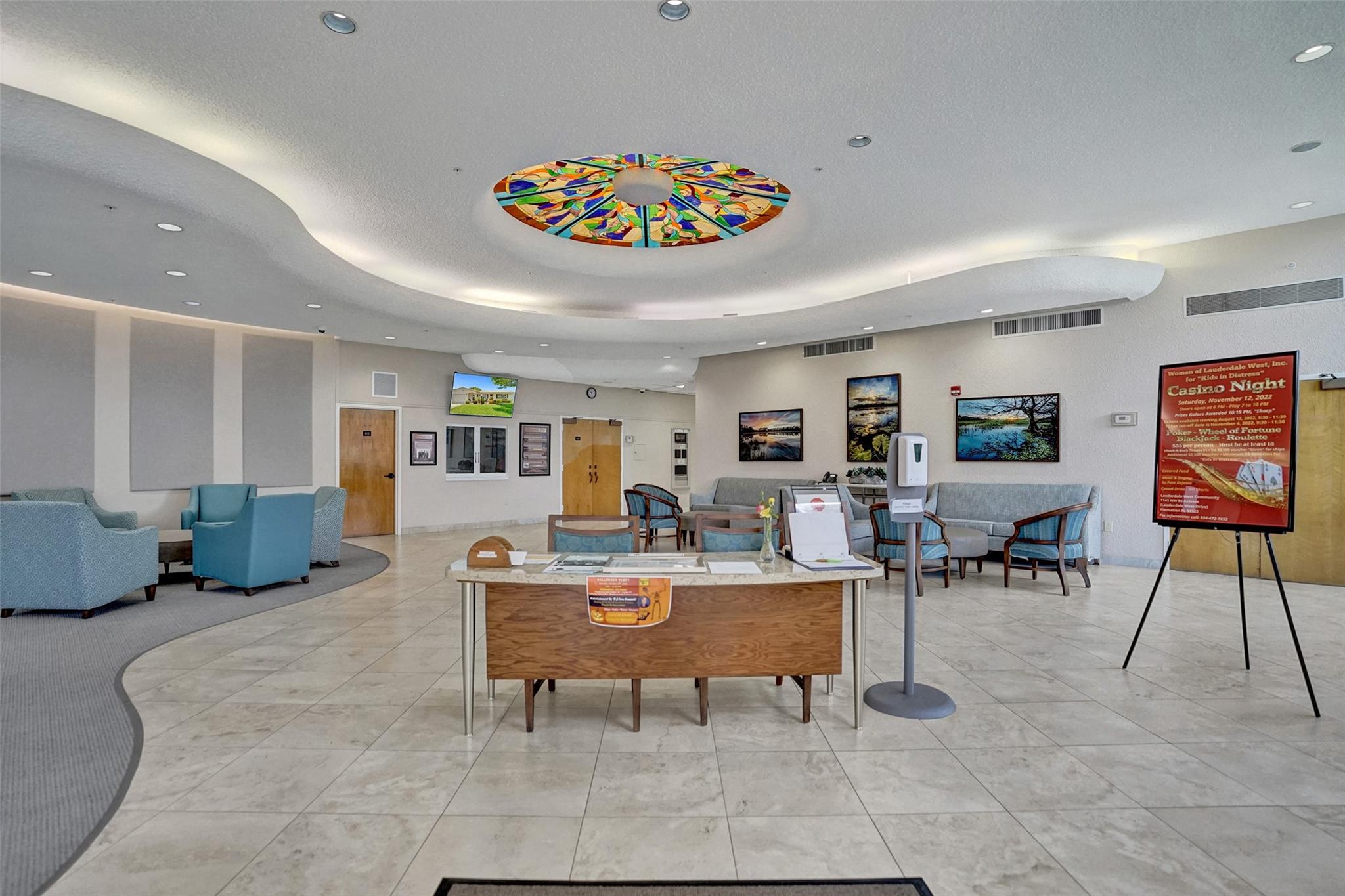 This amazing and move-in-ready 2-bedroom, 2-bathroom home with a one-car garage shows like a model. Nestled in a serene setting, it features accordion shutters and a new impact-resistant glass front door for peace of mind. The interior boasts exquisite waterproof vinyl flooring throughout, spacious walk-in closets, and newly remodeled bathrooms, and zebra curtains on windows. Enjoy the front porch or the inviting Florida room year-round. Additional highlights include a newer A/C unit and a roof that's 8 years old. The vibrant community offers two Olympic-sized pools, a fitness center, saunas, tennis courts, billiards, ping pong, and an active clubhouse with a courtesy bus. Association fees cover roof maintenance, exterior painting, lawn care, internet, cable TV, and more.