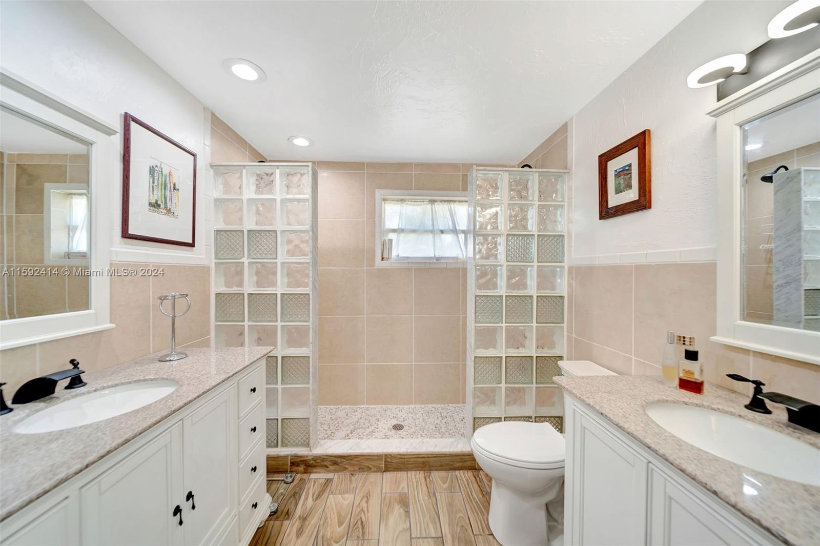 Recently RENOVATED! Located in the heart of Hollywood on a large private lot, this unique property consists of a spacious 3 bedroom / 2 bath main home plus a 1 bed /1 bath guest house. The renovation completed by previous owner in 2022 included new appliances, kitchen with quartz counters and plenty of cabinet space, baths with 2nd bathroom renovated anew in 2023, IMPACT windows and doors in the main house. Roof done in 2019, new washer and dryer 2024. The detached guest house is perfect for your visitors or your office and the yard has plenty of room for a pool. Click the virtual tour link to view the interactive floor plan and 360 views!