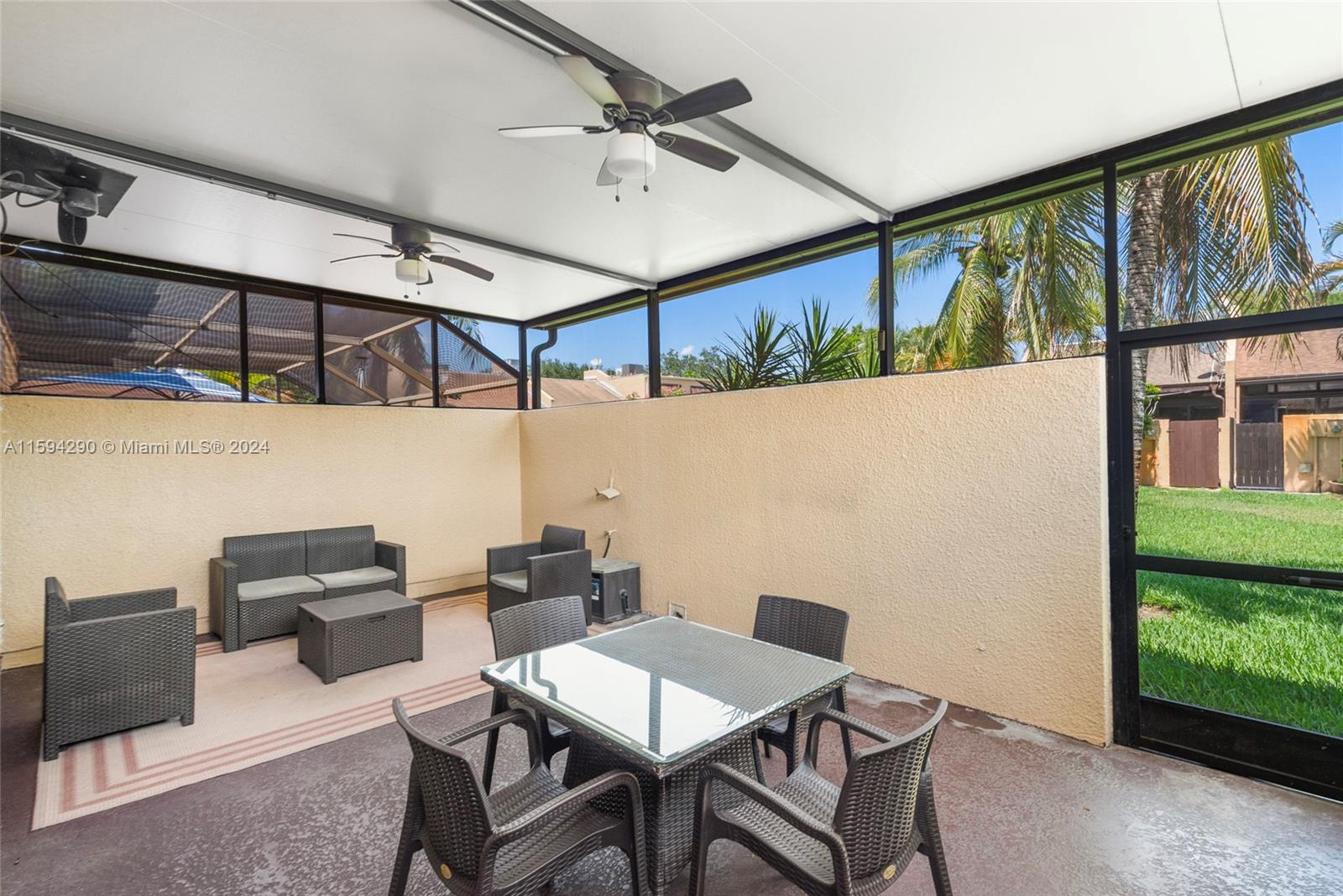 Beautiful modern townhouse in the heart of Pembroke Pines. Low Hoa fee, 5 minutes to Publix Supermarket, mall and all major shopping. Enjoy all that this home has to offer including hurricane impact windows and doors, neutral interior flooring and paint colors, Textured walls and ceiling, modern lighting, high end appliances, wine cooler built in bar in dining room, custom built-in closets/cabinets, open layout in your main living areas, attached garage, over-sized screened in covered patio, outdoor green common areas in the rear of the home, community pool, parking for 3 vehicles comfortably, guest parking, safe community and great neighbors. Property can be purchased with or without furniture. Solid concrete structure only 4 units in the community with a garage and this is the BEST.