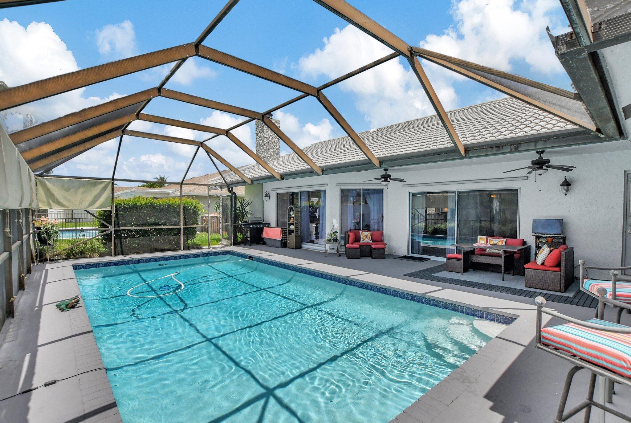 Fabulous rarely available 4 BR/2BA Corner Pool Home in sought after Indian Head at Logger's Run. Just tucked away in W Boca Raton! Excellent location surrounded by parks, green space, shoppes, dining, hwys, great schools & so much more! Home features large corner lot offering enclosed pool, quaint porches & retreats for the whole family! Freshly painted inside & out, neutral stone accents, updated white kitchen cabinetry w/granite, newer S/S app, recent tile throughout home, elegant stone fireplace, naturally bright home w/ pool views/access from almost every room, spacious BR's, lots of storage, AC 2008, New Fan Motor & Condens. Pump, New Pool Pump, New Sprinkler Pump, Panel Shutters, Barrel Tile Roof, 2 cg w/Built In Workspace, Can Rent Right Away 1 yr min, Low HOA. Don't Miss!
