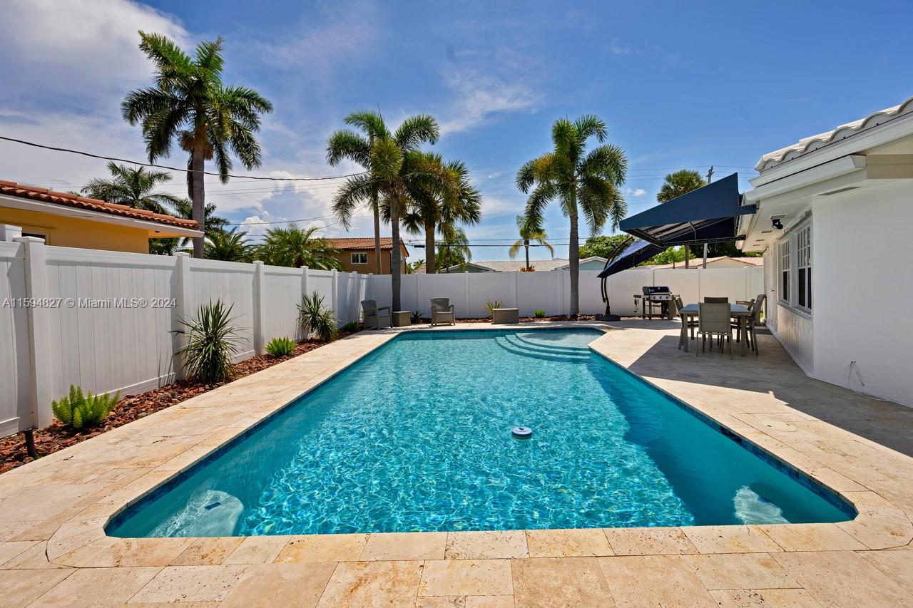 !!!House is a very busy Airbnb with over $93000 in Rent for 2023. Discover unparalleled elegance in this fully furnished, turnkey home nestled in the tranquil back of Garden Isles, east of the bridge road. Step into a beautiful custom kitchen featuring gray cabinets, Quartzite countertops, a spacious island, and ample storage. Your peace of mind is ensured with a whole-house generator, providing uninterrupted power. Sits on an oversized corner lot, enclosed by a white vinyl fence, showcasing an upgraded pool with a travertine deck, and control over outdoor lighting and speakers. Circular Old Chicago brick driveway offering plenty of parking. Surrounded by million-dollar waterfront homes, this residence is less than 1 mile from the newly improved Pompano Beach.