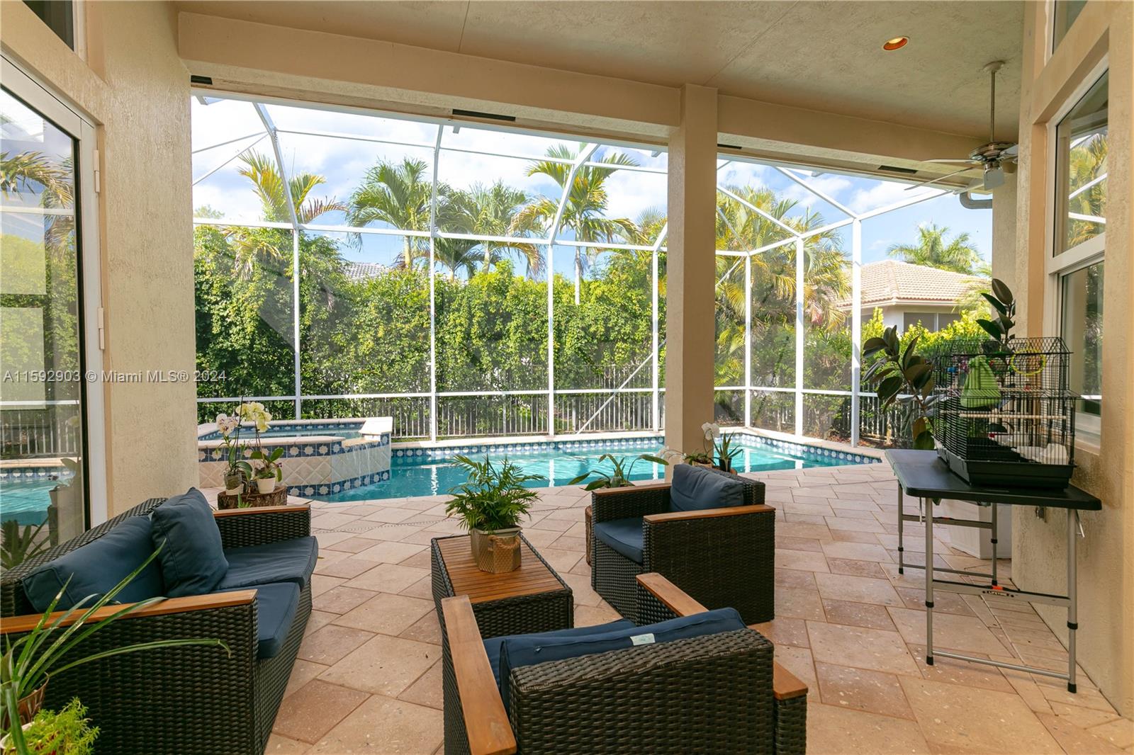 Spectacular Pool House located in a Cul de Sac, Ceiling Heights 13"-14", 4 Bedrooms Plus Room for Den/Office , 3.5 Bathrooms, Porcelain Floors, Carpets in the Bedrooms were installed in 2021. New Roof 2022, High Impact Windows, Appliances Stainless Steel, Granite Countertops, Freshly Painted, New Electrical outlets, Locks, water softener through the whole house, and more! Located in the prestigious community of Savanna, a lot of amenities, Clubhouse, Five Pools including a Waterslide, 9 Hole Mini-Golf Course, Roller Hockey Rink, Basketball, Multi-Purpose Soccer Field, 24 Hours security guards. Top-rated schools.