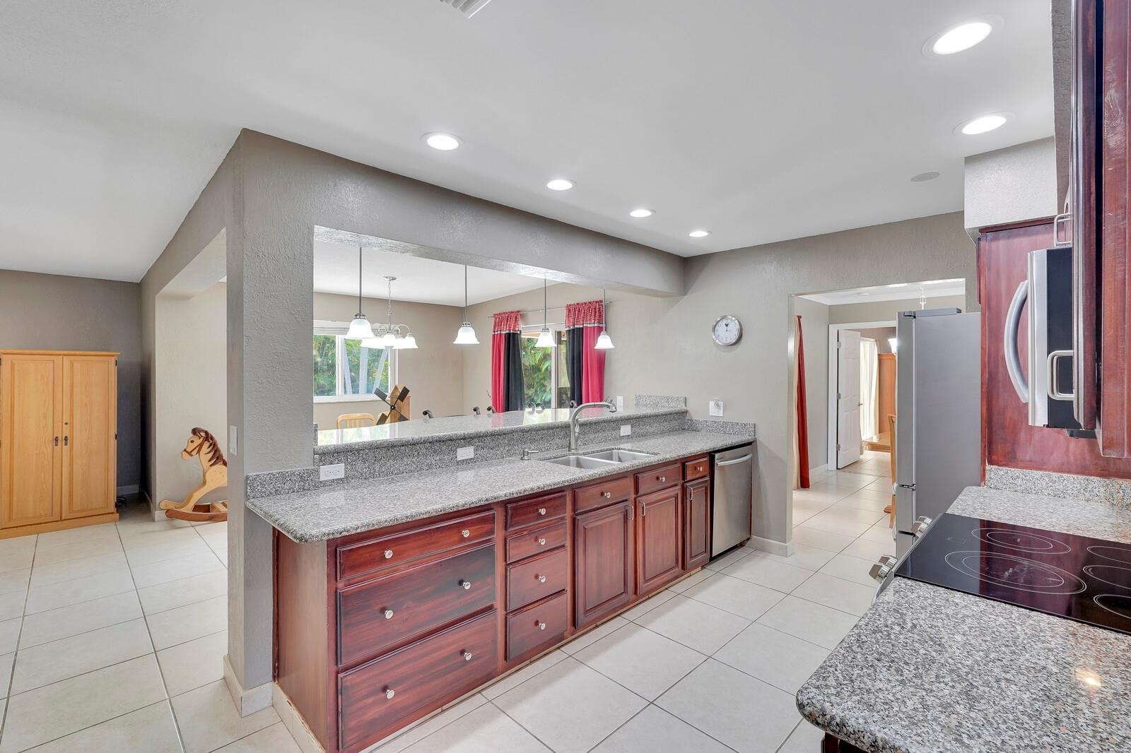 A stunning POOL home is nestled on a quiet cul-de-sac with no HOA. The home boasts a split floorplan with ceramic tile throughout. The layout includes TWO living spaces for versatility. The renovated kitchen has granite countertops, cherrywood cabinetry, SS appliances, & a large breakfast bar. The concrete cool deck wraps around an oversized pool, complemented by a brand-new pool pump (2024) & newer solar panel pool heating (2020). This home comes with numerous upgrades including hurricane impact windows, new exterior paint (2024), a tankless water heater (2018),& separate well water irrigation. *List of upgrades is available. Conveniently located near the Sawgrass Expressway, this property ensures an easy commute & access to top-notch schools, shopping, dining, & entertainment.