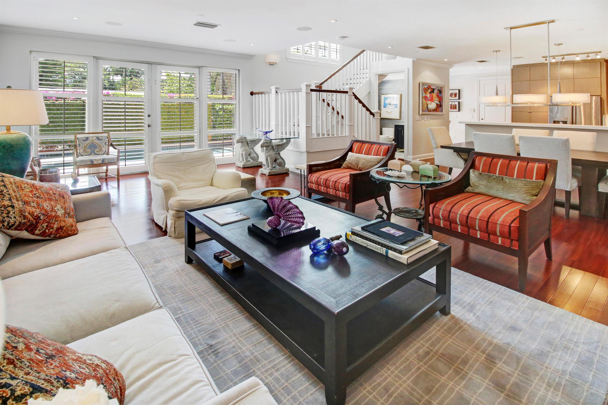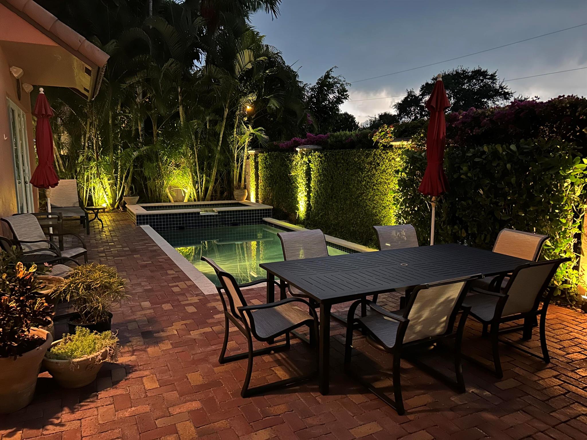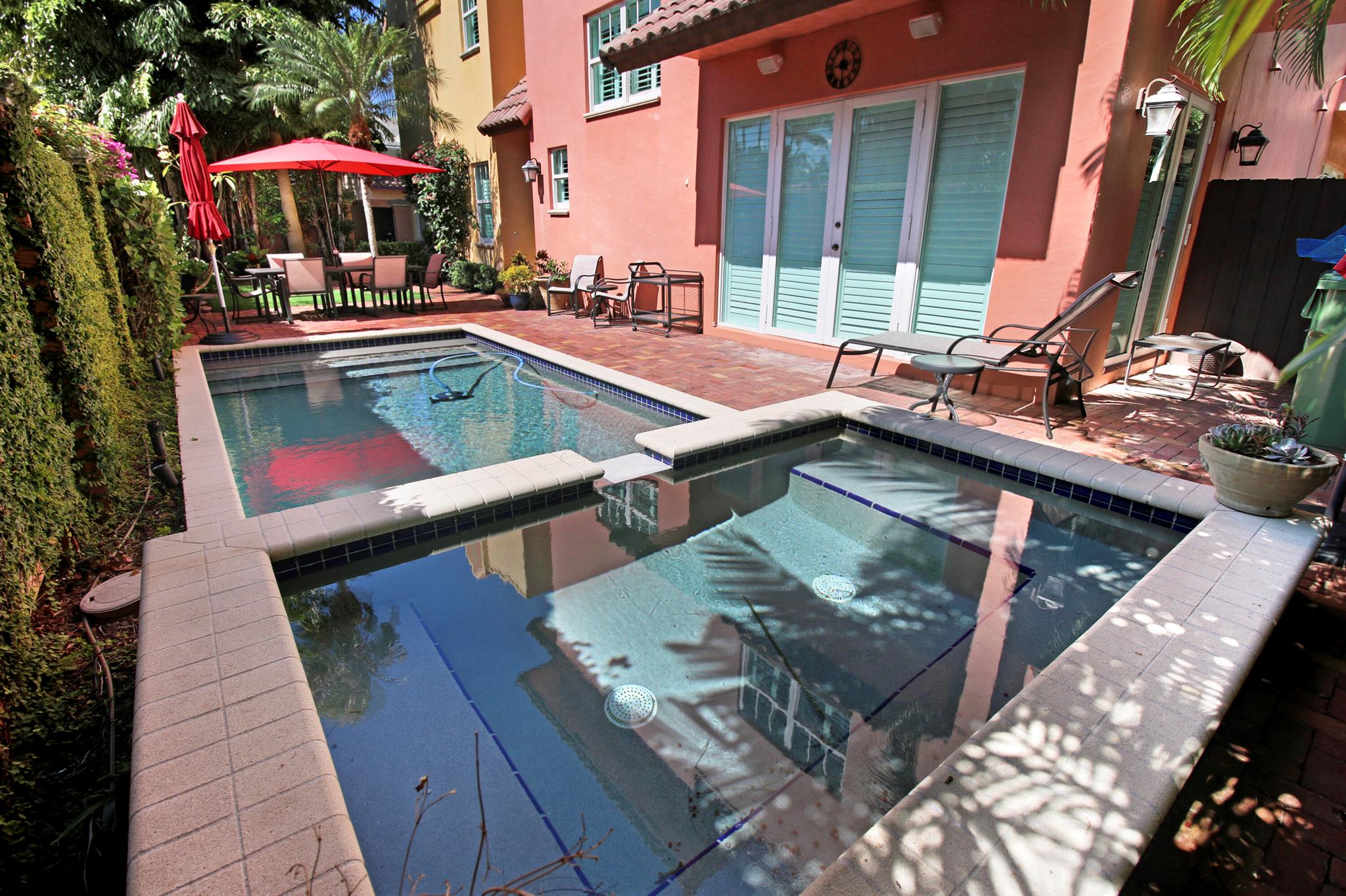 Luxury, updated townhome with extensive outdoor areas for entertaining. Gorgeous & private garden with salt water, heated pool and spa surrounded by lush landscaping. Head up to one of two large roof decks on the 3rd level for large scale entertaining. Bathrooms & kitchen updated with upscale finishes & fixtures. Enjoy a steam shower in your master bath.High ceilings throughout home with large windows & french doors flooding rooms with natural light. Hardwood floors throughout home and grand staircase. 30K worth of Hunter Douglas Shutters and California Closets. Whole house generator runs entire home, including A/C during power outage. Music system with in-ceiling speakers in every room and outdoors. Walk to Publix, Trader Joes, restaurants, and theater. Only 1.5 miles to beach! No HOA