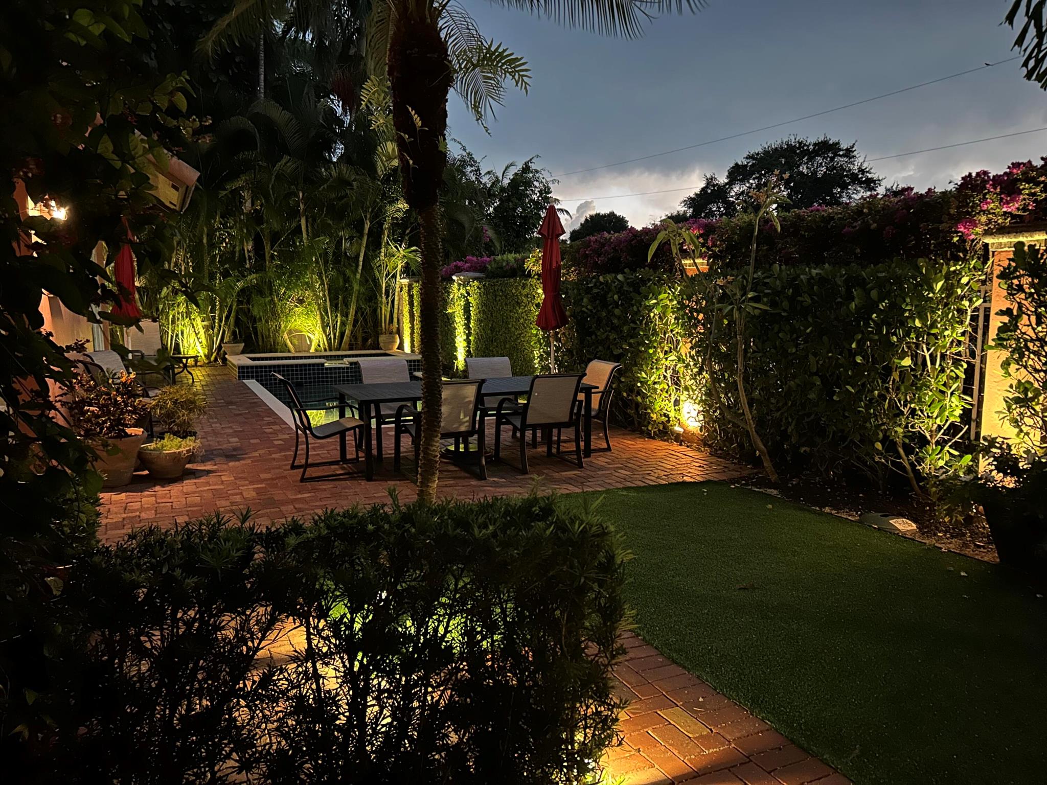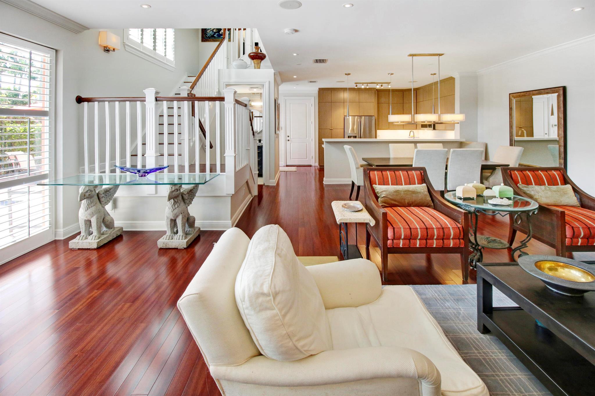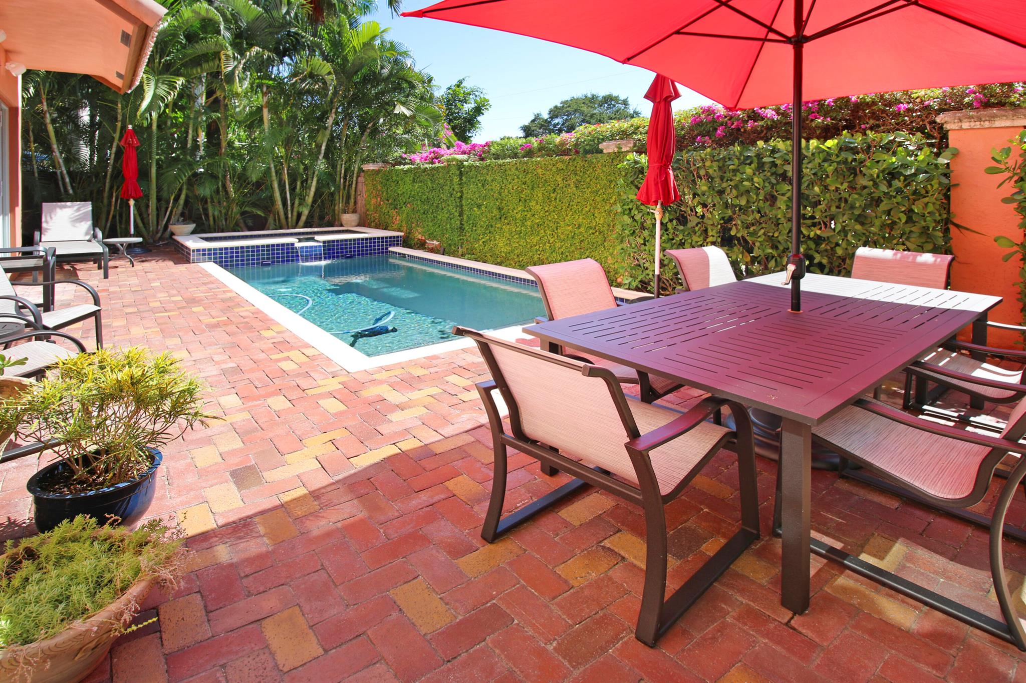 Luxury, updated townhome with extensive outdoor areas for entertaining. Gorgeous & private garden with salt water, heated pool and spa surrounded by lush landscaping. Head up to one of two large roof decks on the 3rd level for large scale entertaining. Bathrooms & kitchen updated with upscale finishes & fixtures. Enjoy a steam shower in your master bath.High ceilings throughout home with large windows & french doors flooding rooms with natural light. Hardwood floors throughout home and grand staircase. 30K worth of Hunter Douglas Shutters and California Closets. Whole house generator runs entire home, including A/C during power outage. Music system with in-ceiling speakers in every room and outdoors. Walk to Publix, Trader Joes, restaurants, and theater. Only 1.5 miles to beach! No HOA