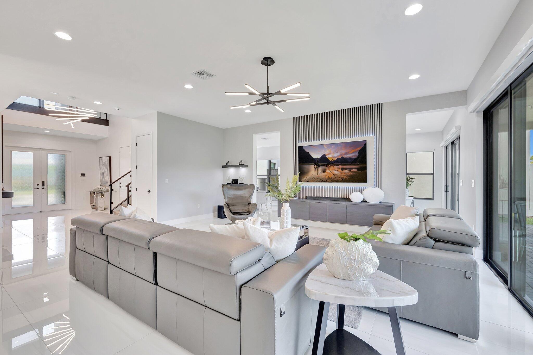 DISCOVER THIS STUNNING MALDIVES MODEL AT AN UNBEATEABLE PRICE! Set on an oversized lot, this 5,315 sq. ft. home offers complete privacy with panoramic water views, perfect for creating your own private oasis. Featuring the largest floor plan in the community, it boasts 5 ensuite bedrooms (including one on the main floor) and 2 half baths with premium contemporary finishes.The gourmet chef's kitchen is equipped with high-end appliances and an oversized island, ideal for entertaining. The elegant main floor includes a spacious family room, game room, den, and dining areas. An exquisite glass stair rail adds a touch of sophistication as you make your way upstairs, where you'll find a grand loft, media room, and a luxurious primary suite with a private balcony.