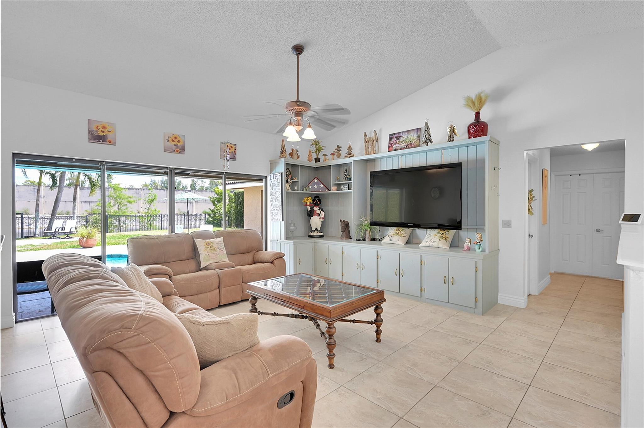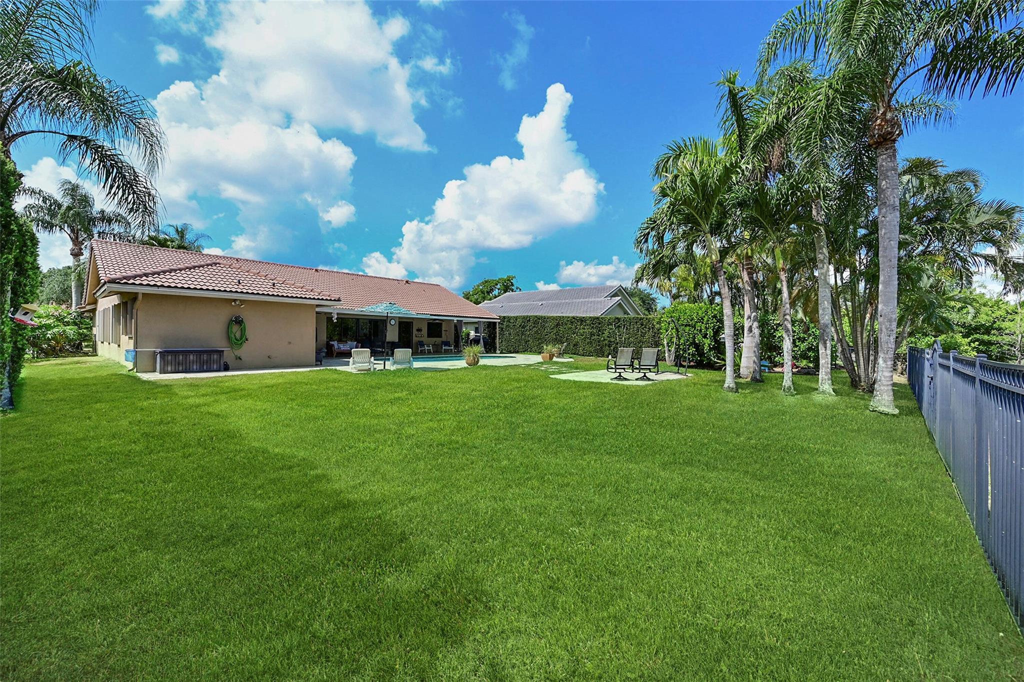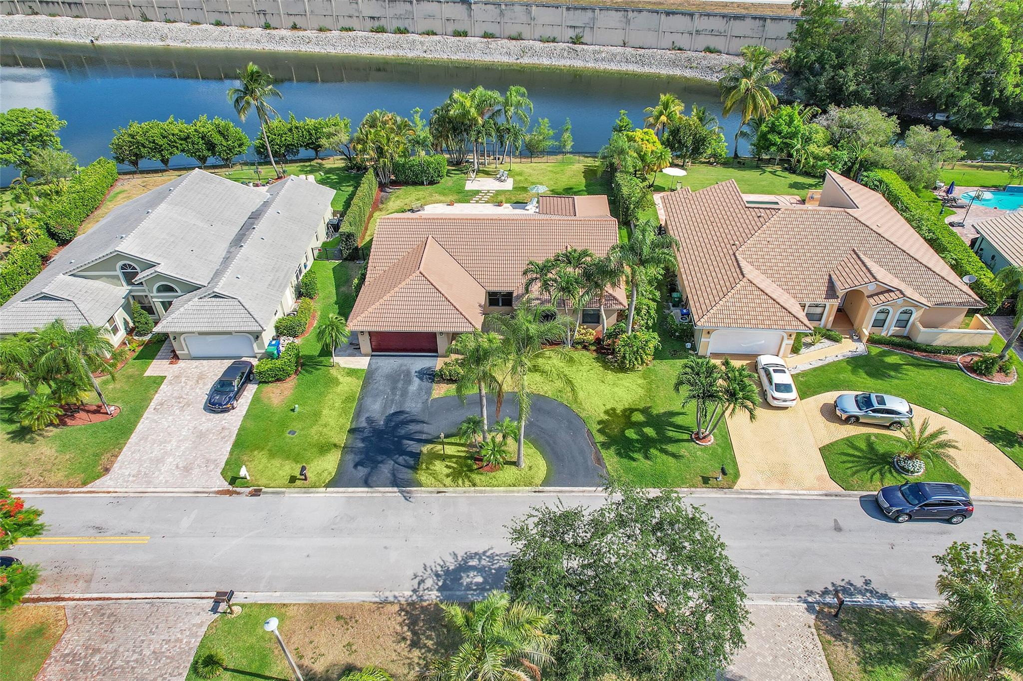 Pride of ownership shows in this Pine Ridge waterfront & pool home with an entertainers backyard on 1/4 acre. 2200 square feet under air with an open layout with kitchen, dining, living room all flowing together and 4 good sized bedrooms on the other side of the house. Second (cabana) bath leads to the patio deck with covered overhang, ample grass space and fire pit. A/C and water heater 10 years old, kitchen appliances 3 years old and washer/dryer 5 years old. A mixture of impact windows, hurricane panels and accordions for full hurricane protection. Come see this house today, low HOA is a plus! Great location- close to restaurants and shopping, Sawgrass Expressway, Coral Park Elementary, Betti Stradling Park and Jaycee Park!