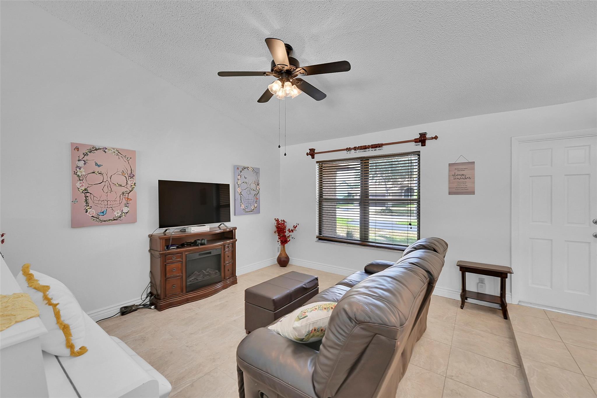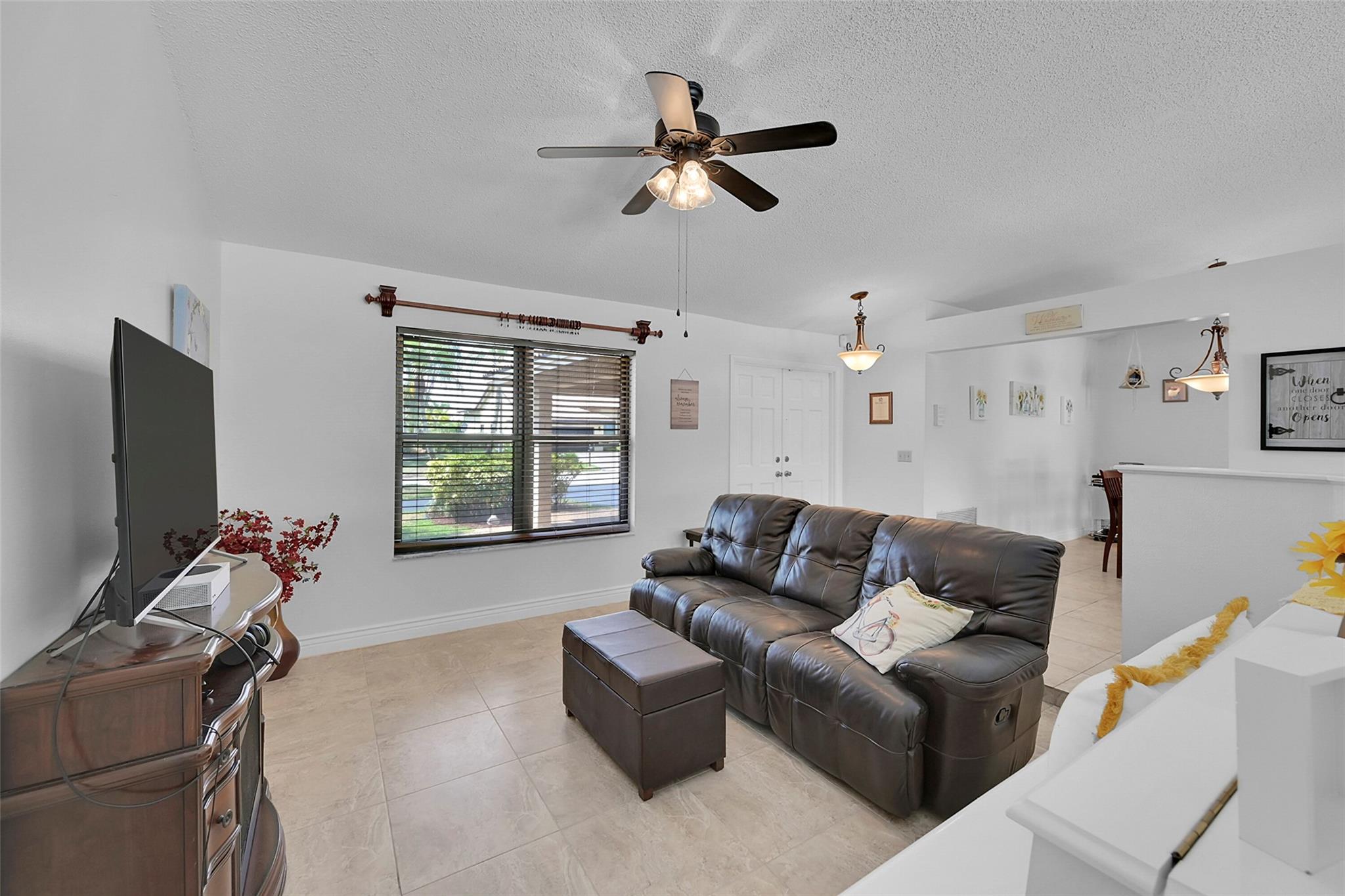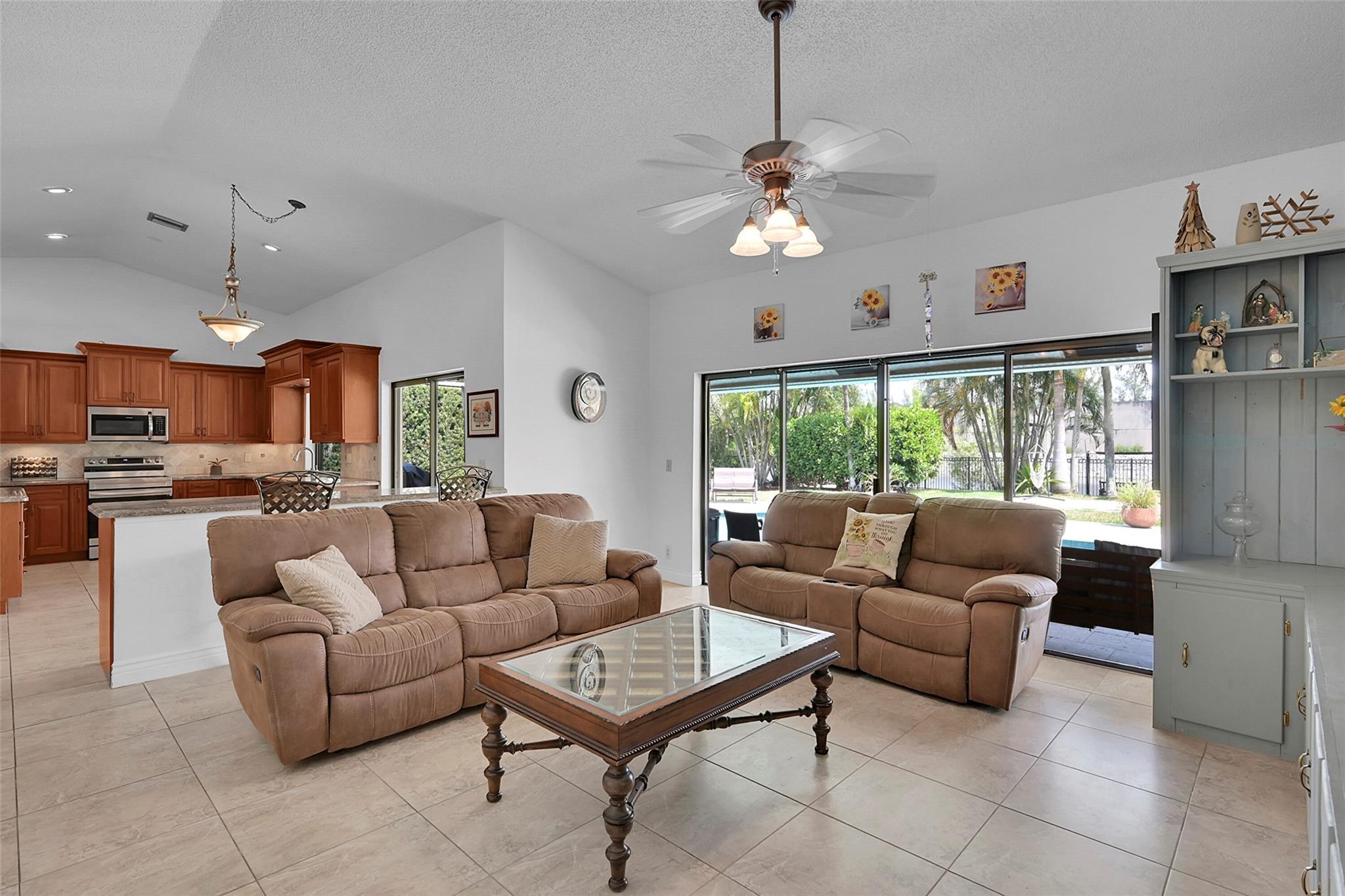 Pride of ownership shows in this Pine Ridge waterfront & pool home with an entertainers backyard on 1/4 acre. 2200 square feet under air with an open layout with kitchen, dining, living room all flowing together and 4 good sized bedrooms on the other side of the house. Second (cabana) bath leads to the patio deck with covered overhang, ample grass space and fire pit. A/C and water heater 10 years old, kitchen appliances 3 years old and washer/dryer 5 years old. A mixture of impact windows, hurricane panels and accordions for full hurricane protection. Come see this house today, low HOA is a plus! Great location- close to restaurants and shopping, Sawgrass Expressway, Coral Park Elementary, Betti Stradling Park and Jaycee Park!