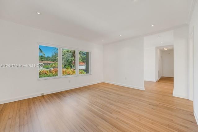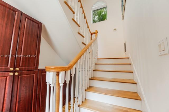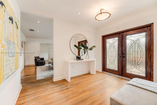 In the heart of Coral Gables, along the renowned Blue Rd, just one block from the exclusive Santa Maria Street, this unique U-shaped, 3,400 sqft home is move in ready. Light-filled with beautifully refinished white oak wood floors the house features unusual high ceilings, ample storage, professional kitchen with gas stove, impact windows and doors. Additional highlights include a new generator, copper and PVC piping, a hurricane-rated roof, and a heated pool and spa. The house offers 4 bedrooms downstairs and a master suite upstairs. Non-flood location.