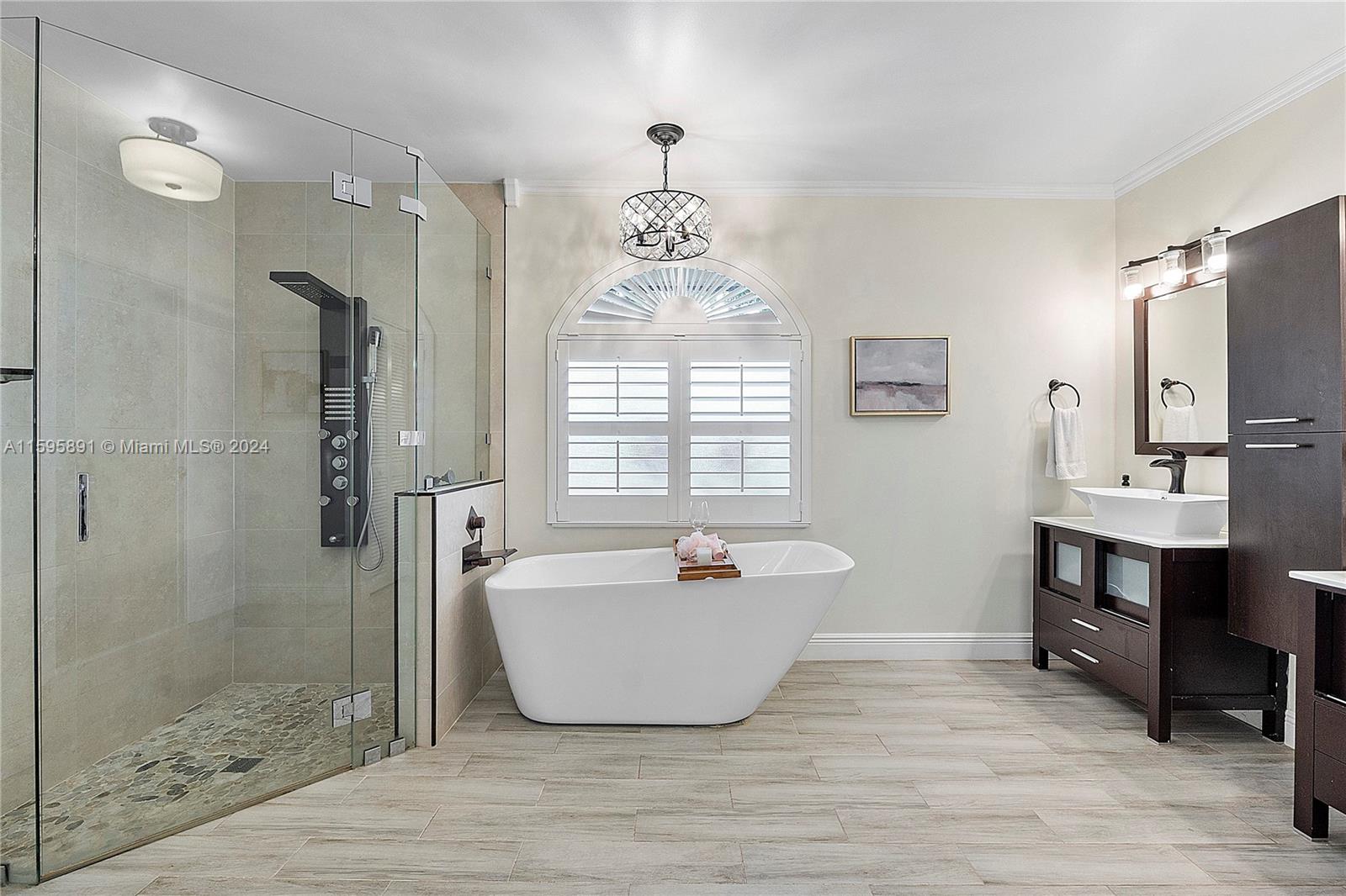 4/3/2 Car Garage With 24Hr Manned Security Gate In Carriage Pt Estates In Coral Springs. Large Formal Living + Dining Combination W/ Vaulted Ceilings. Crown Molding, LED Recessed Lighting, High End Wood Laminate Flooring Throughout & Tile In The Bathrooms. Updated Kitchen W/ Maplewood Cabinetry W/ Soft Close Drawers, Granite Countertops, Nook, SS Appliances - 2024 Refrigerator & Microwave. Large Primary Bedroom W/ Dual Walk-In Closets & Vaulted Ceilings. En-Suite Bathroom W/ Frameless Glass Shower & Soaker Tub. All Secondary Bedrooms W/ Lots Of Natural Light. All Bathrooms Updated. Brand New A/C 2024. 2024 Electrolux Washer. Zebra Blinds & Curtains All Windows. Screened Patio W/ Hot Tub. Fully Hurricane Protected. Professionally Installed Exterior Lighting. Barrel Title Reroofed 2009.