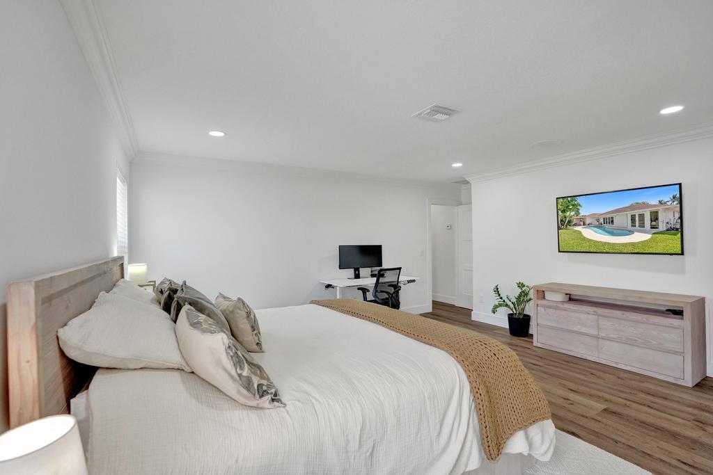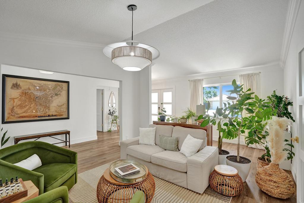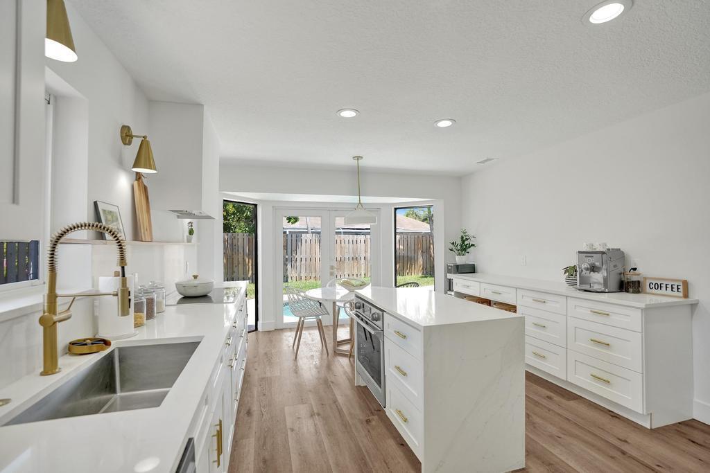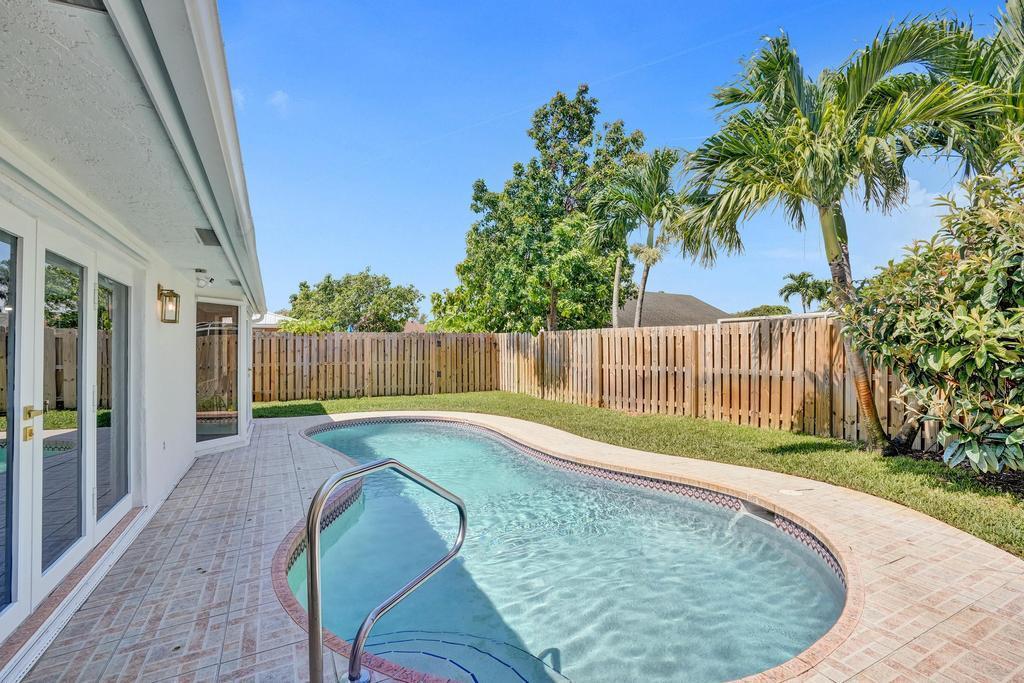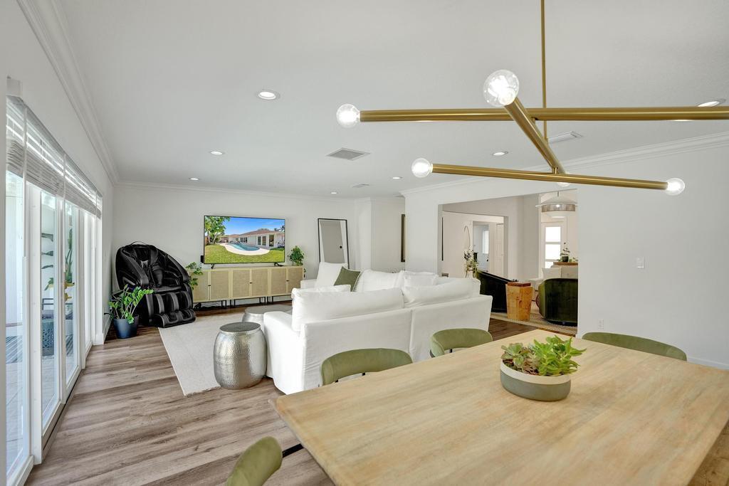 Welcome to this superbly kept 3-bedroom, 2-bathroom pool home. This beautiful residence features new flooring and light fixtures with spacious bedrooms that ensure comfort and style. The den/office/4th bedroom is an amazing flex space. The formal living and dining rooms offer an elegant setting for entertaining, while the family room provides a cozy space for relaxation. The recently improved kitchen is perfect for culinary enthusiasts, and the crown molding adds a touch of sophistication. Step outside to the covered porch with a bar area, ideal for outdoor gatherings, and enjoy the secluded, fenced yard for ultimate privacy. The home also has partial impact windows plus shutters for added security and peace of mind. Don't miss the opportunity to make this stunning pool home yours