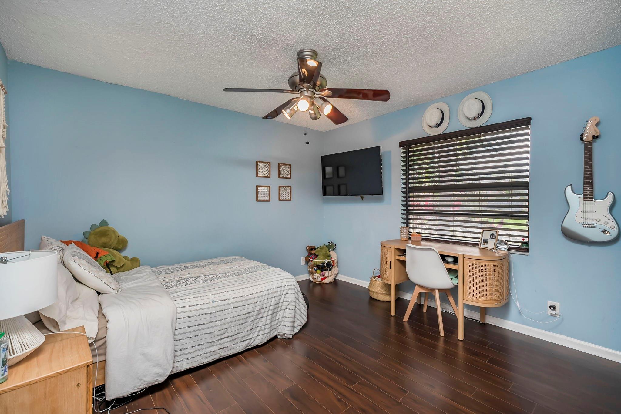 Single-story 4-bedroom home with a pool, situated on a spacious fenced interior lot in the highly desirable Cypress Glen neighborhood. NO HOA. Soaring high ceilings contribute to the airy and welcoming atmosphere of the open floor plan. Enjoy newer wood-like flooring throughout the living room, dining room, and bedrooms. The kitchen is a chef's dream, boasting expansive granite counters, wood cabinets, SS appliances, and ample storage space and separate laundry room. Outside, the private backyard oasis is ideal for entertaining, featuring an open pool, patio, and privacy hedge! Enjoy the convenience for its proximity to excellent shopping, parks & easy access to highways. ROOF 2005 in great condition. ACCORDION SHUTTERS.