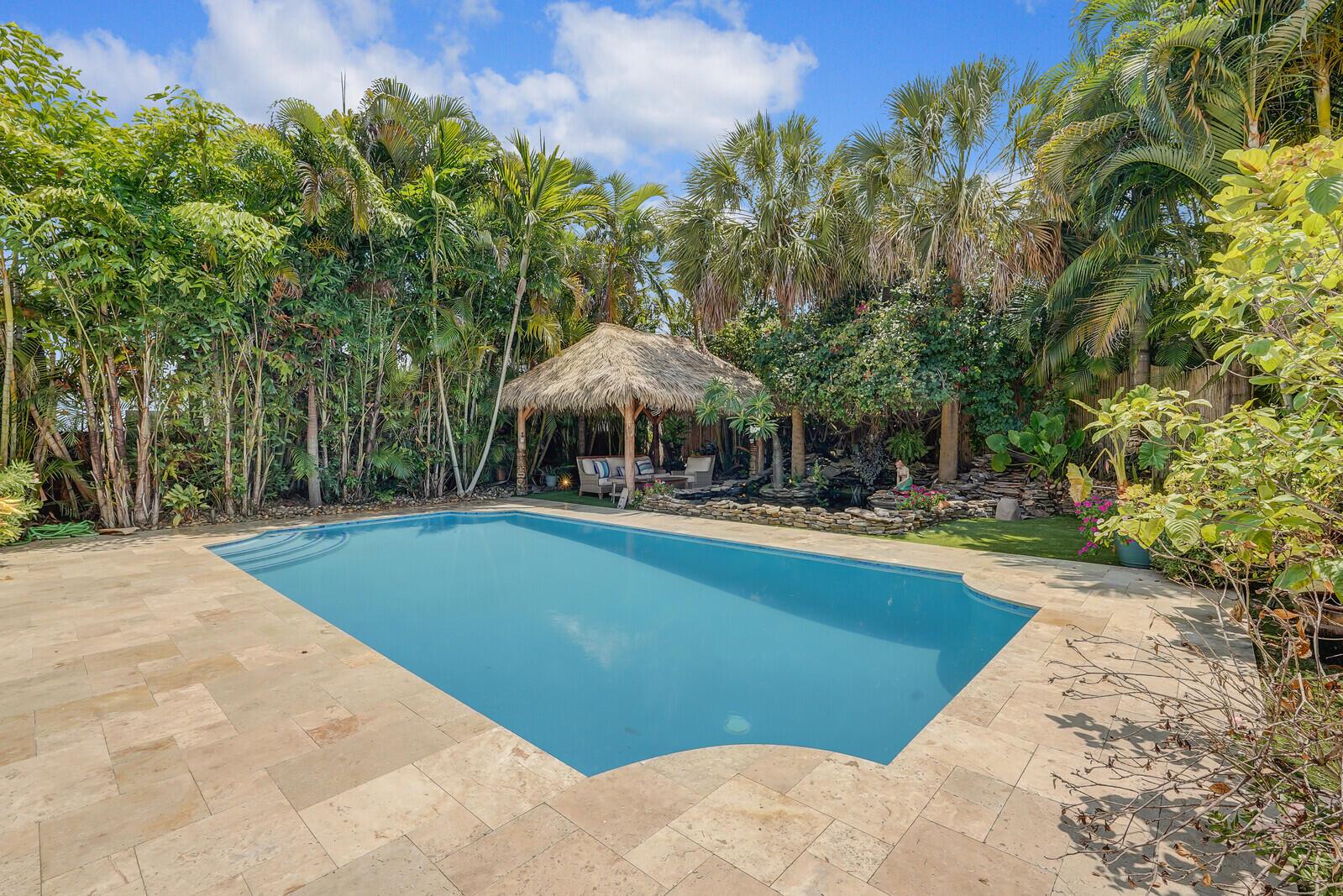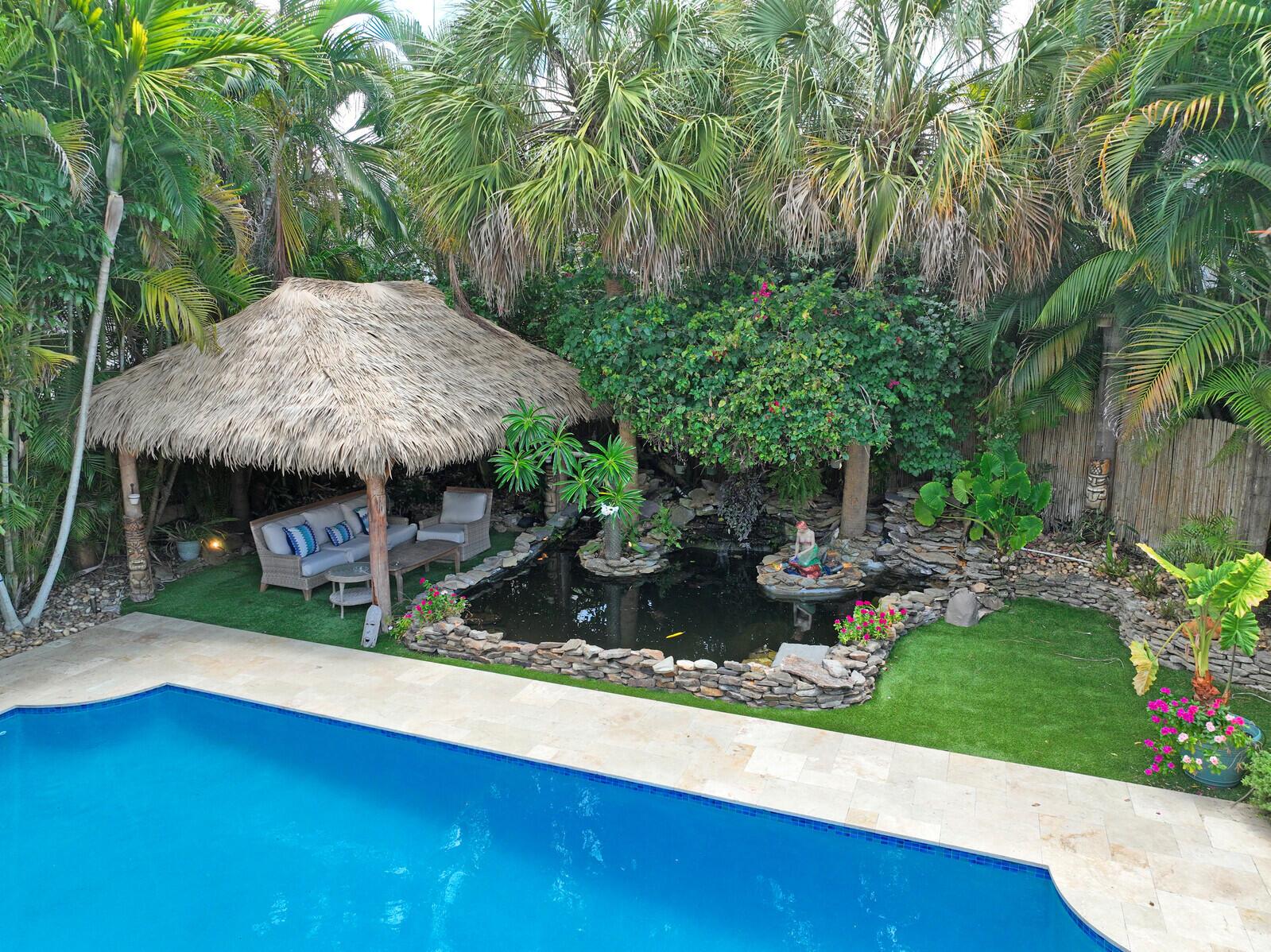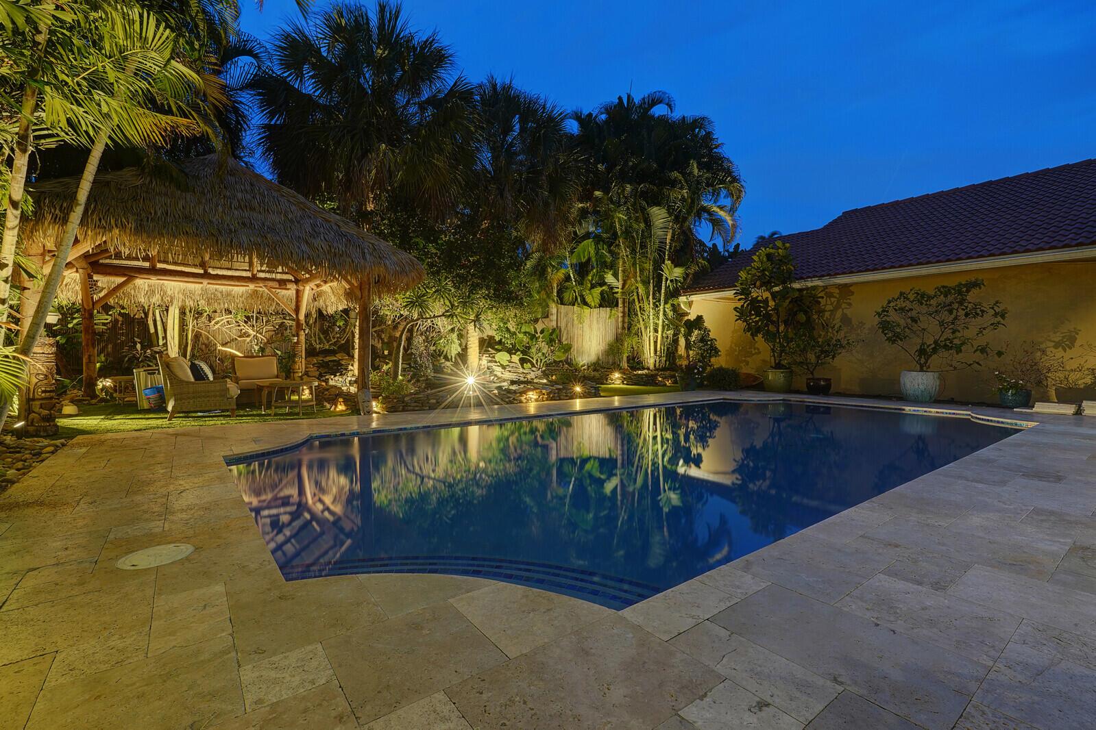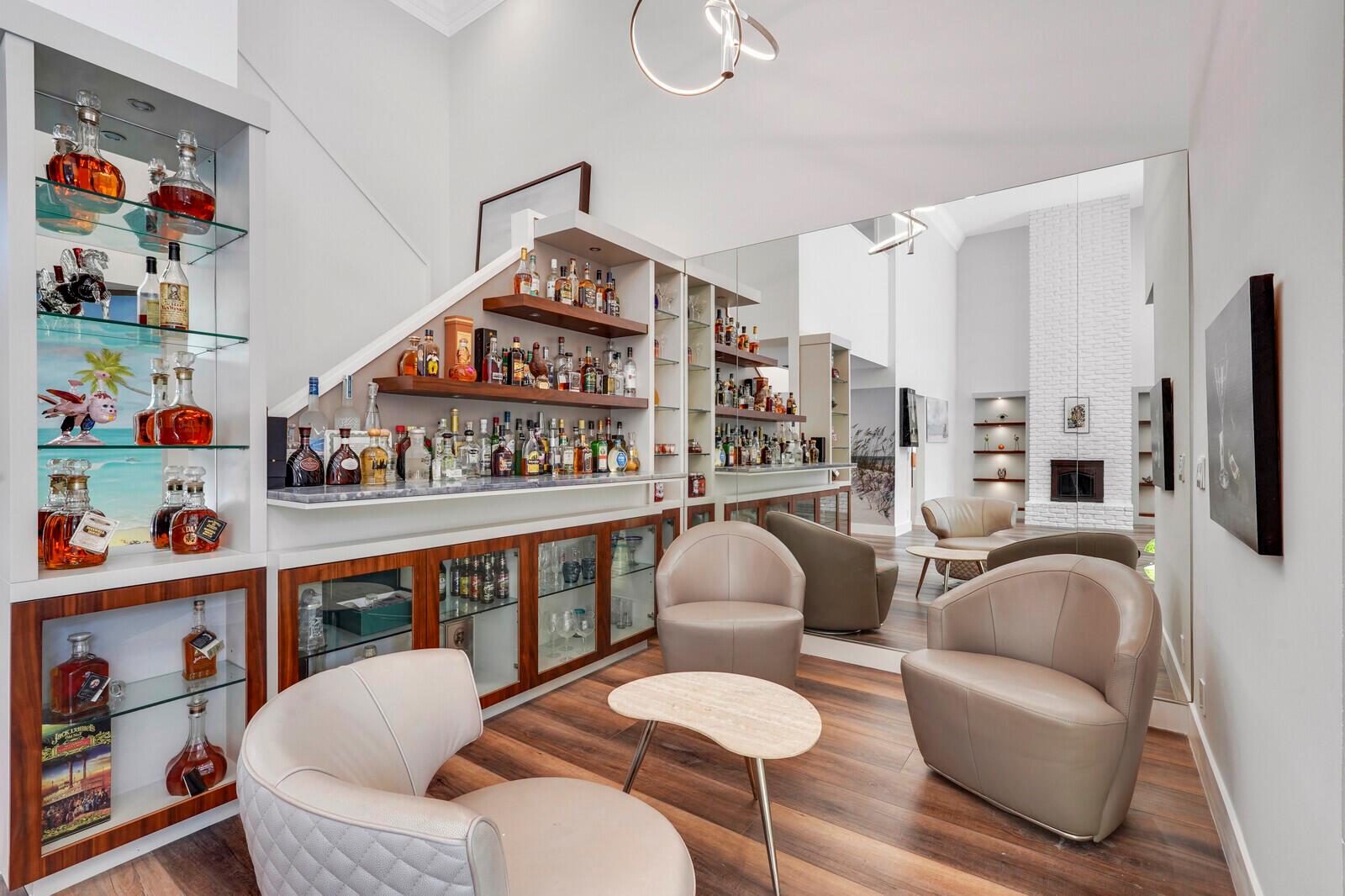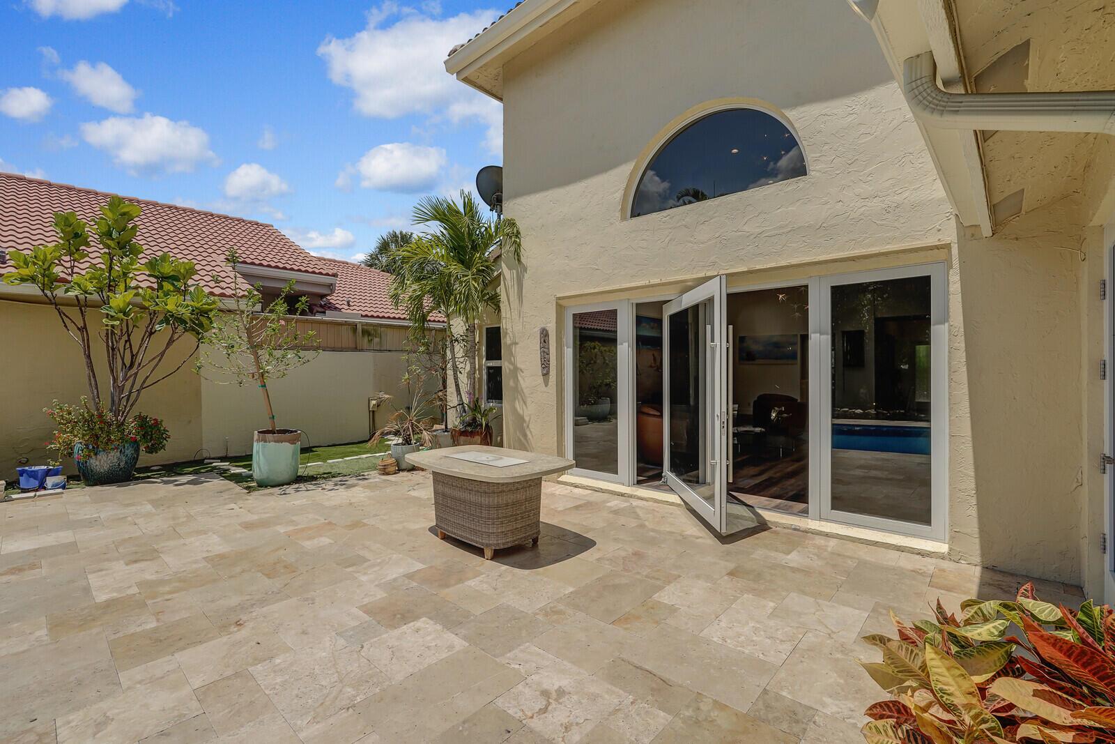 WATCH THE NARRATED VIDEO! Welcome home to the ideal blend of comfort and elegance! Nestled in a tranquil, private cul-de-sac in desirable West Boca Raton, this stunning 4-bedroom, 2.5-bathroom house offers 2573 square feet of beautifully renovated living space, designed to cater to refined tastes and practical needs. Step inside to be greeted by soaring 20-ft ceilings, an inviting dining room complete with a charming brick fireplace, a separate bar/lounge, and spacious living room. Primary suite is conveniently located on the main floor. The interior showcases custom lighting and unique artwork, setting a striking backdrop for everyday living. Luxuriate in the chef's kitchen, equipped with marble countertops, and explore the spacious bonus room perfect for a home office, wine room, study