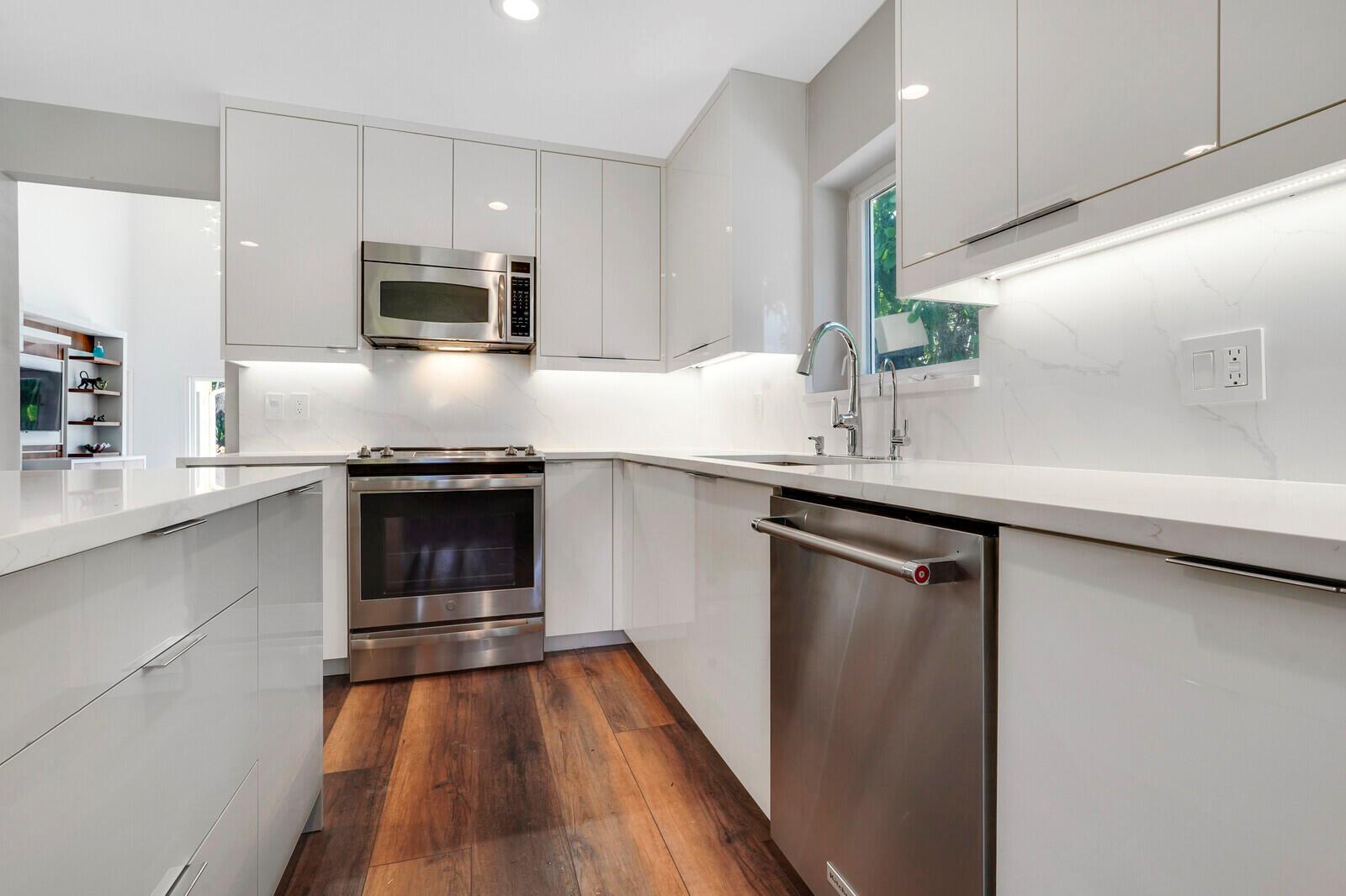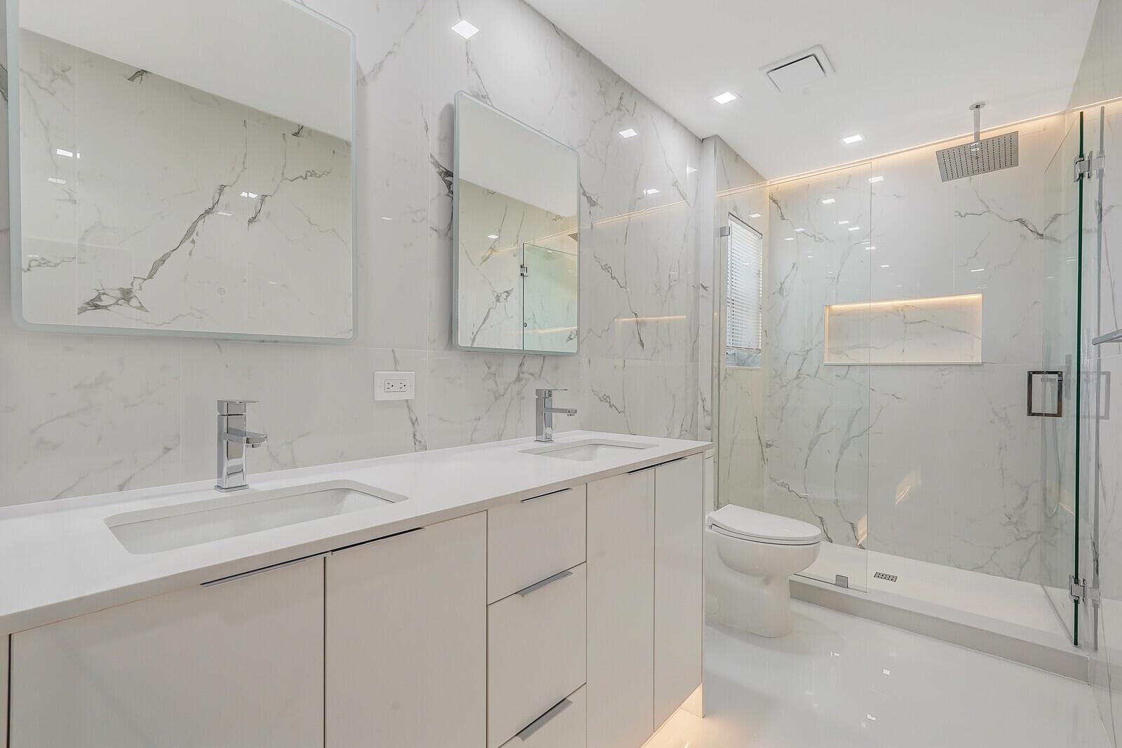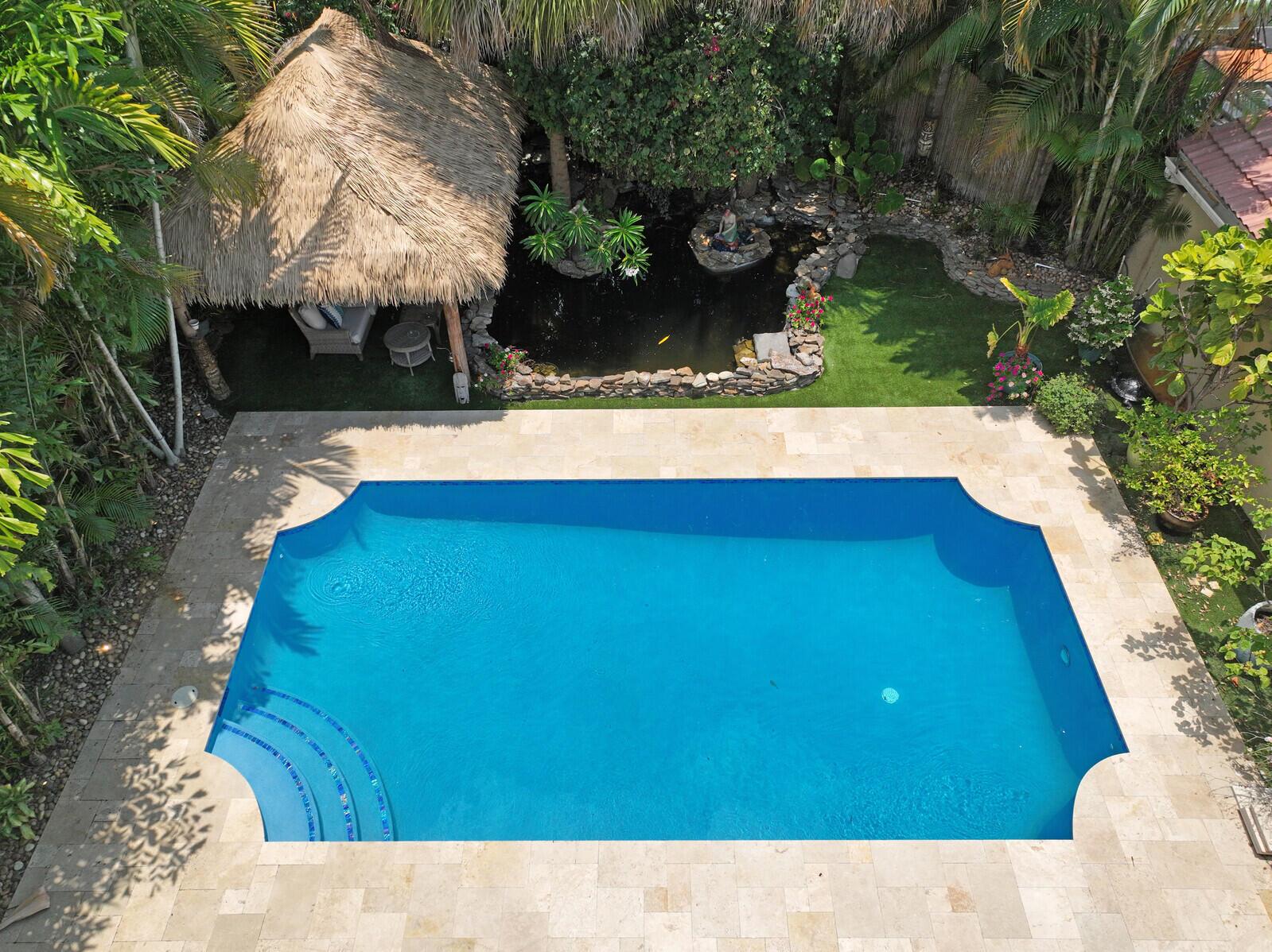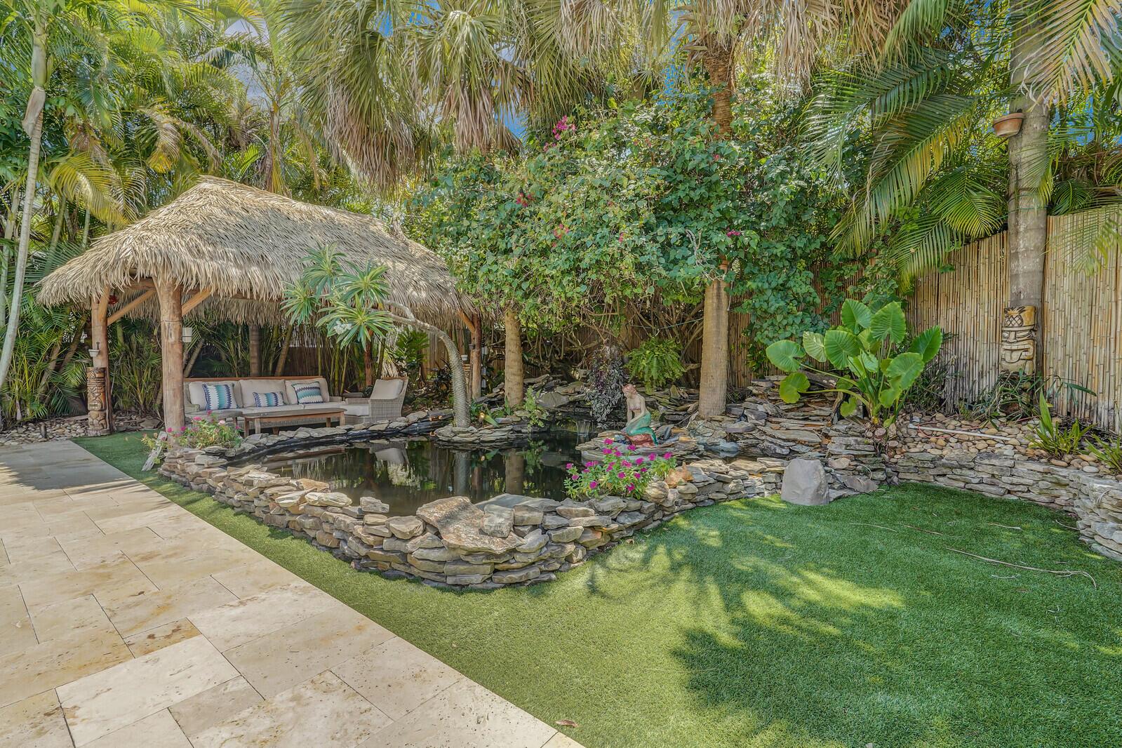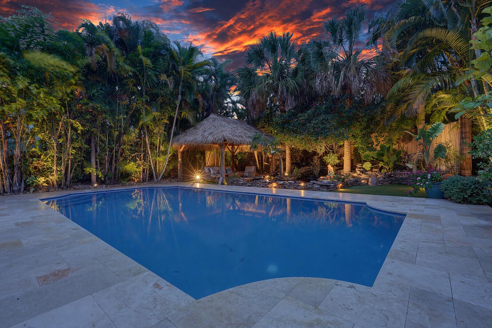 WATCH THE NARRATED VIDEO! Welcome home to the ideal blend of comfort and elegance! Nestled in a tranquil, private cul-de-sac in desirable West Boca Raton, this stunning 4-bedroom, 2.5-bathroom house offers 2573 square feet of beautifully renovated living space, designed to cater to refined tastes and practical needs. Step inside to be greeted by soaring 20-ft ceilings, an inviting dining room complete with a charming brick fireplace, a separate bar/lounge, and spacious living room. Primary suite is conveniently located on the main floor. The interior showcases custom lighting and unique artwork, setting a striking backdrop for everyday living. Luxuriate in the chef's kitchen, equipped with marble countertops, and explore the spacious bonus room perfect for a home office, wine room, study