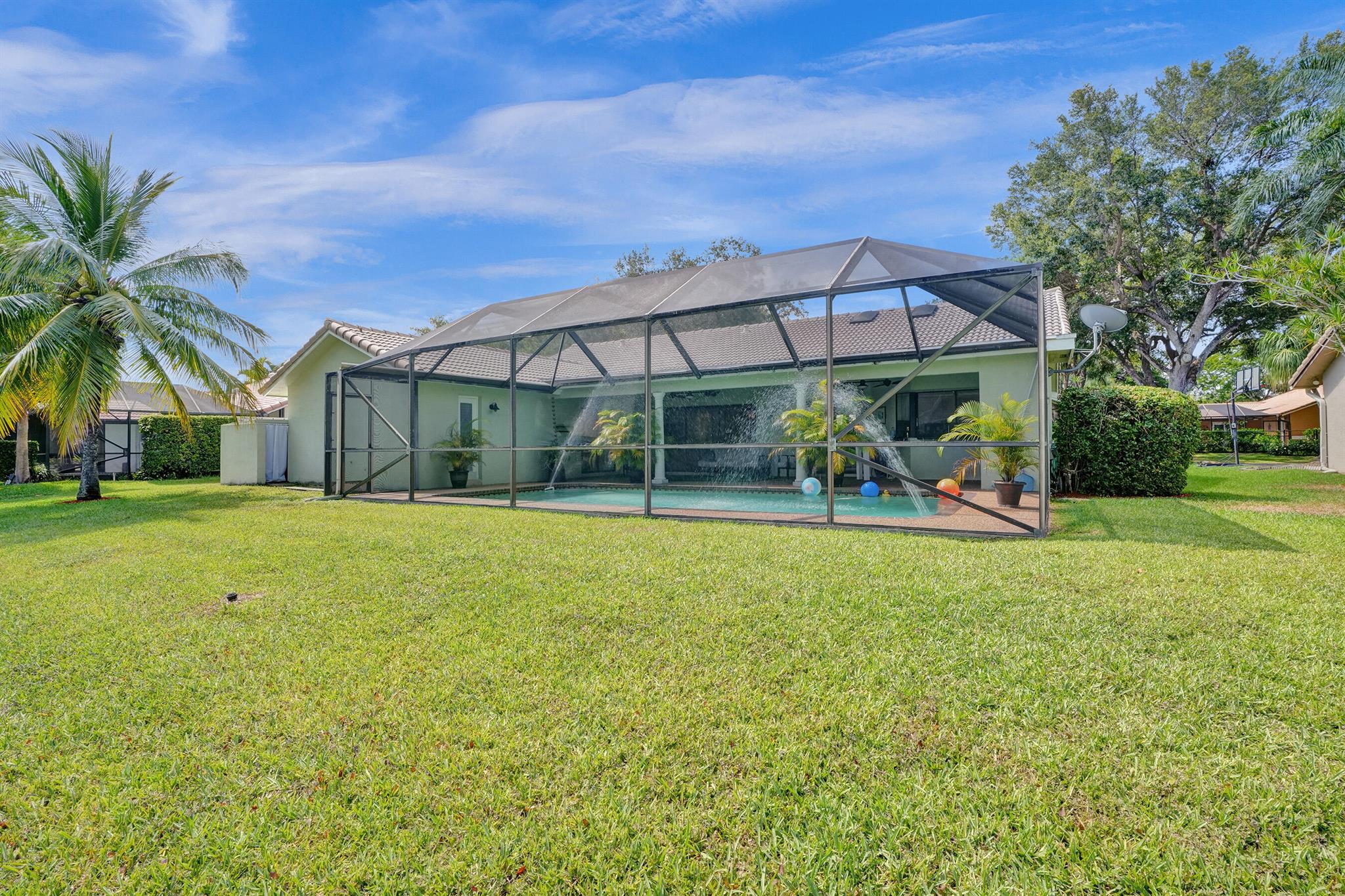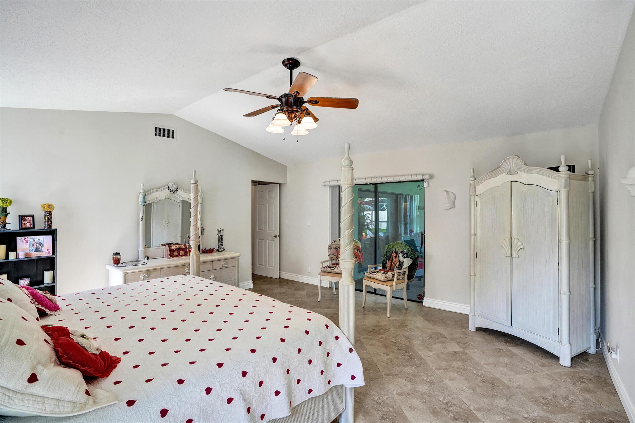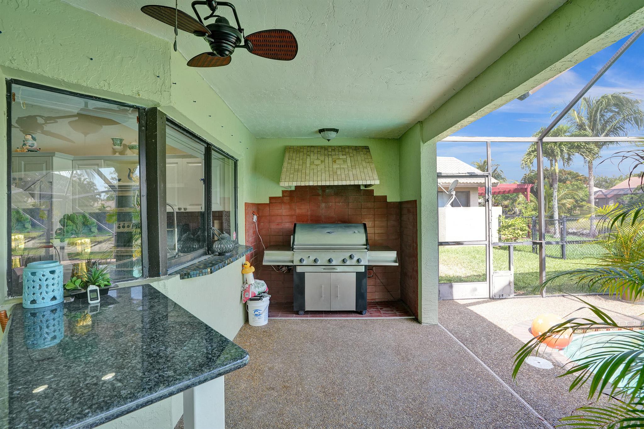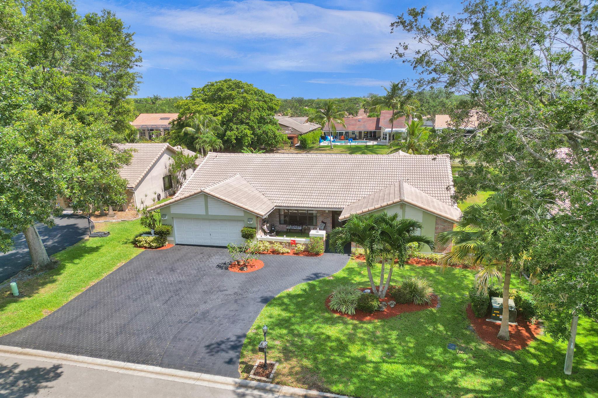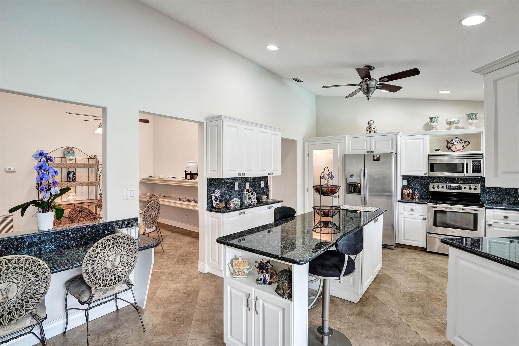 Impeccably maintained 4-bed, 2.5-bath pool home in the sought-after Pine Ridge neighborhood. This home boasts a bright, open-concept floor plan with vaulted ceilings and 24'' porcelain tile throughout. The updated kitchen features an island, granite counters, and stainless steel appliances, offering ample storage and a perfect view of the pool and expansive screened lanai, overlooking a tropical water-view backyard. Additional highlights include hurricane shutters, remodeled bathrooms with dual sinks, walk-in closets, a laundry room, and an oversized expanded driveway. With a 2006 barrel roof, 7-year-old A/C, new water heater and a recent 4-point inspection, this home is move-in ready. Schedule a tour today--this one won't last!