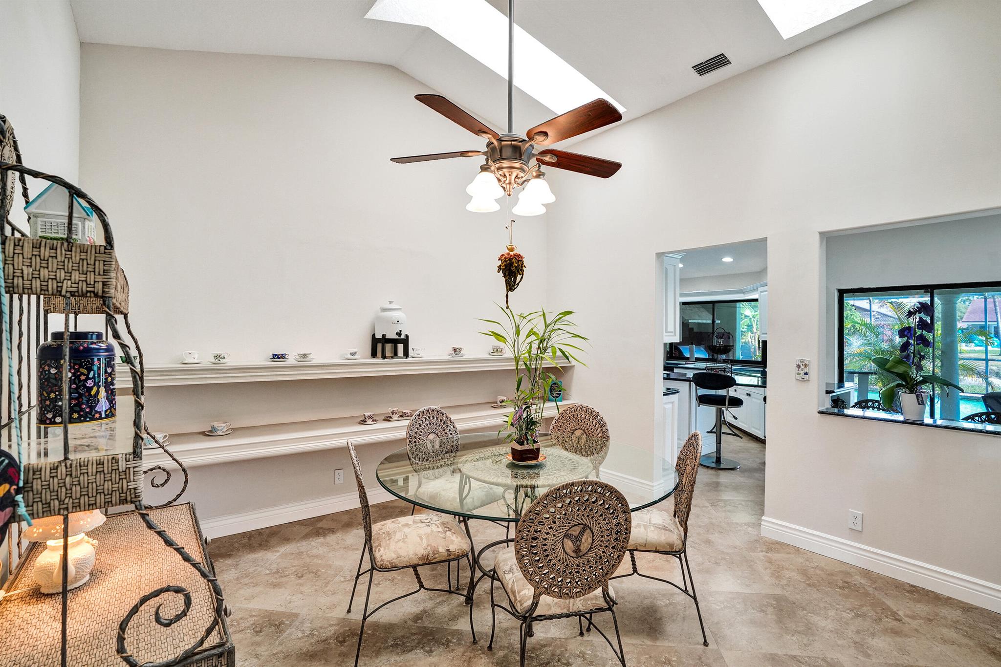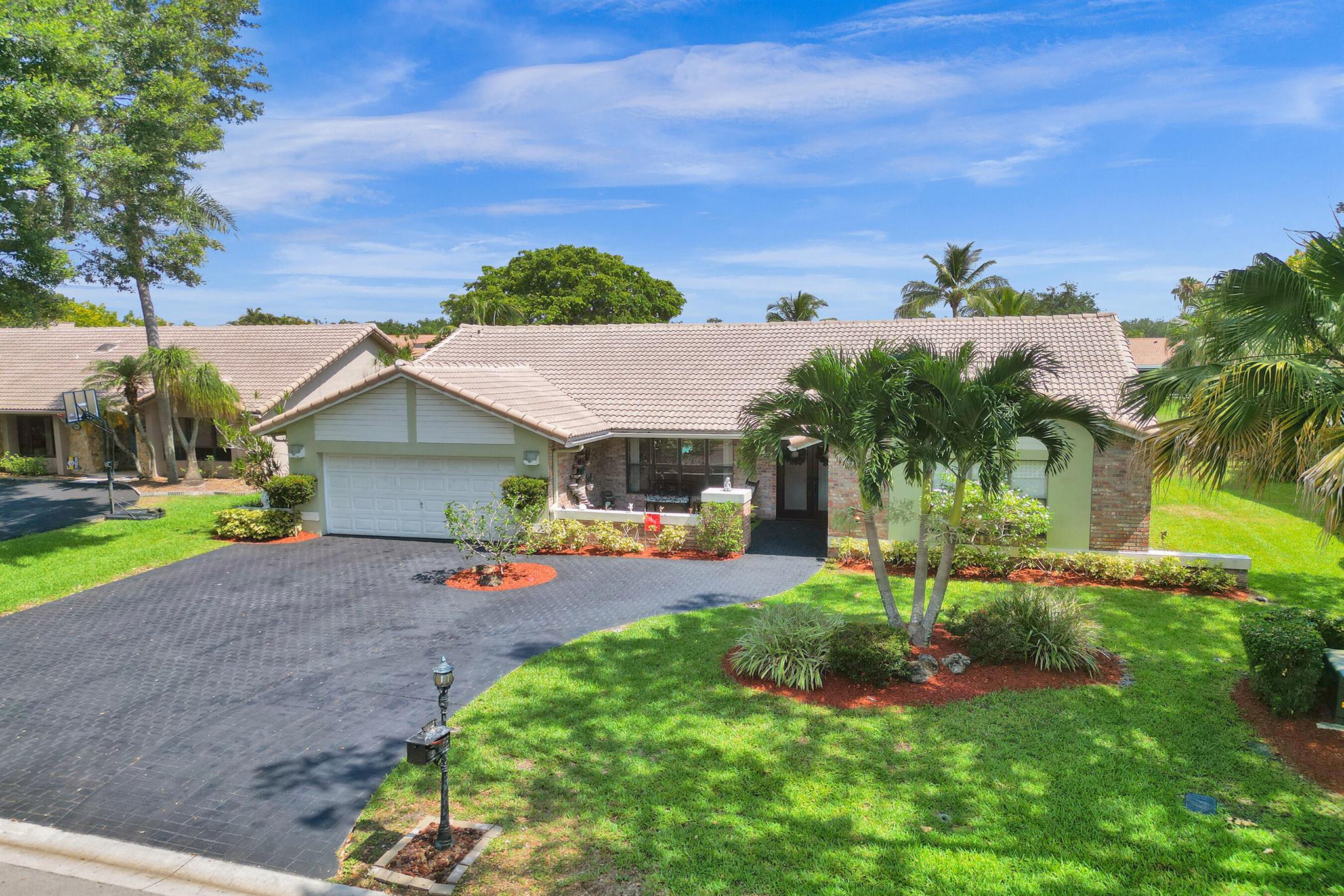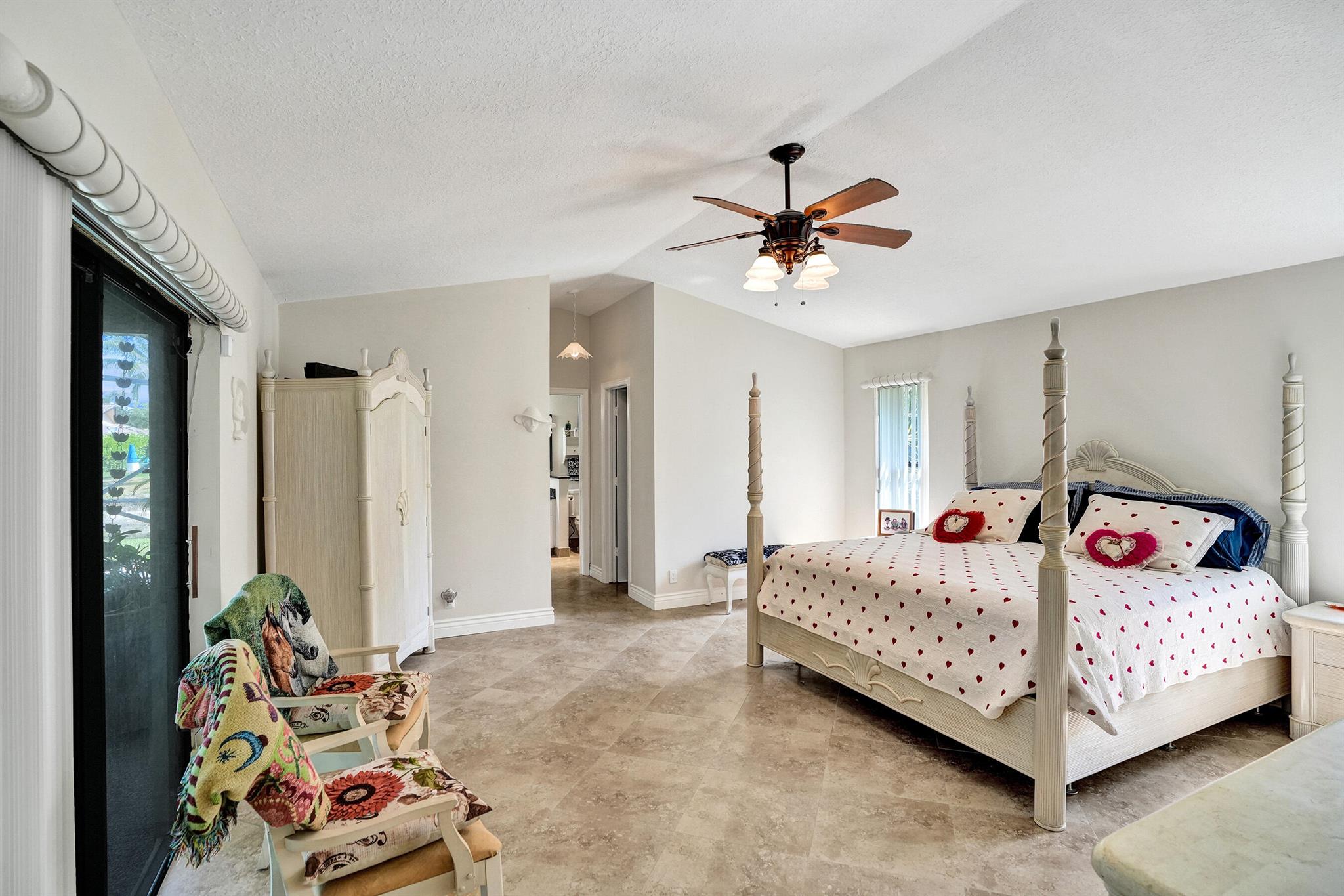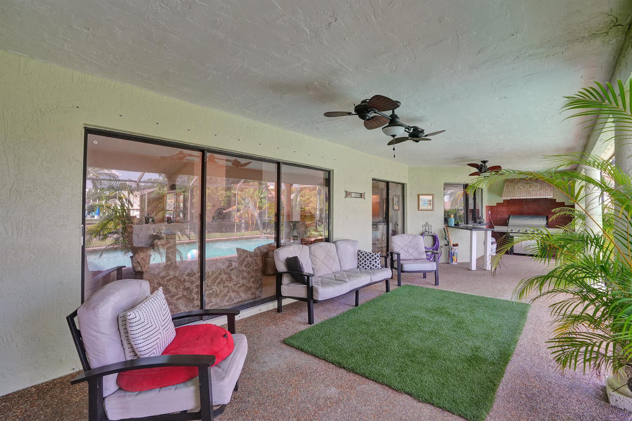 Impeccably maintained 4-bed, 2.5-bath pool home in the sought-after Pine Ridge neighborhood. This home boasts a bright, open-concept floor plan with vaulted ceilings and 24'' porcelain tile throughout. The updated kitchen features an island, granite counters, and stainless steel appliances, offering ample storage and a perfect view of the pool and expansive screened lanai, overlooking a tropical water-view backyard. Additional highlights include hurricane shutters, remodeled bathrooms with dual sinks, walk-in closets, a laundry room, and an oversized expanded driveway. With a 2006 barrel roof, 7-year-old A/C, new water heater and a recent 4-point inspection, this home is move-in ready. Schedule a tour today--this one won't last!