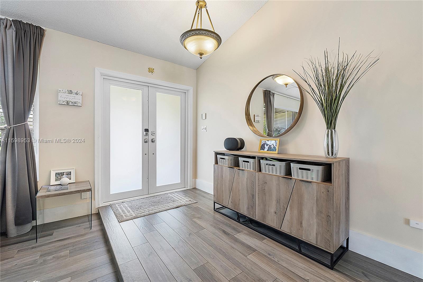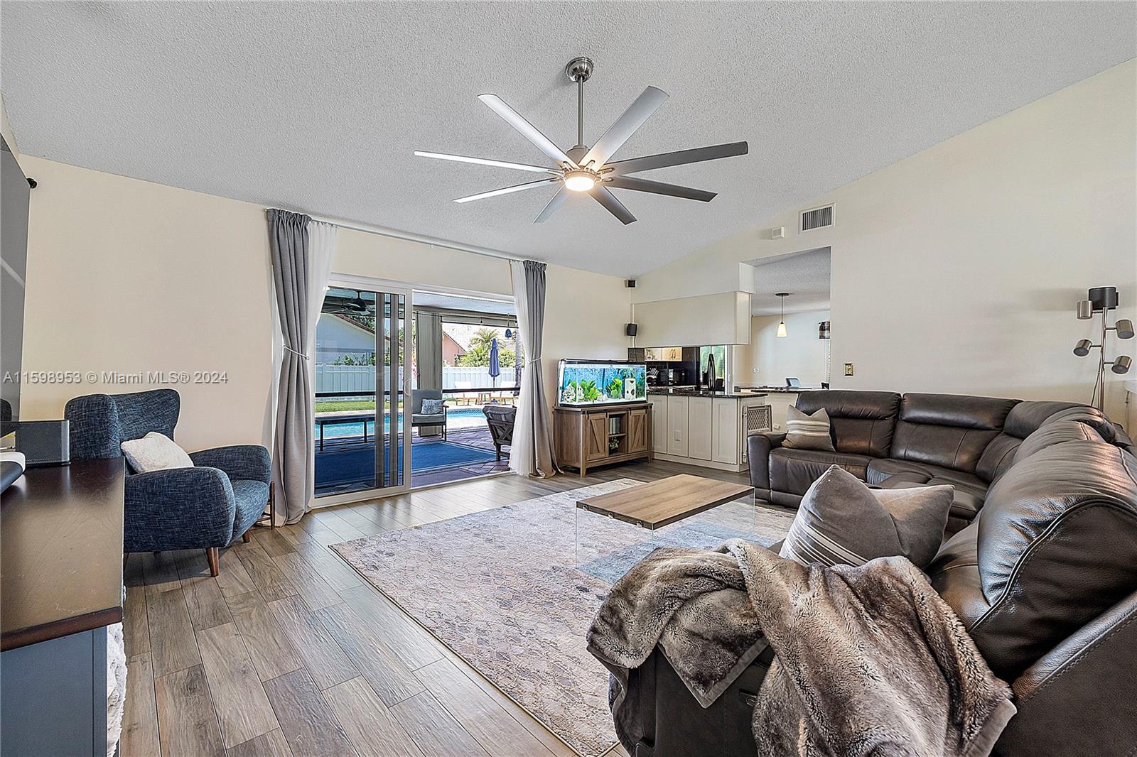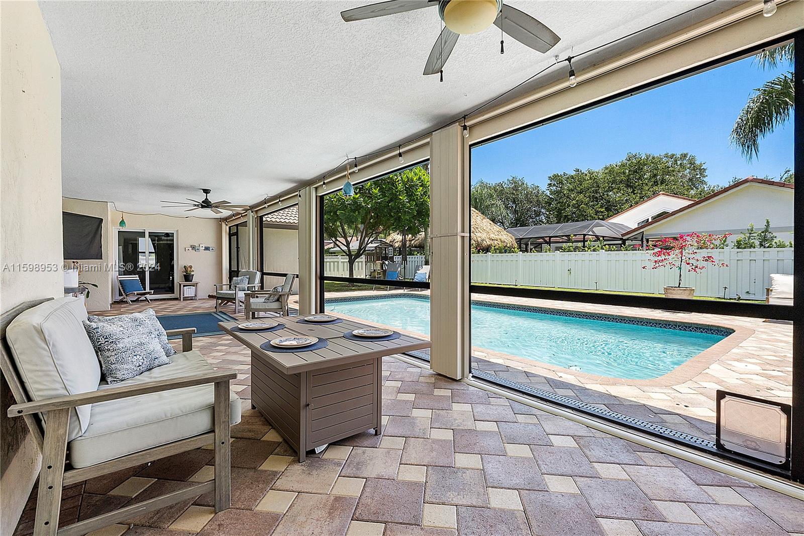 This private tropical pool home invites you to enjoy our FL lifestyle! A spacious 4-bed 2-bath home is the one you have been waiting for. Custom Kitchen with eat-in dining is a great space for entertaining. Electrical Panels were replaced inside and out in 2019, water heater in 2022. Wood tile floors throughout the open concept living space Expansive circular drive with upgraded pavers. There is no need to worry about hurricanes with recently installed impact windows and doors and a reinforced garage Door: whole House Generator Outlet, 2007 tile roof, and 2019 flat roof. 2 Car Garage, with work area, & finished Epoxy Floor. The screened patio provides nearly 400 feet of additional living space All located in close proximity to shopping, dining, and highways for commuting.