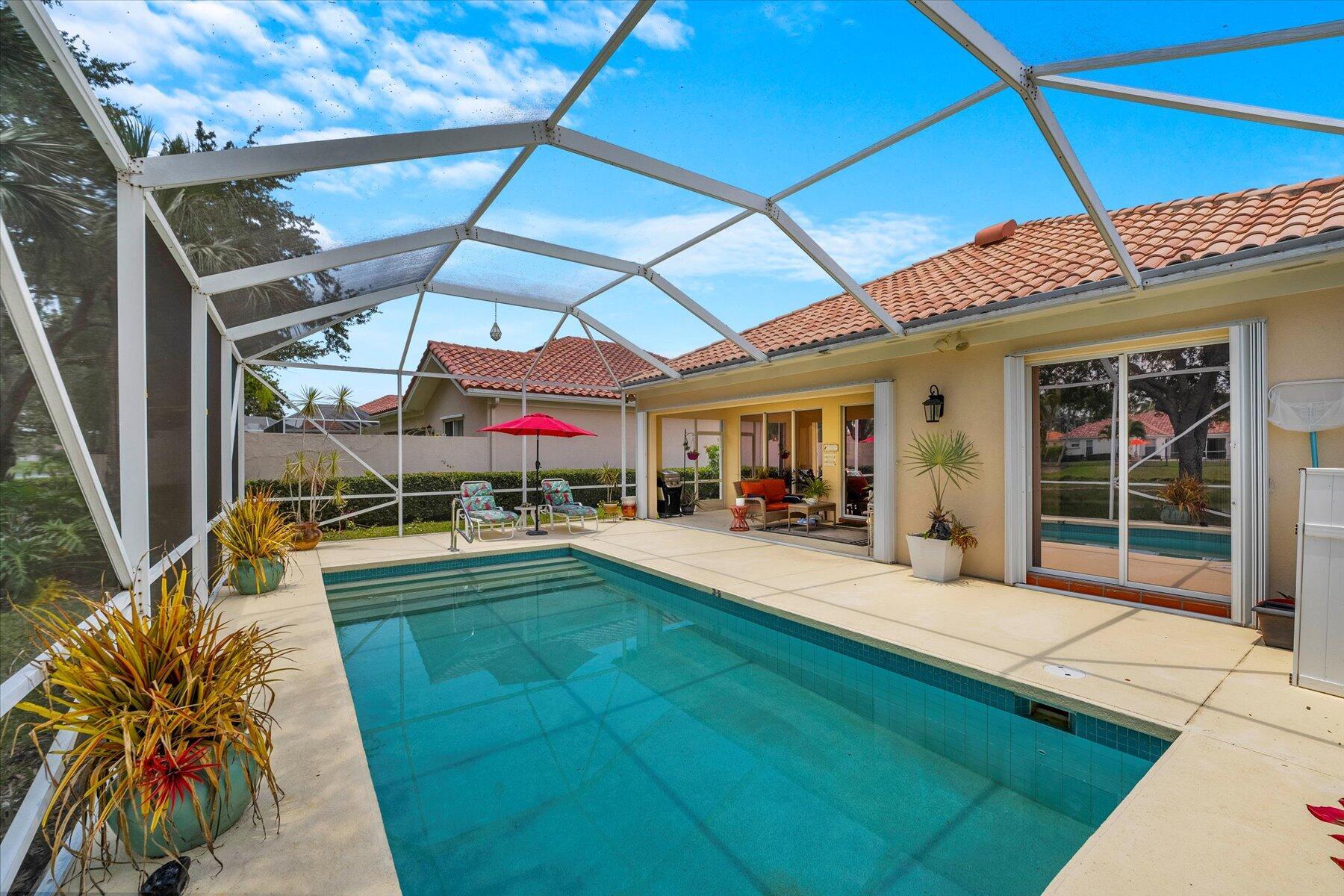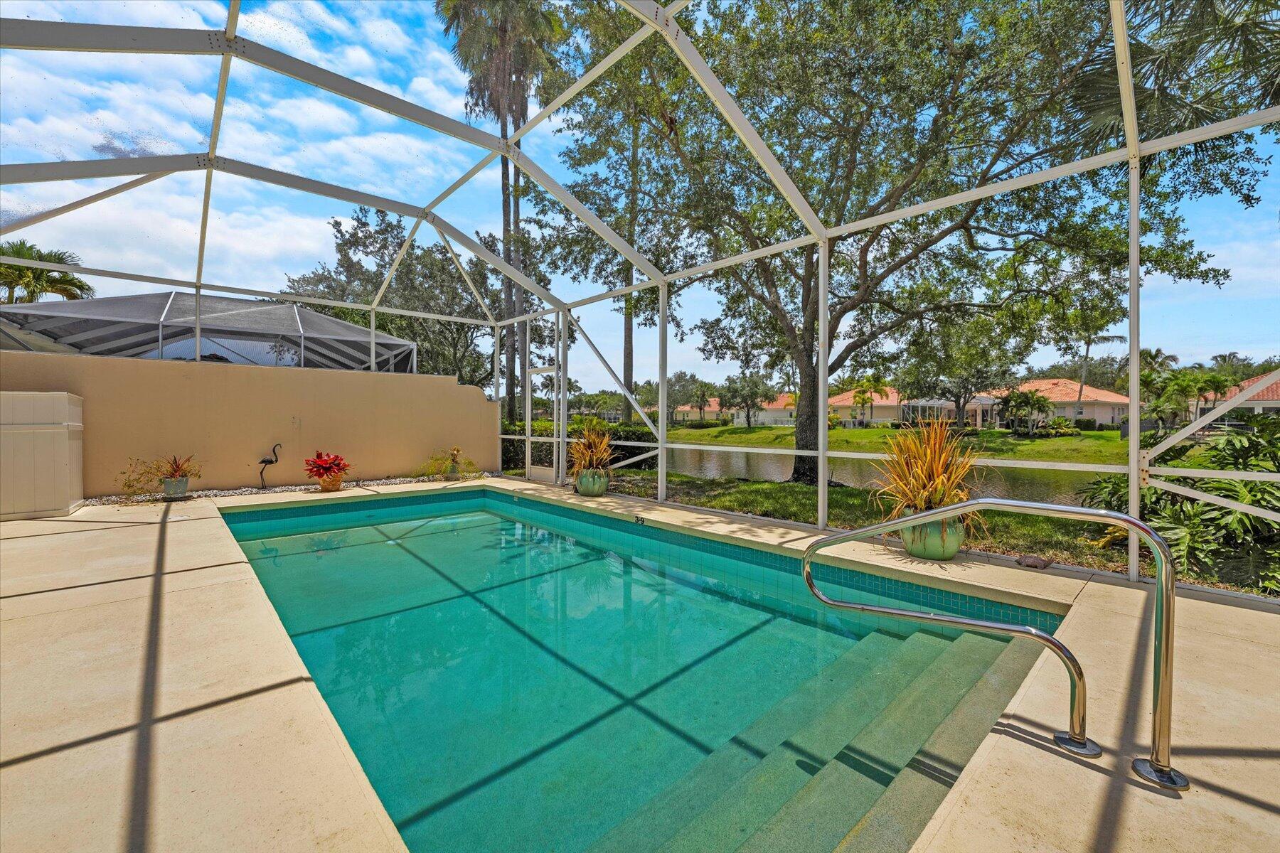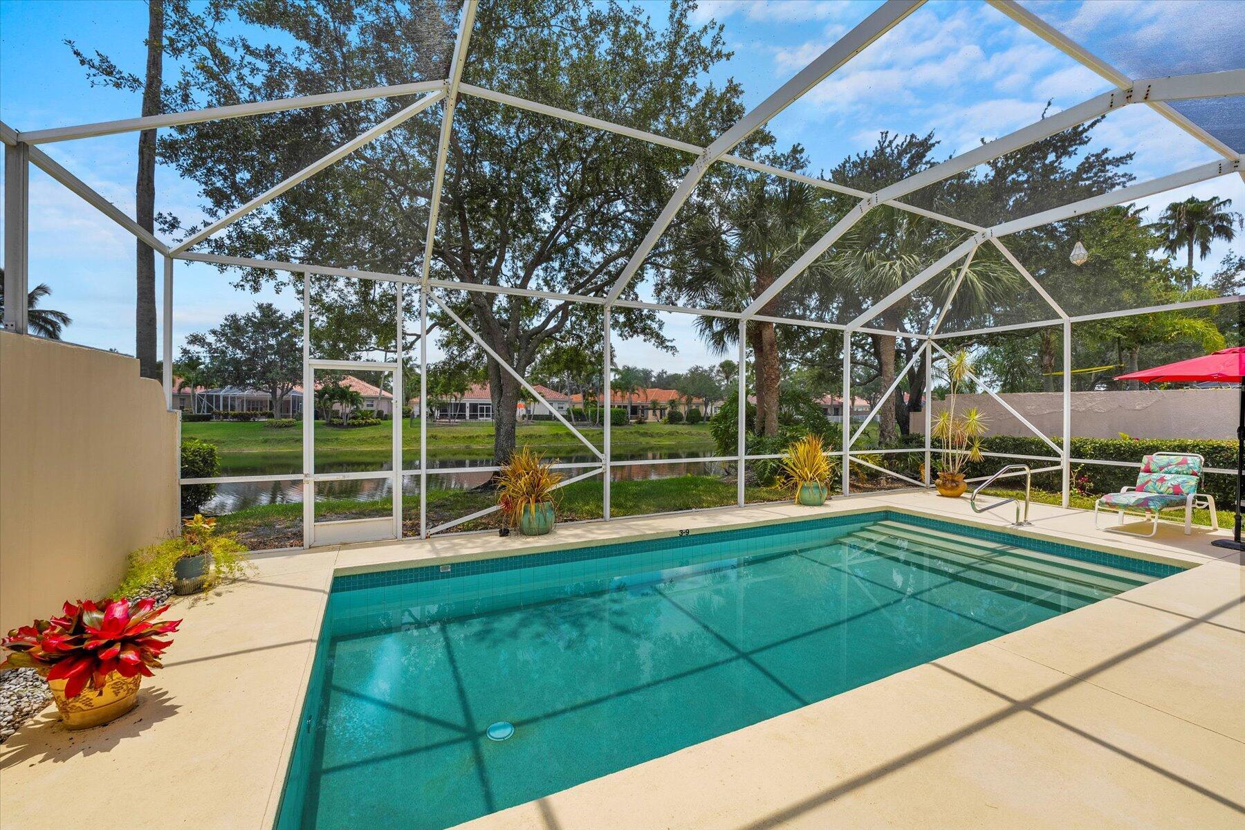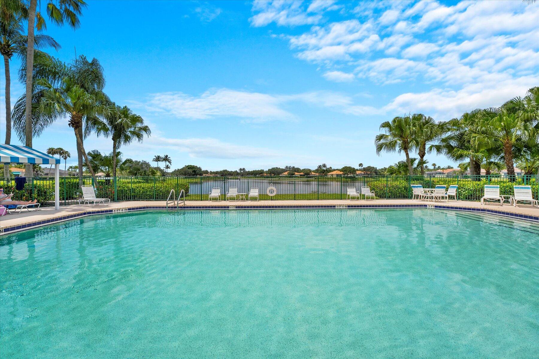 An amazing one story pool home w/ 3 bedroom 2 bath and screened in pool. This house has new accordion shutters with special port holes so when shut you have sunlight coming in. Water front with a beautiful lake view. Newer water heater and washer and dryer, granite countertops,24 hour manned gated community . Take a walk on by 200 acres of lakes and walkways with cobblestone bridges. Amazing location in Palm Beach County. minutes to the airport , beaches , city place, restaurants . Amazing amenities in community including a cafe/restaurant, post office, clubhouse, community room, fitness center, 3 pools, spa , hot tub, tennis pro shop, pickleball ,bocce, maintenance includes cable , lawn care included for front and back of home, facility and security included in low monthly HOA fee