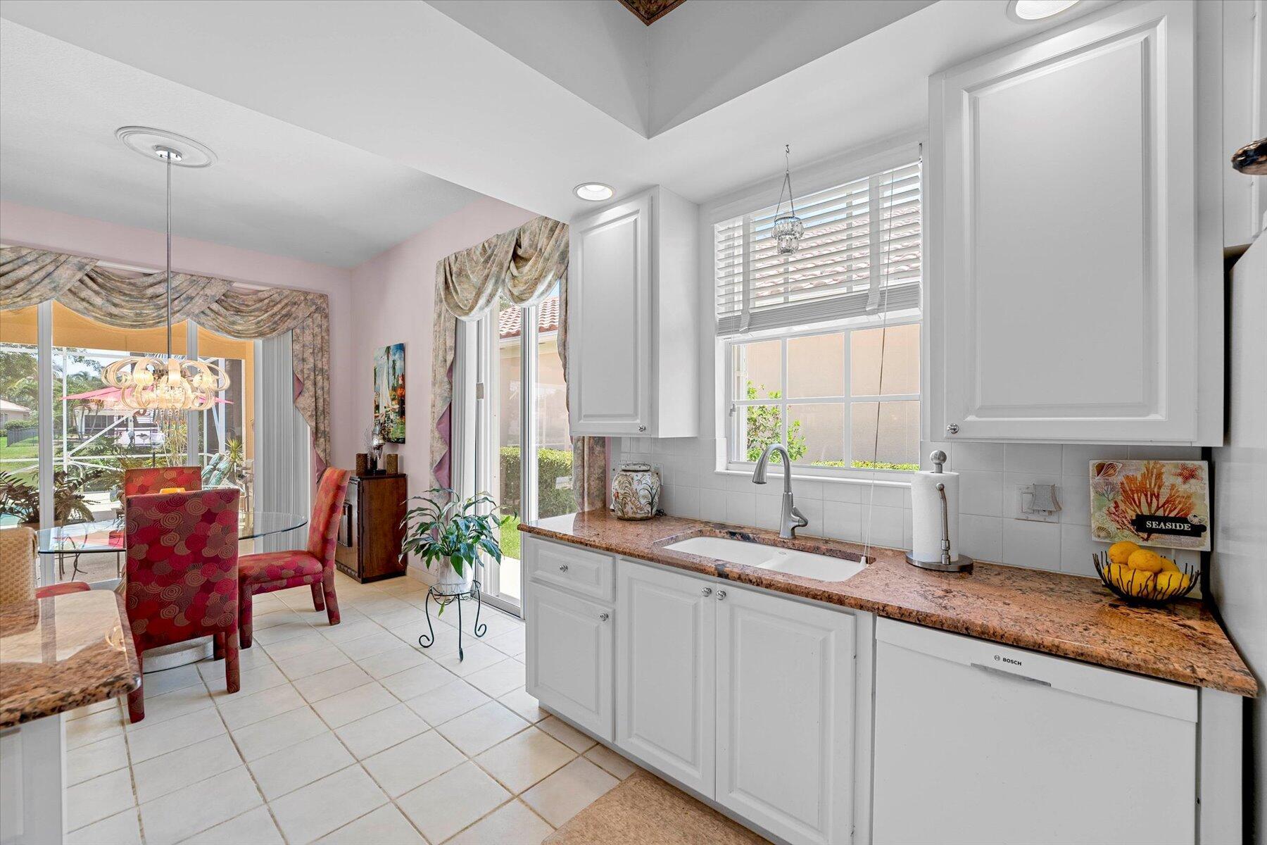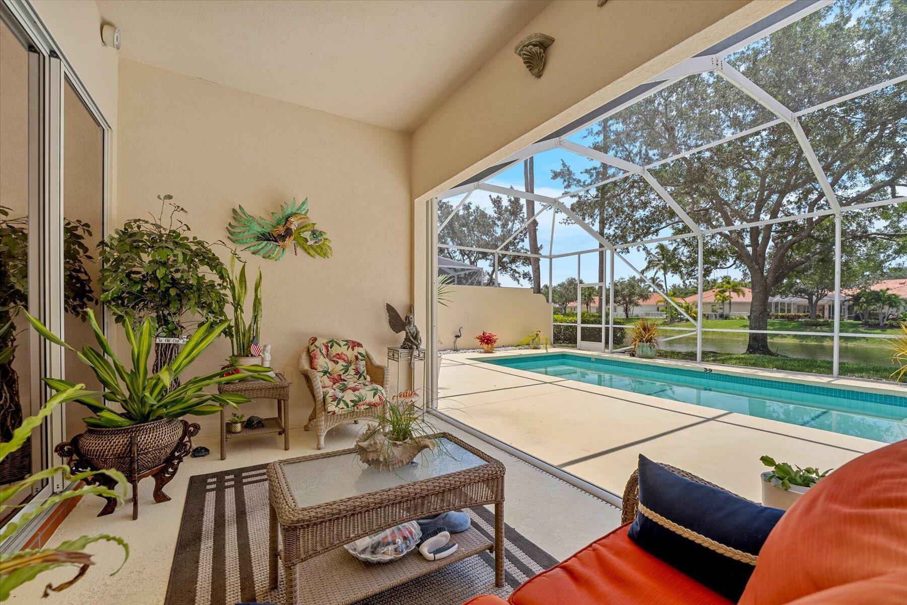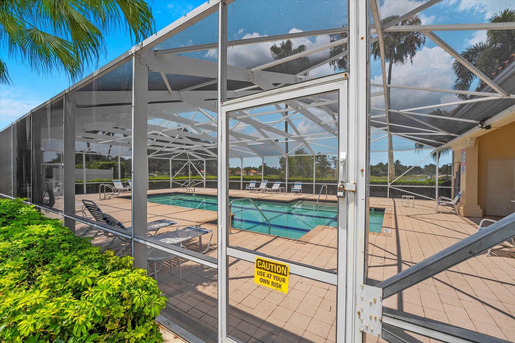 An amazing one story pool home w/ 3 bedroom 2 bath and screened in pool. This house has new accordion shutters with special port holes so when shut you have sunlight coming in. Water front with a beautiful lake view. Newer water heater and washer and dryer, granite countertops,24 hour manned gated community . Take a walk on by 200 acres of lakes and walkways with cobblestone bridges. Amazing location in Palm Beach County. minutes to the airport , beaches , city place, restaurants . Amazing amenities in community including a cafe/restaurant, post office, clubhouse, community room, fitness center, 3 pools, spa , hot tub, tennis pro shop, pickleball ,bocce, maintenance includes cable , lawn care included for front and back of home, facility and security included in low monthly HOA fee