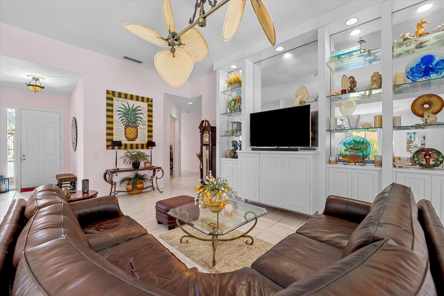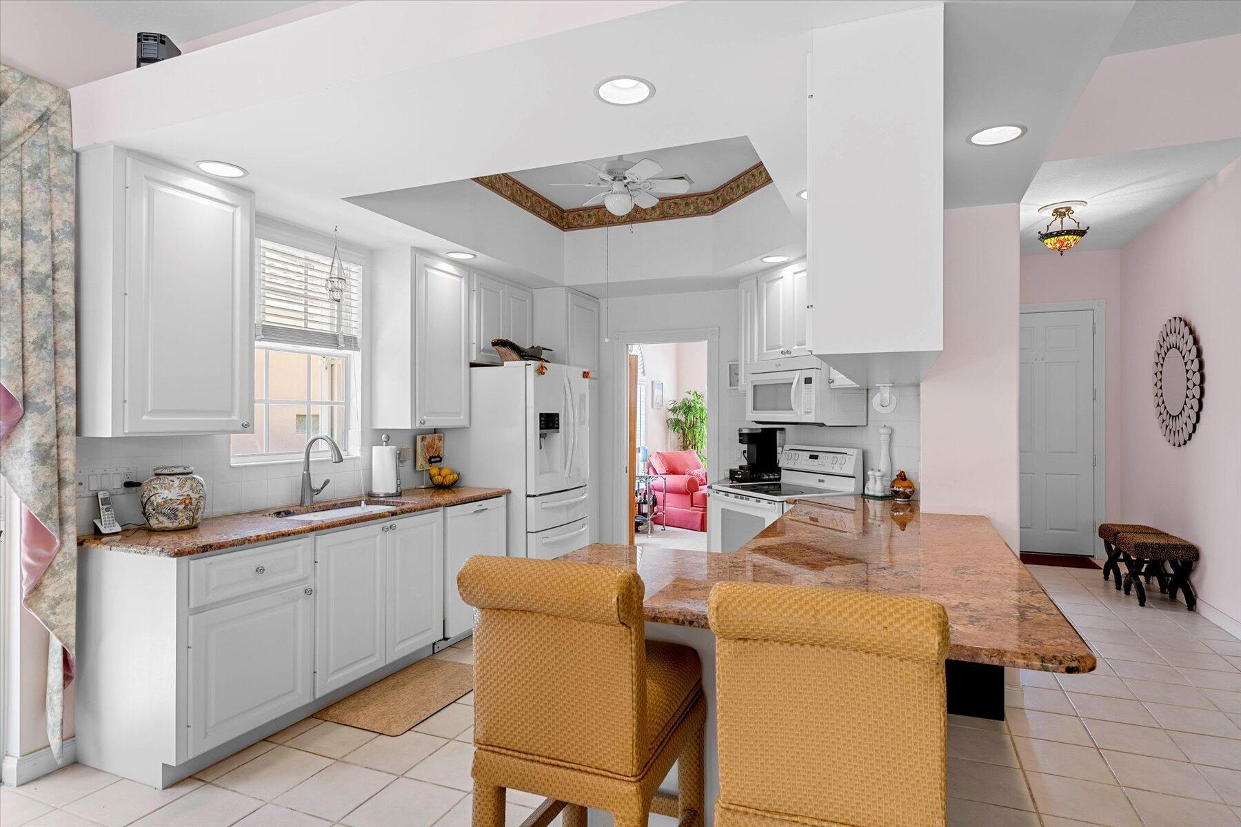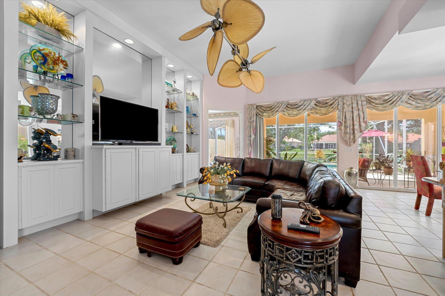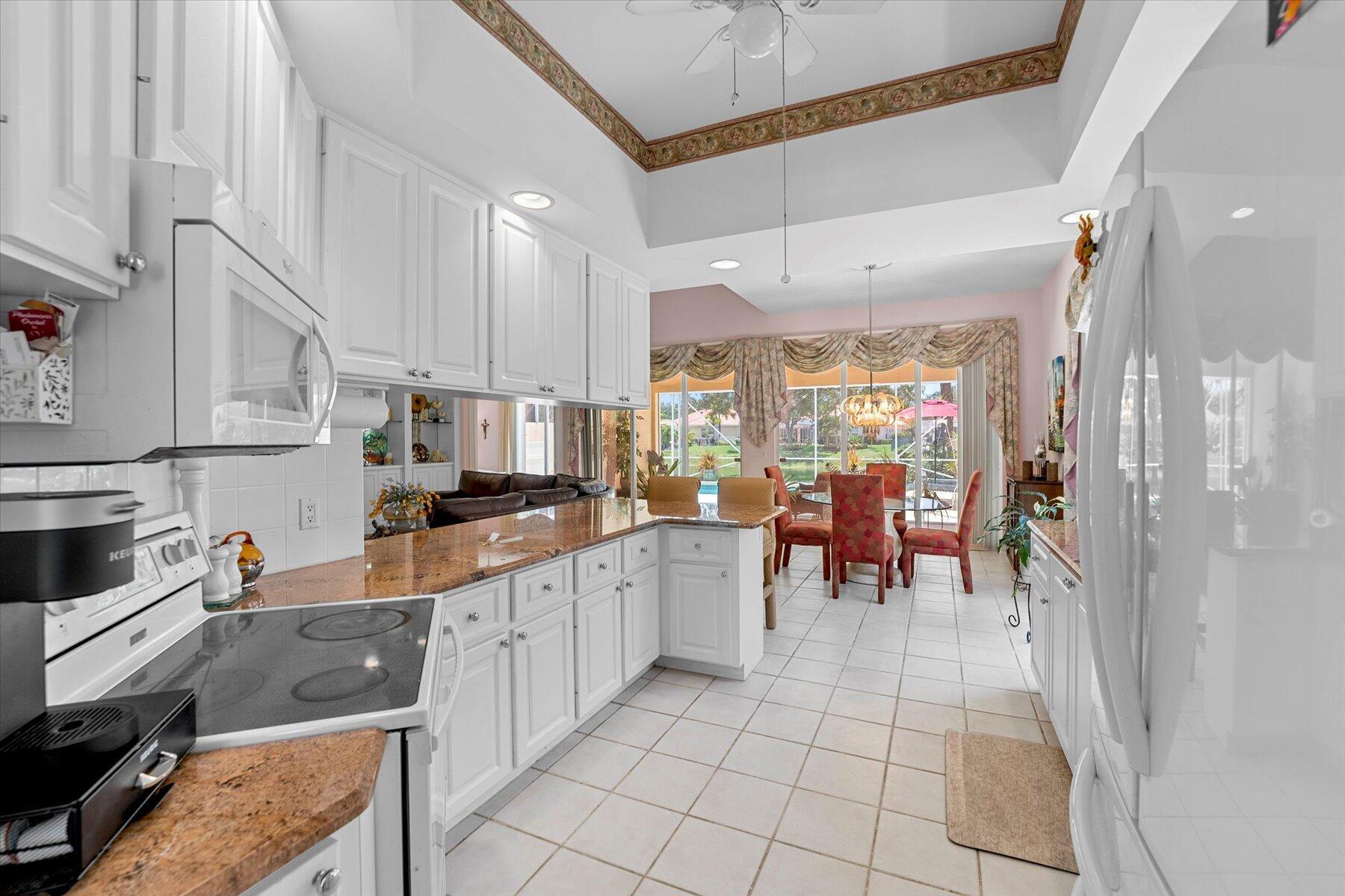 An amazing one story pool home w/ 3 bedroom 2 bath and screened in pool. This house has new accordion shutters with special port holes so when shut you have sunlight coming in. Water front with a beautiful lake view. Newer water heater and washer and dryer, granite countertops,24 hour manned gated community . Take a walk on by 200 acres of lakes and walkways with cobblestone bridges. Amazing location in Palm Beach County. minutes to the airport , beaches , city place, restaurants . Amazing amenities in community including a cafe/restaurant, post office, clubhouse, community room, fitness center, 3 pools, spa , hot tub, tennis pro shop, pickleball ,bocce, maintenance includes cable , lawn care included for front and back of home, facility and security included in low monthly HOA fee