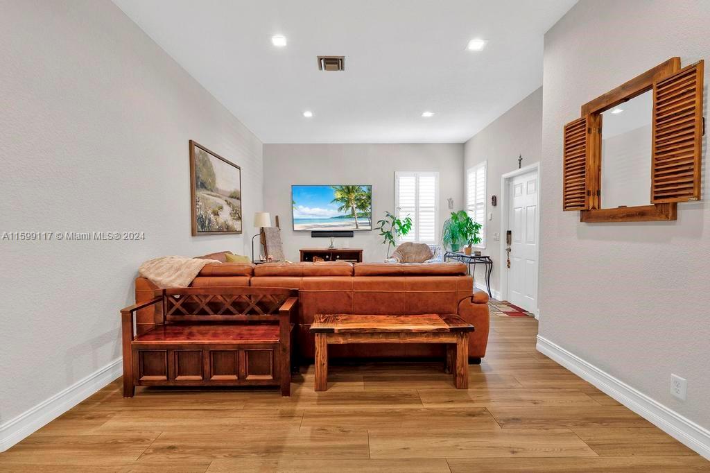 Welcome to your dream home in Savanna! This updated home features new tile flooring and renovated bathrooms with new extra large shower with luxurious rainfall showers. Plantation shutters, recessed lighting, and ceiling fans add elegance and comfort. Painted outside in 2021. The master bedroom had two walk-in closets, one added by the owners. The home has a new roof (2021), new pavers in the driveway, a 2018 AC unit, and a 2024 water heater. the patio has an extended paver area with an electrical retractable awning, and a fenced yard perfect for gatherings. The community has stunning resort-style amenities, including water slides, a kids' splash zone, mini golf, children's playground, and fields for all sports. A+ schools. Come see your new home!
