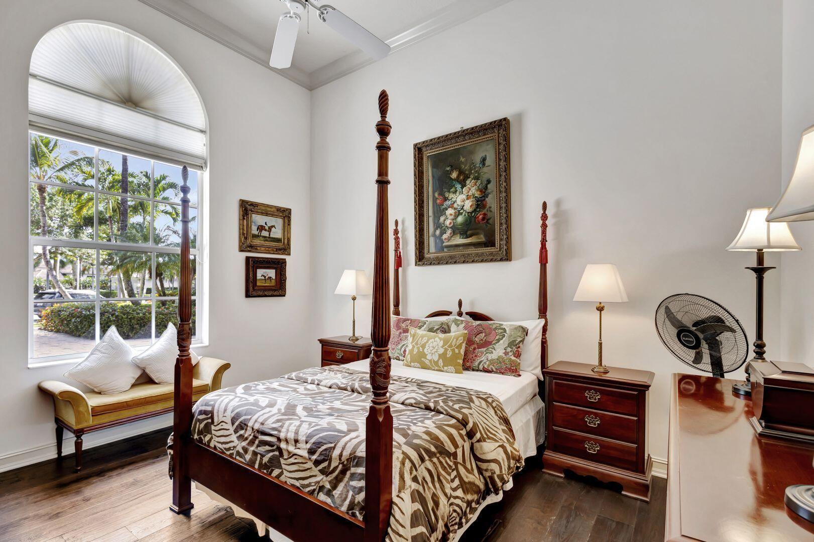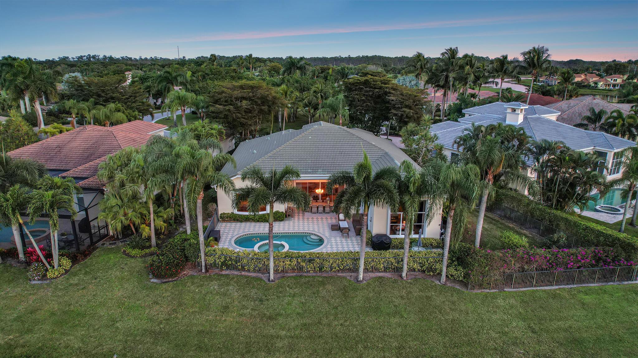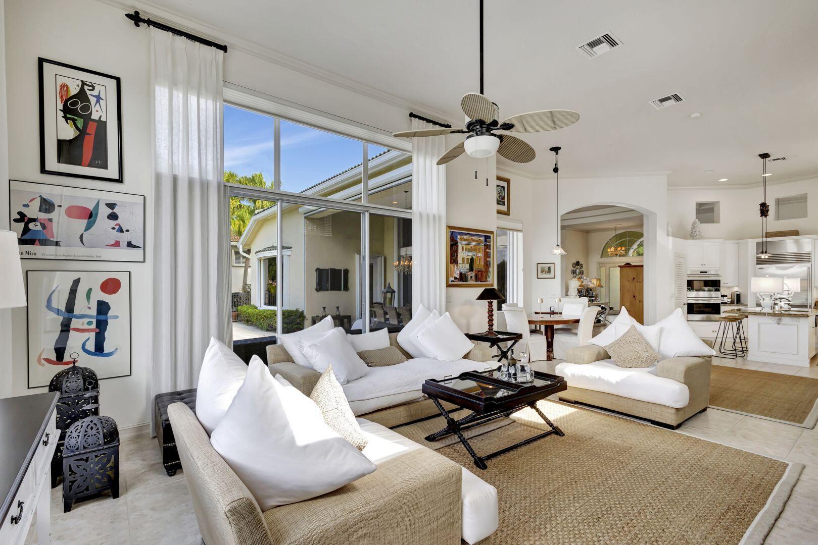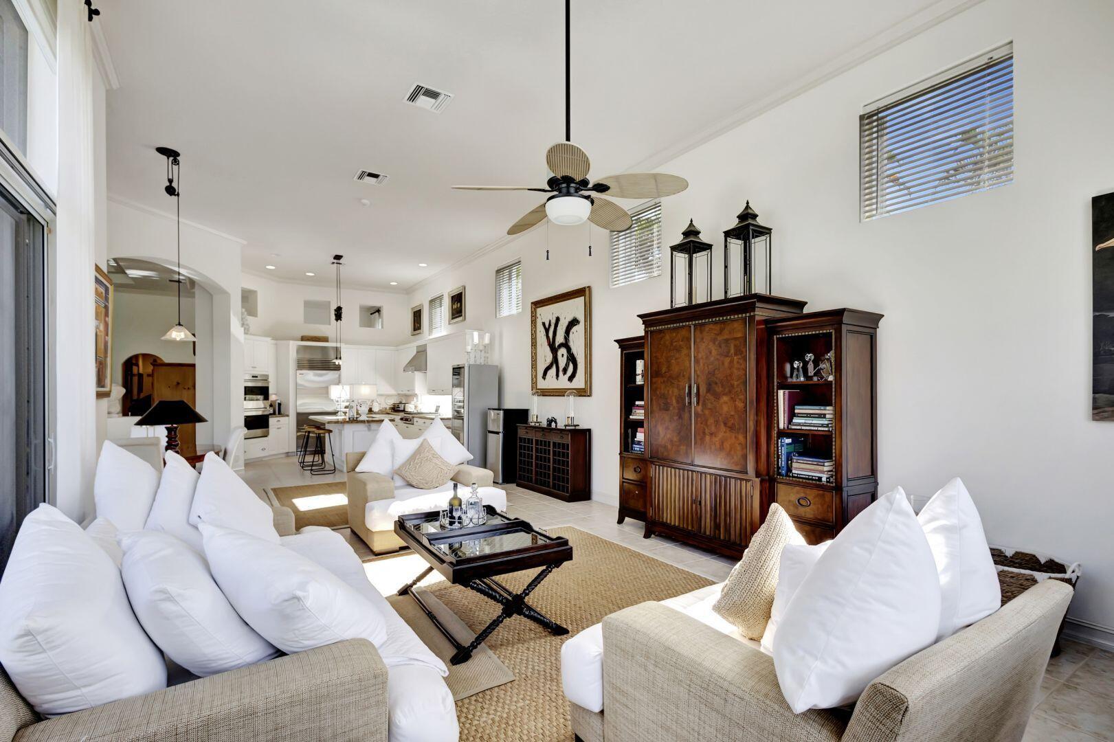 Welcome to this exquisite 4 bedroom, 4 bath + den home nestled in a serene cul-de-sac located in Ibis Isle. This rare gem offers a perfect blend of elegance, functionality, and tranquility, making it an idyllic retreat for discerning homeowners. As you step in the foyer, you're greeted with an abundance of natural light streaming through large windows and reflecting throughout the 14' high ceilings, casting a warm glow throughout the home. Renovations have been made in every room and the kitchen is host to Wolf under-over oven, Wolf gas top grill, Sub-zero refrigerator-freezer, Bosch dishwasher, white cabinets with granite tops and