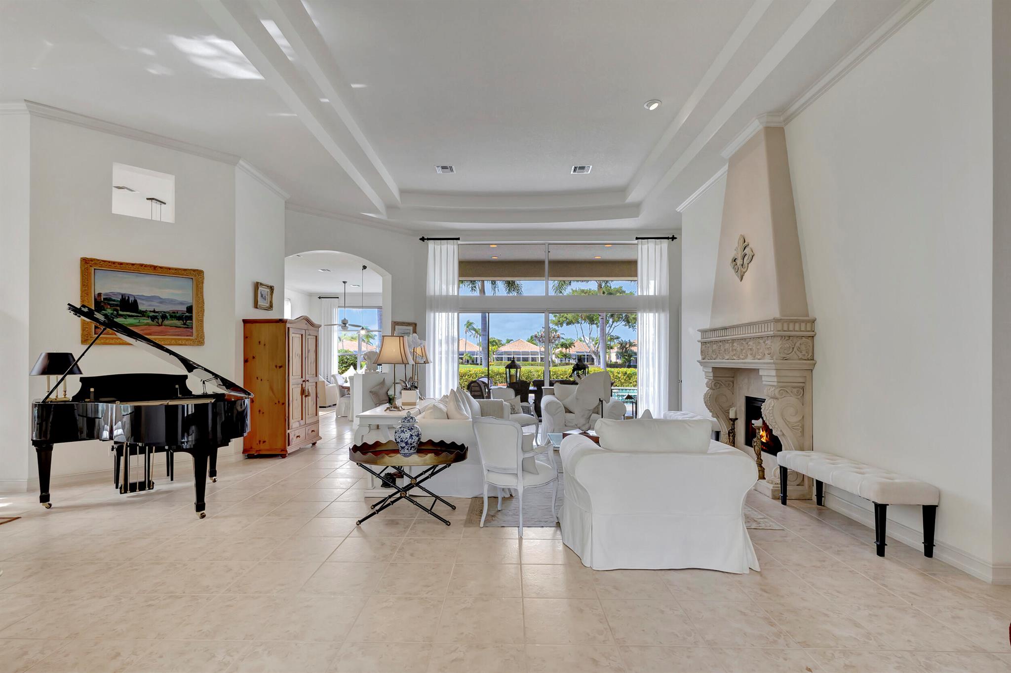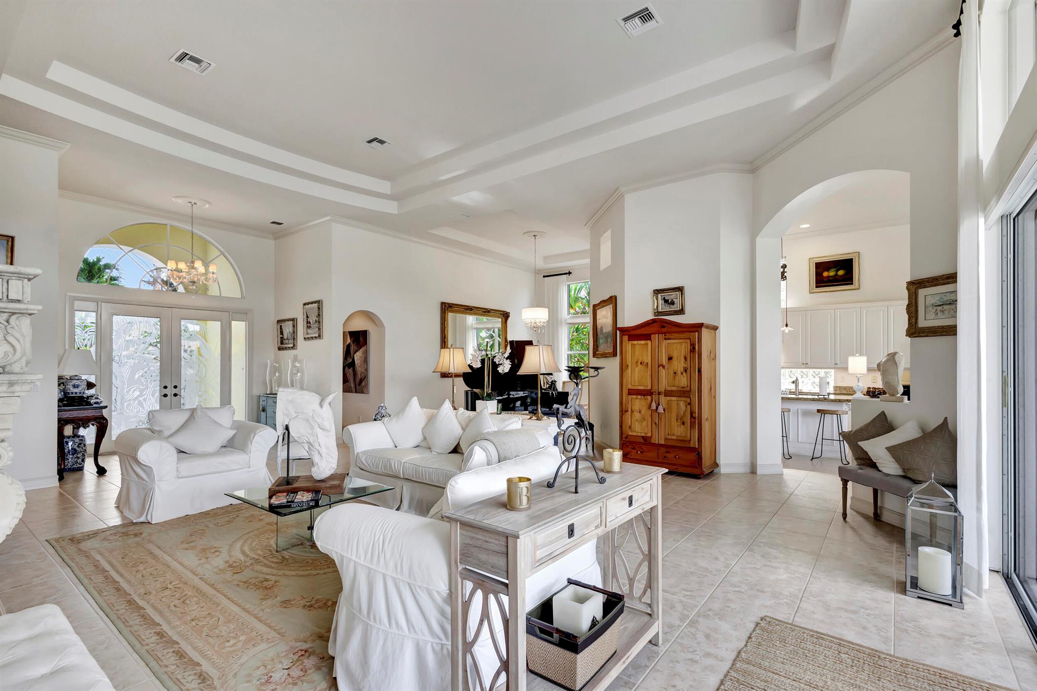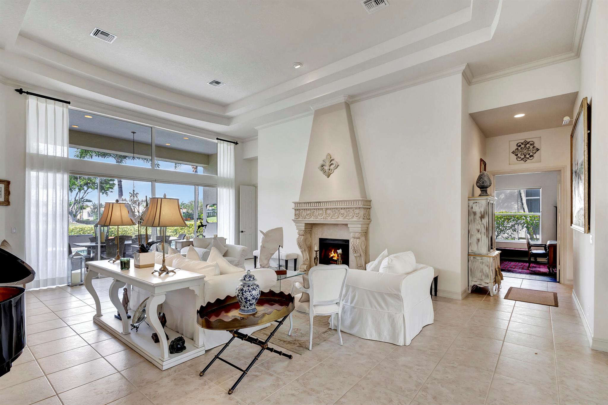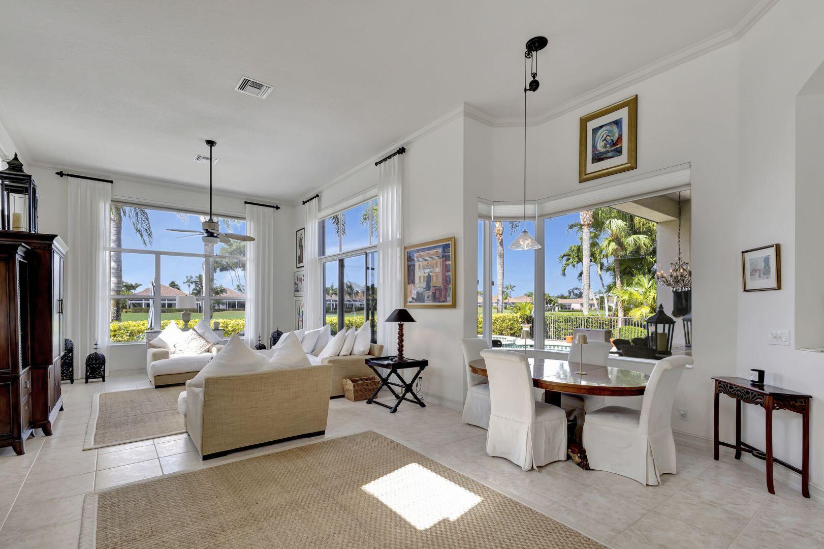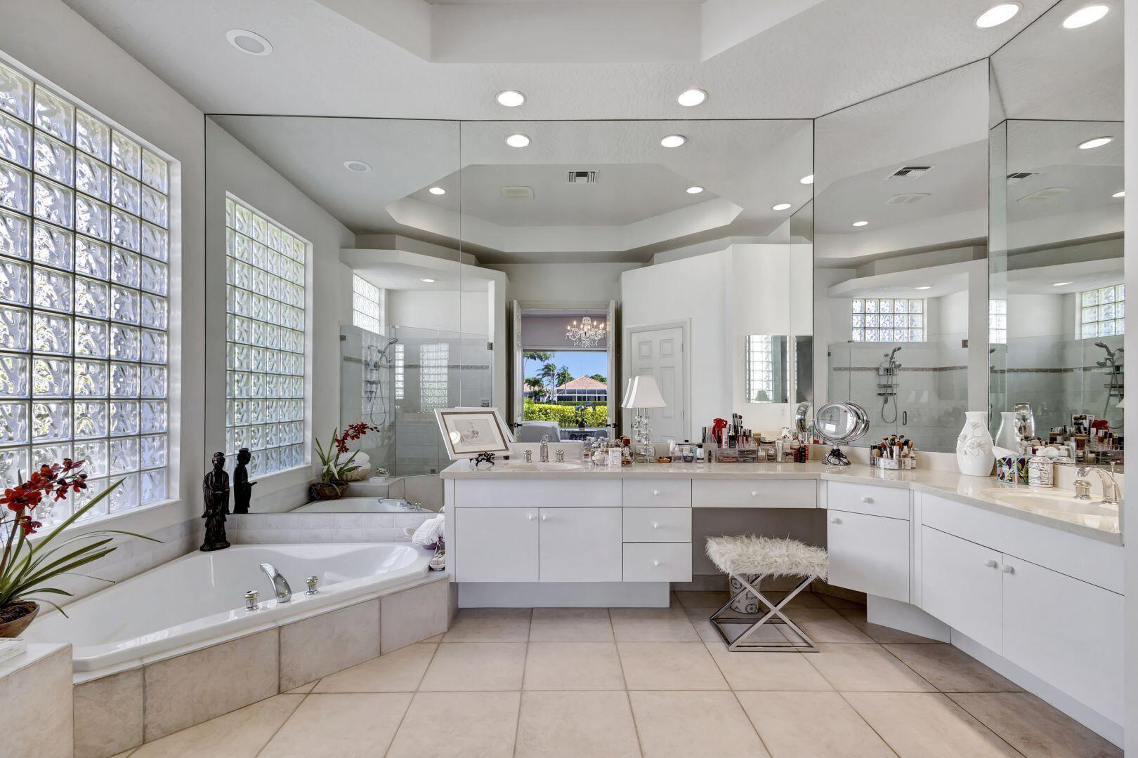 Welcome to this exquisite 4 bedroom, 4 bath + den home nestled in a serene cul-de-sac located in Ibis Isle. This rare gem offers a perfect blend of elegance, functionality, and tranquility, making it an idyllic retreat for discerning homeowners. As you step in the foyer, you're greeted with an abundance of natural light streaming through large windows and reflecting throughout the 14' high ceilings, casting a warm glow throughout the home. Renovations have been made in every room and the kitchen is host to Wolf under-over oven, Wolf gas top grill, Sub-zero refrigerator-freezer, Bosch dishwasher, white cabinets with granite tops and